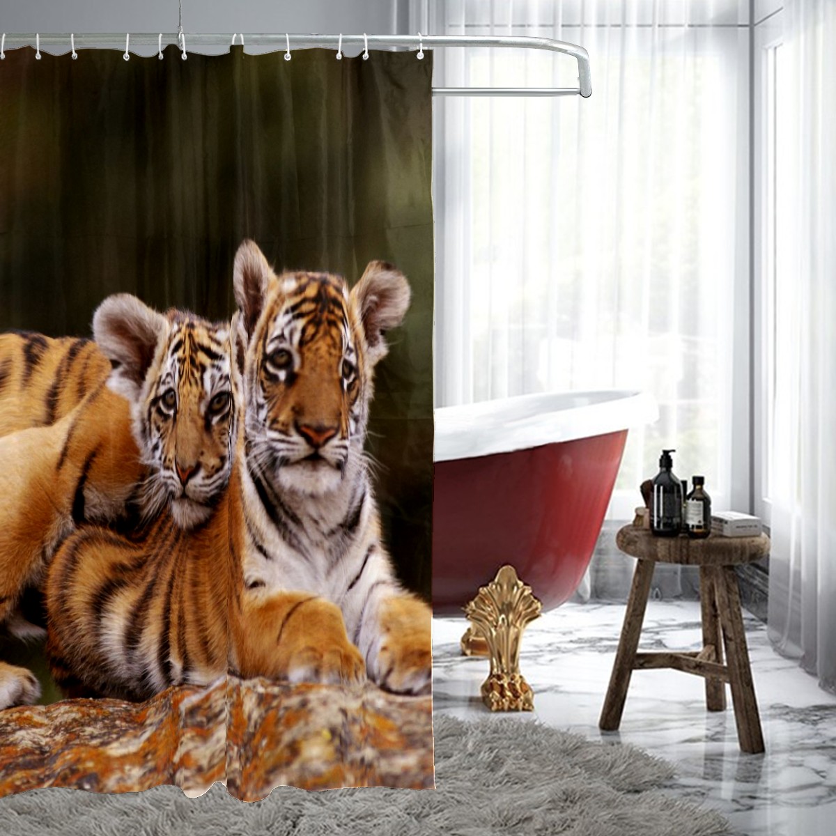 Custom Little Tiger Twin Baby Animal Bath Curtain 100% Polyester Hotel Home Washable Shower Curtain 60"x72in