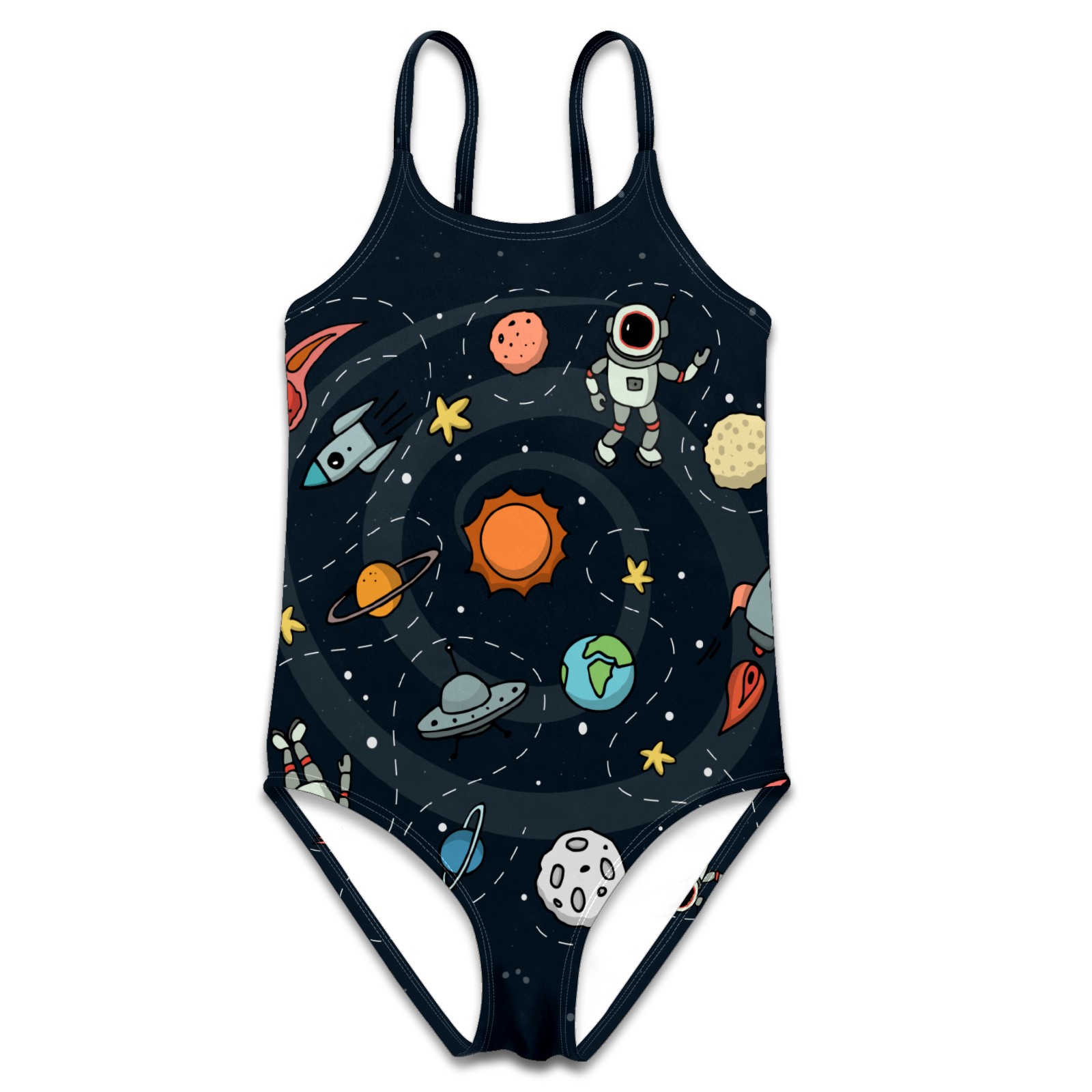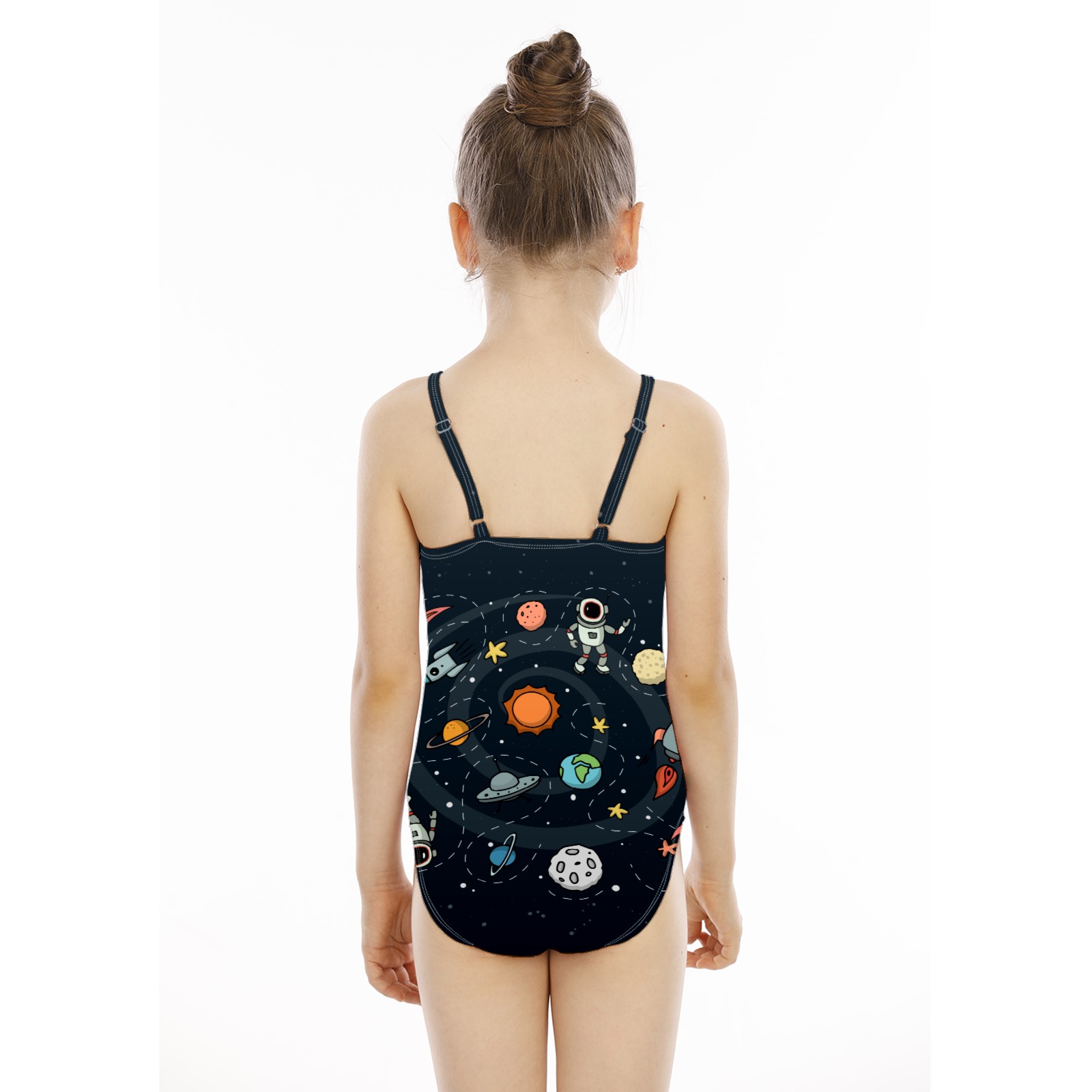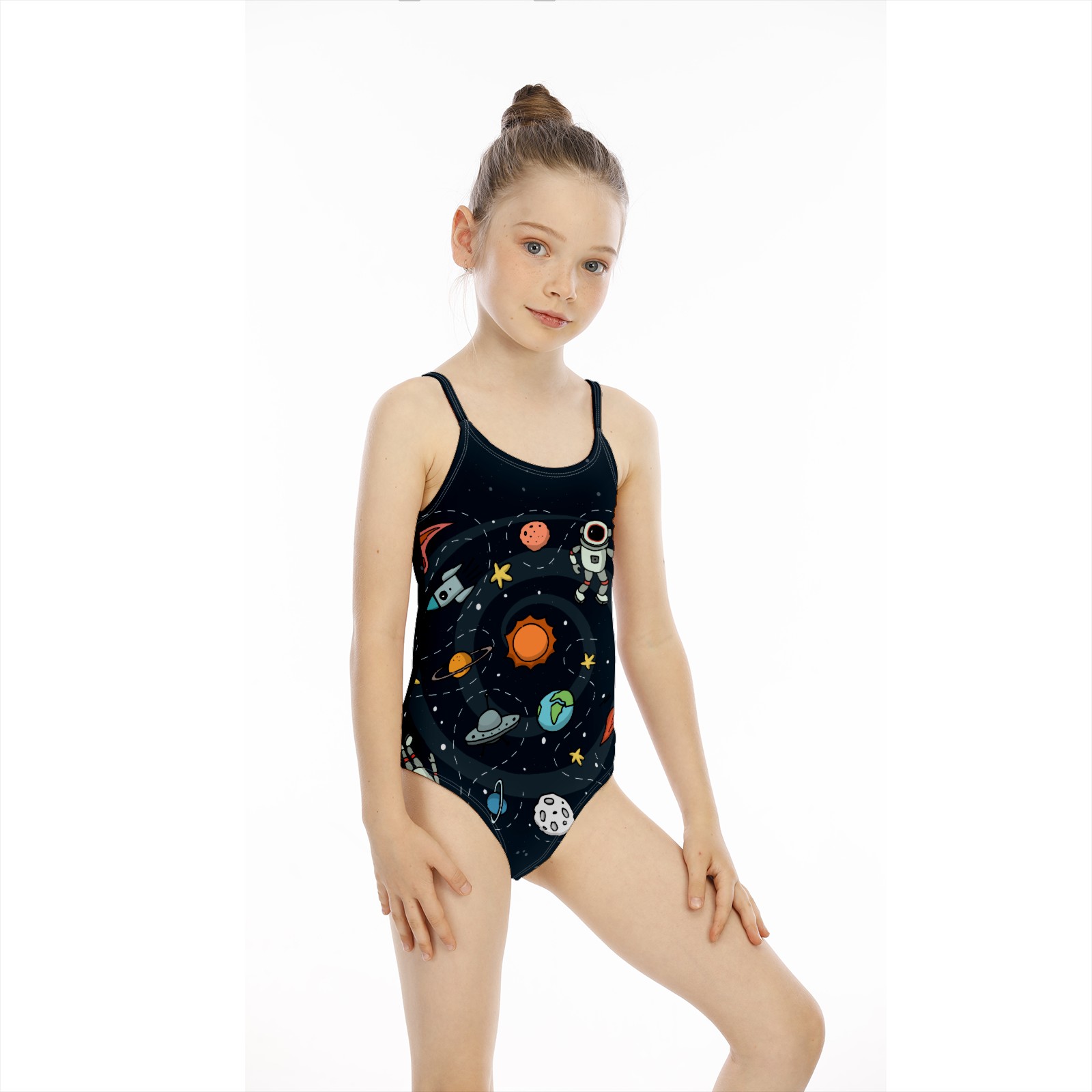 Girls Swimsuit One Piece Astronaut Universe Rocket Moon Earth Planet Summer Swimwear Beach Sport Size 5-6 Years