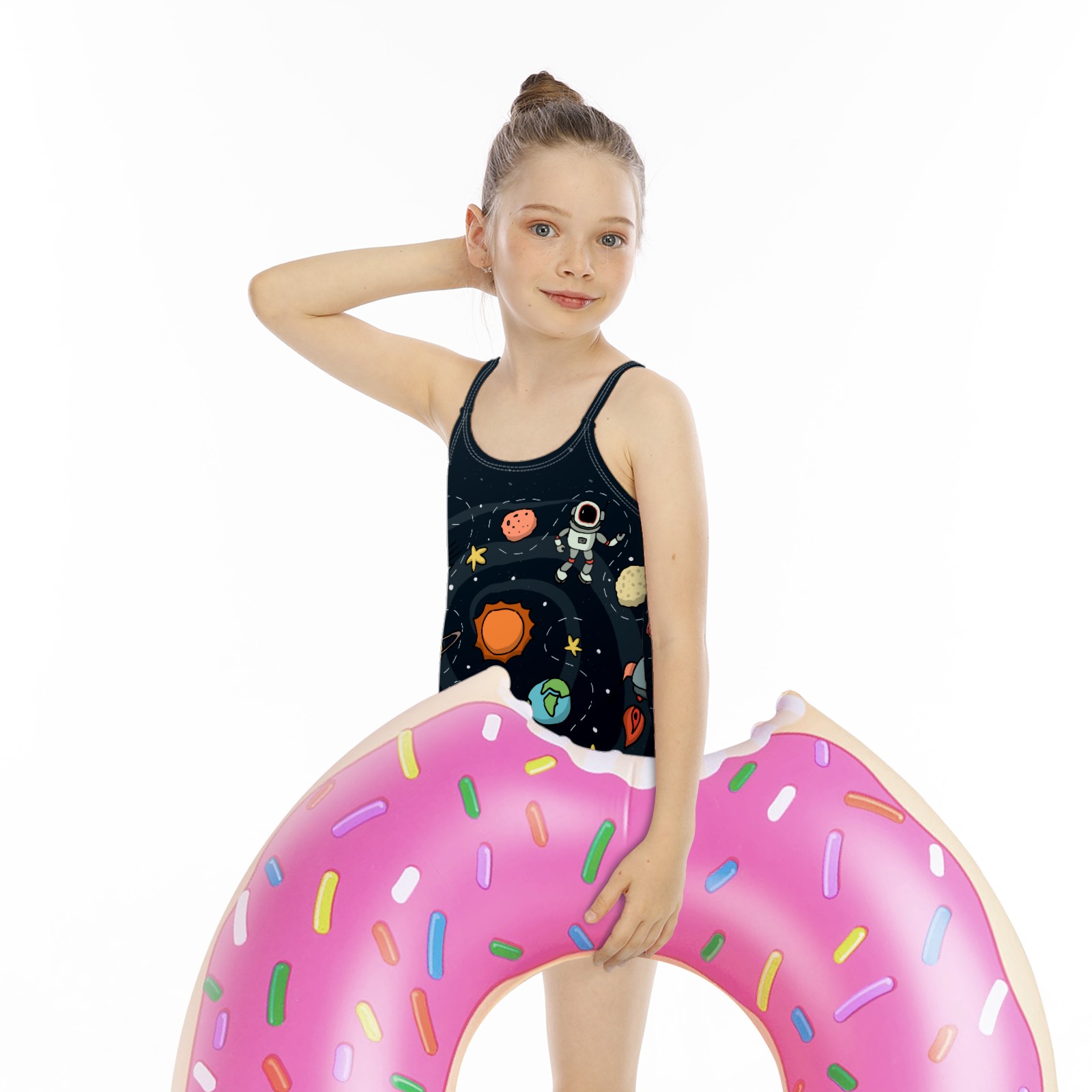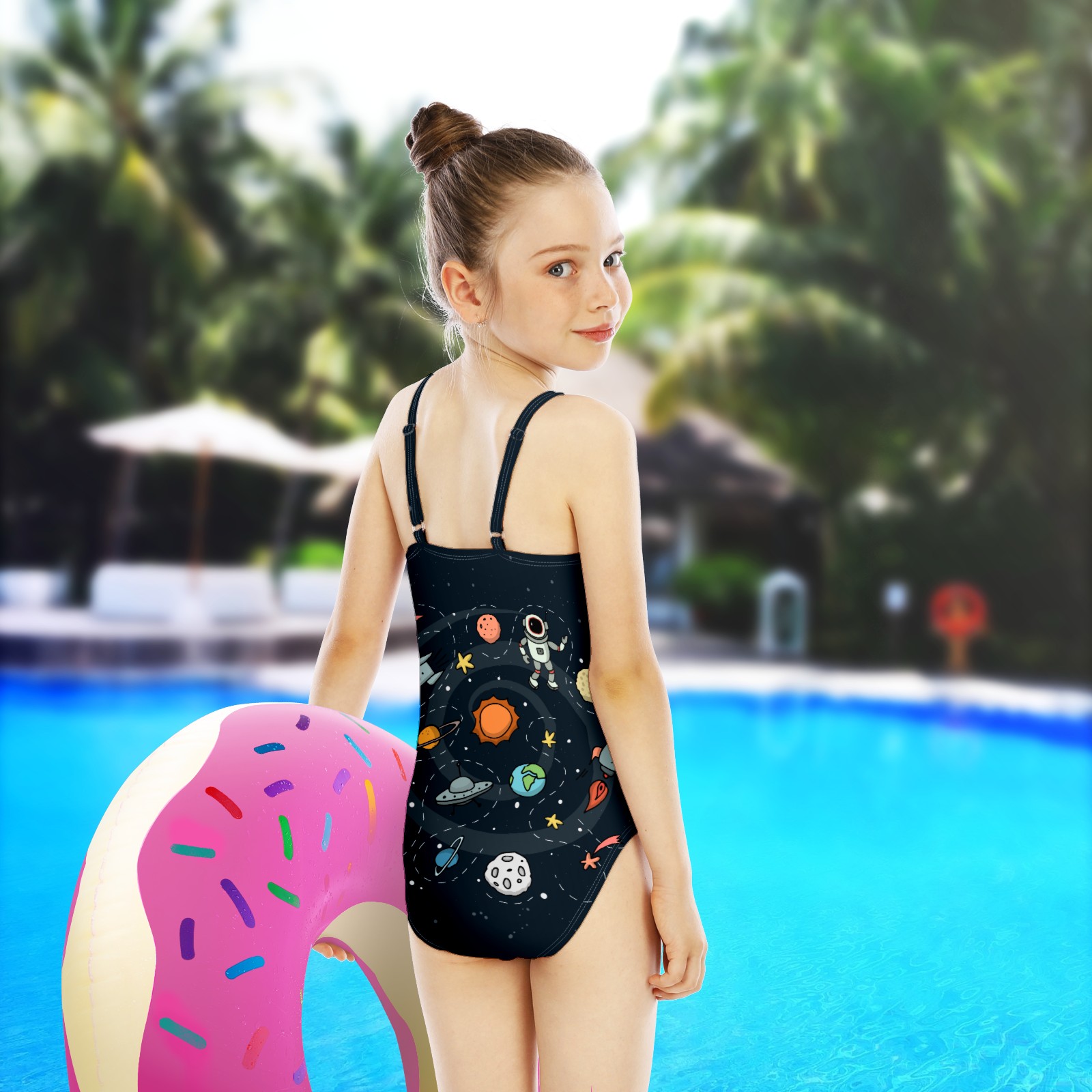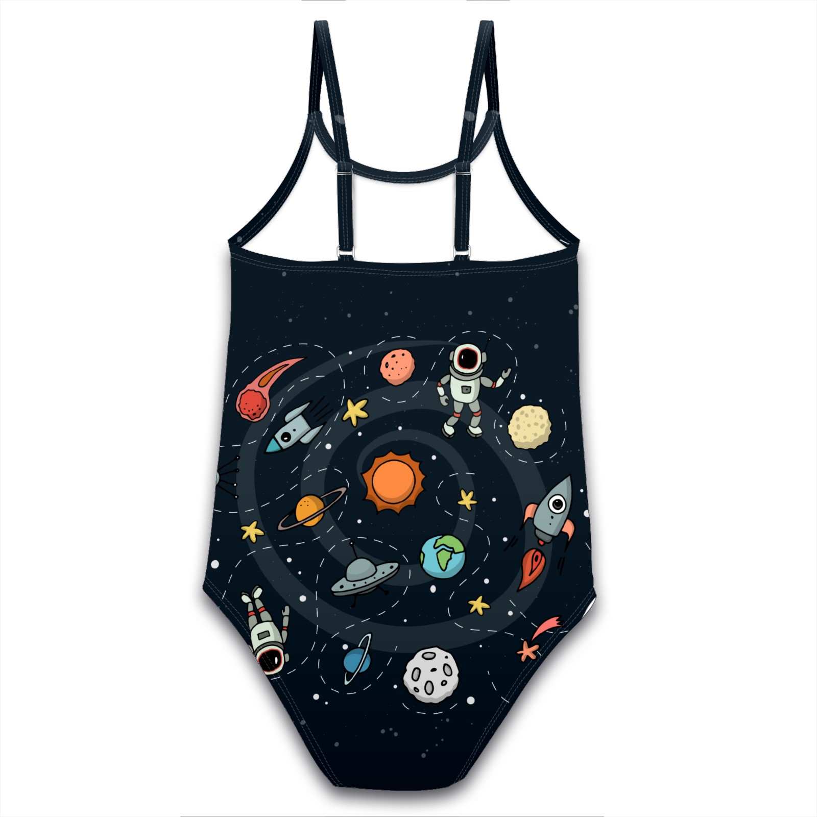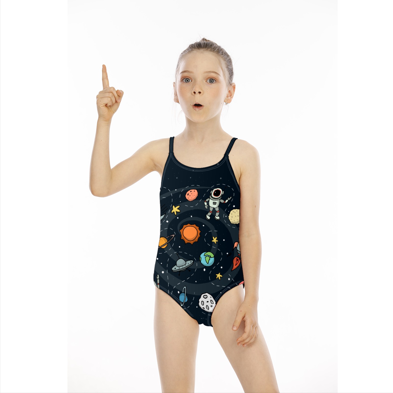 Girls Swimsuit One Piece Astronaut Universe Rocket Moon Earth Planet Summer Swimwear Beach Sport Size 5-6 Years
