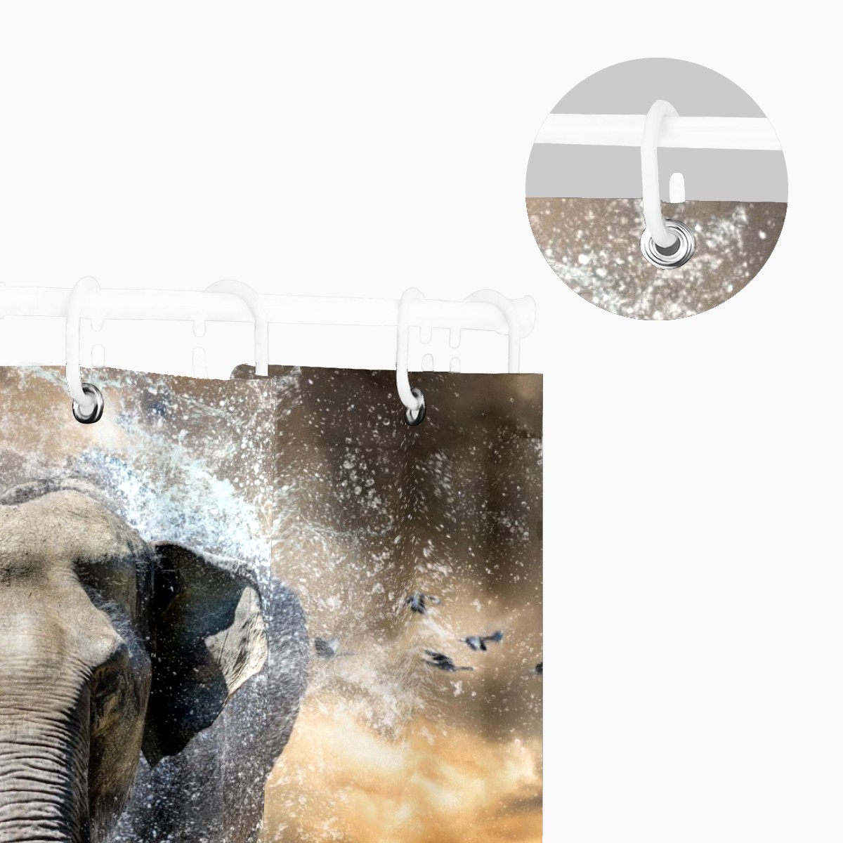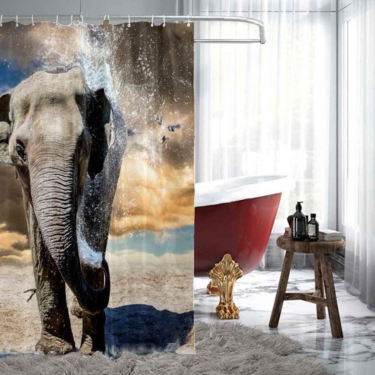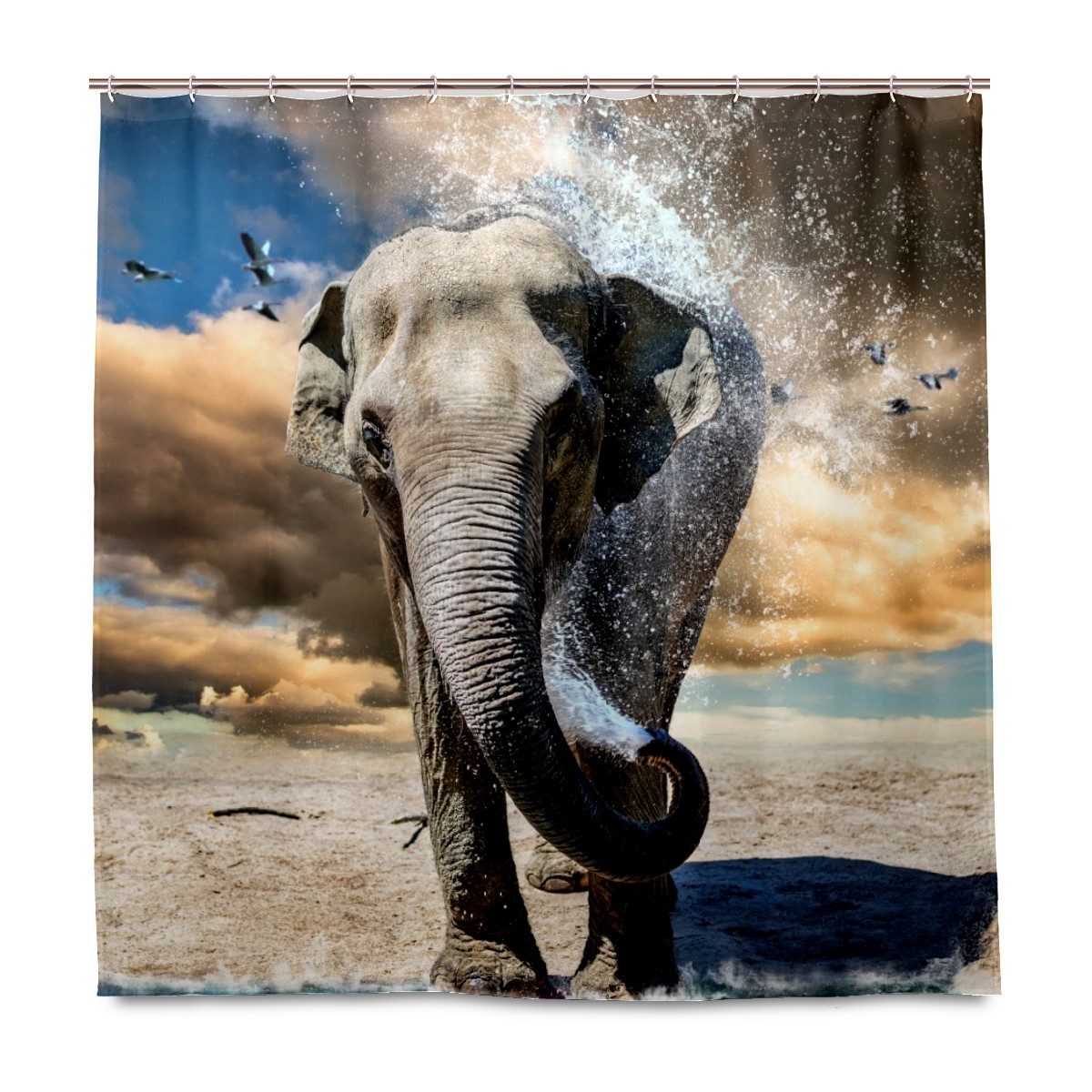 Custom Hot Wild Elephant Water Nature Sand Bath Curtain 100% Polyester Hotel Home Washable Shower Curtain 60"x72in
