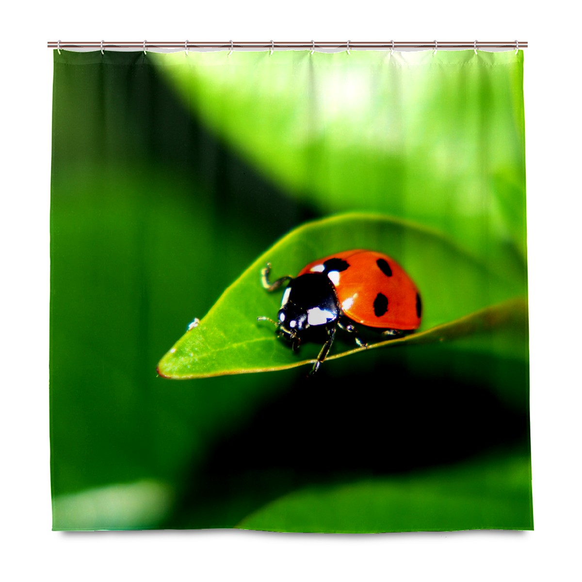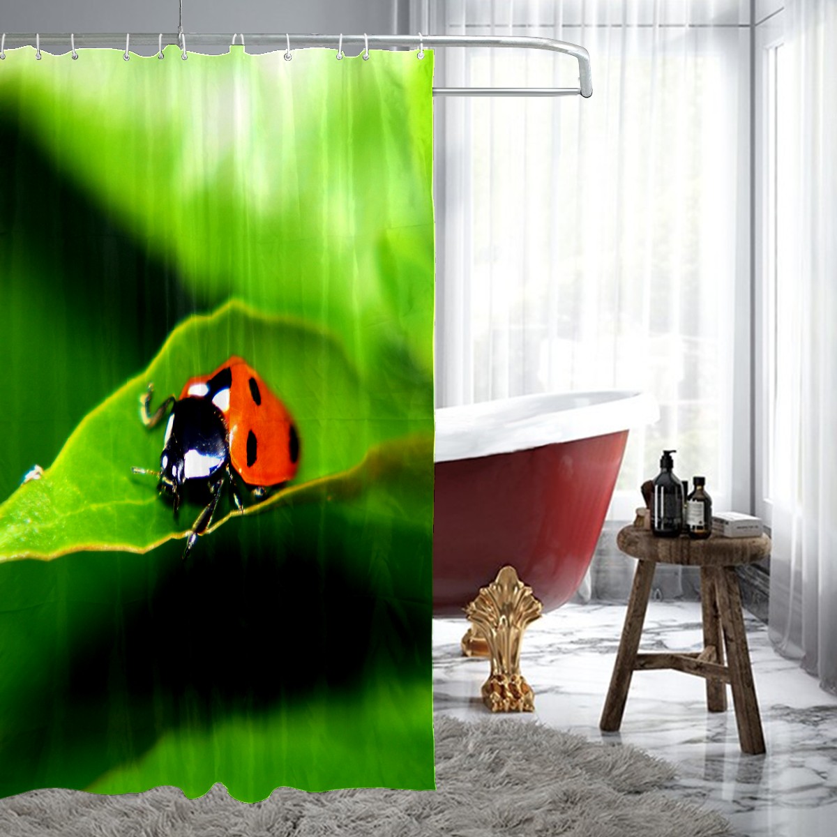 Custom Ladybird Green Leaves Bath Curtain 100% Polyester Hotel Home Washable Shower Curtain 60"x72in