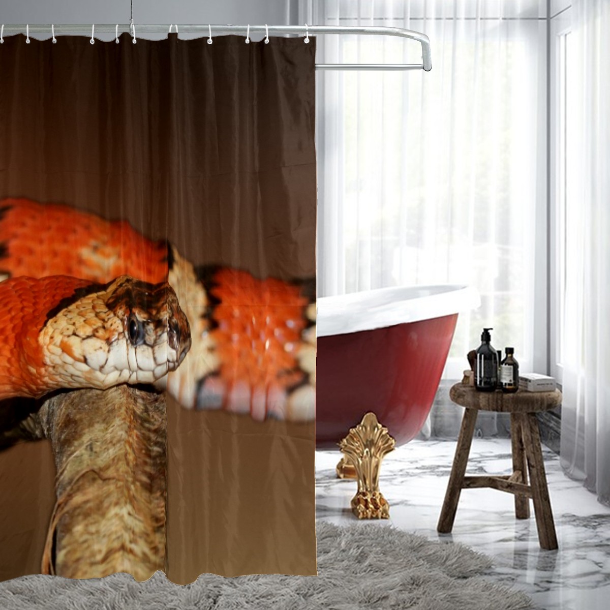 Custom King Snake Red Wild Animal Bath Curtain 100% Polyester Hotel Home Washable Shower Curtain 60"x72in
