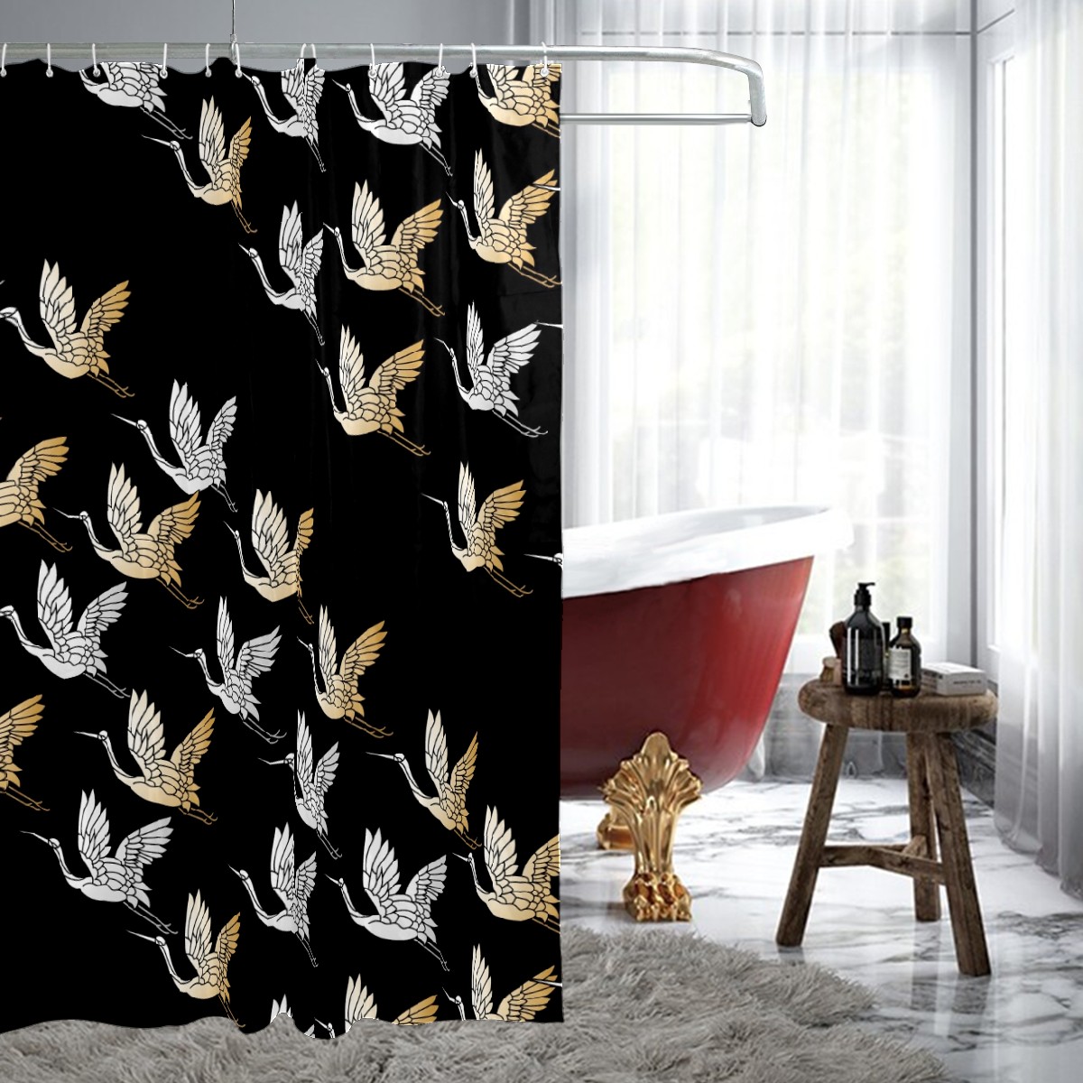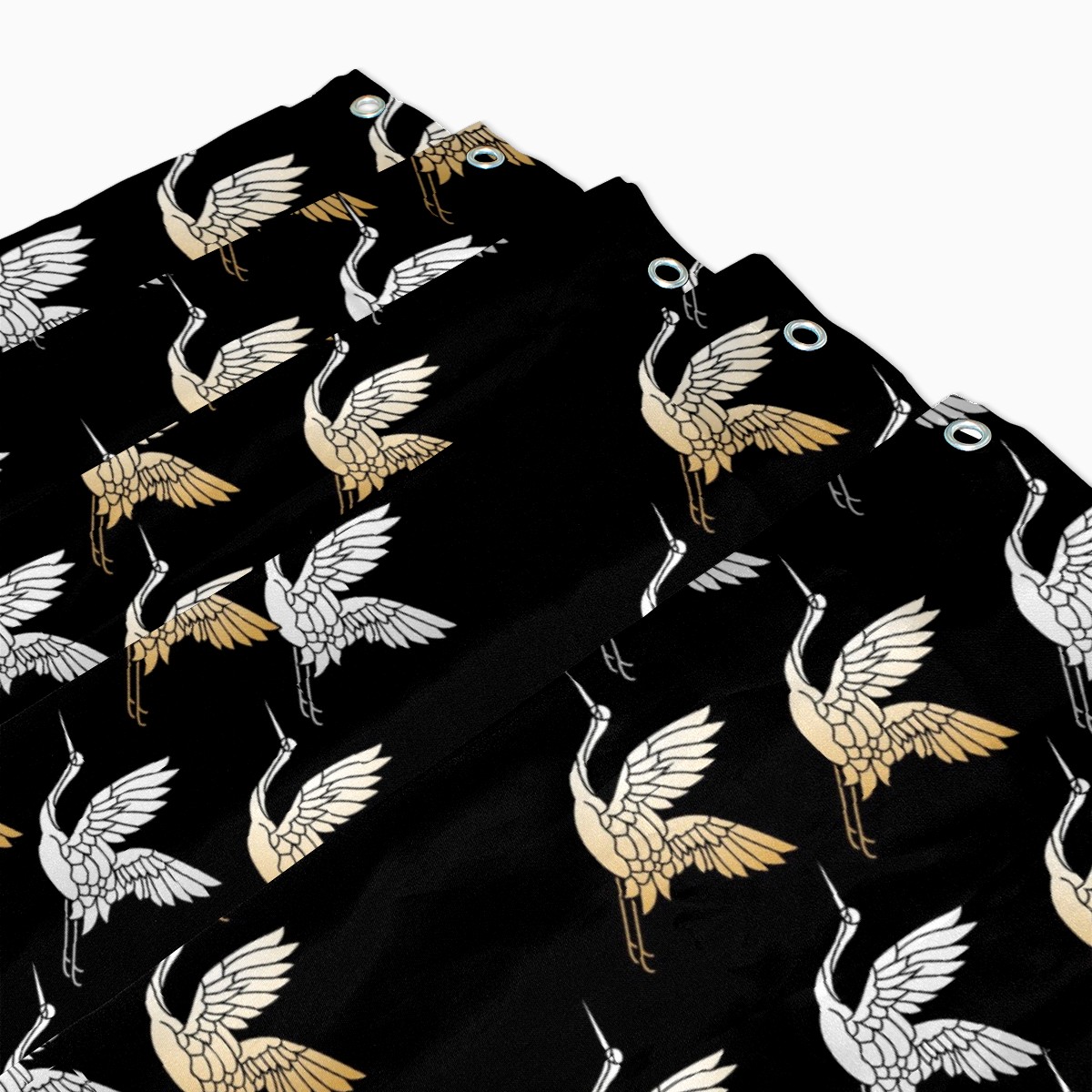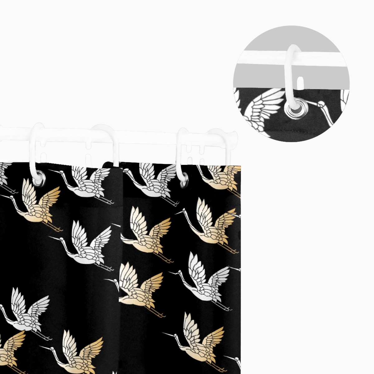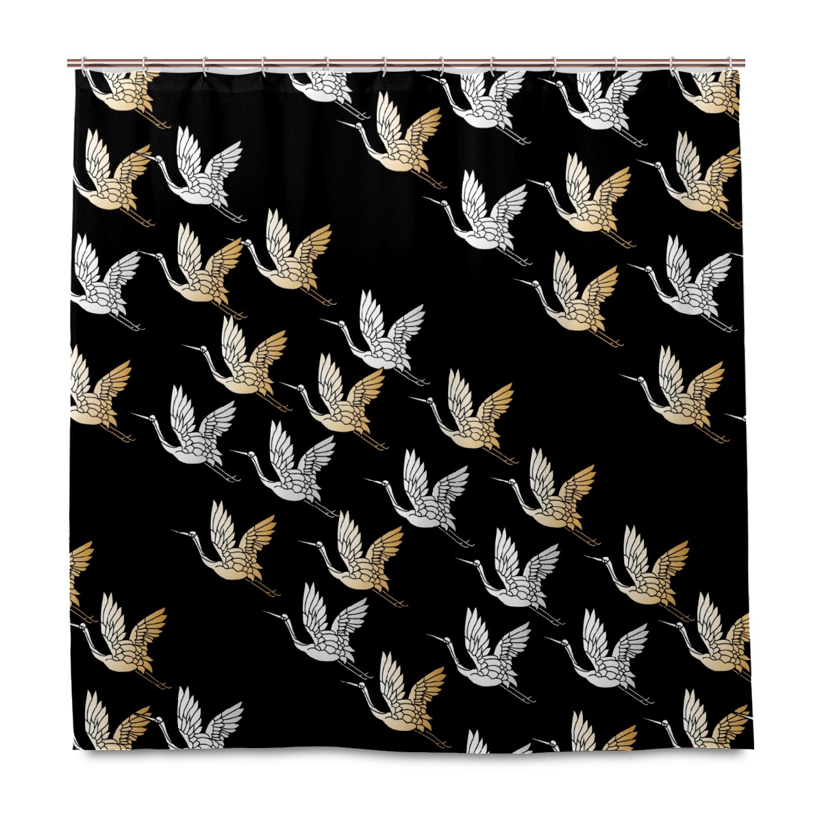 Custom Japanese Geese Flying Pattern Black Bath Curtain 100% Polyester Hotel Home Washable Shower Curtain 60"x72in