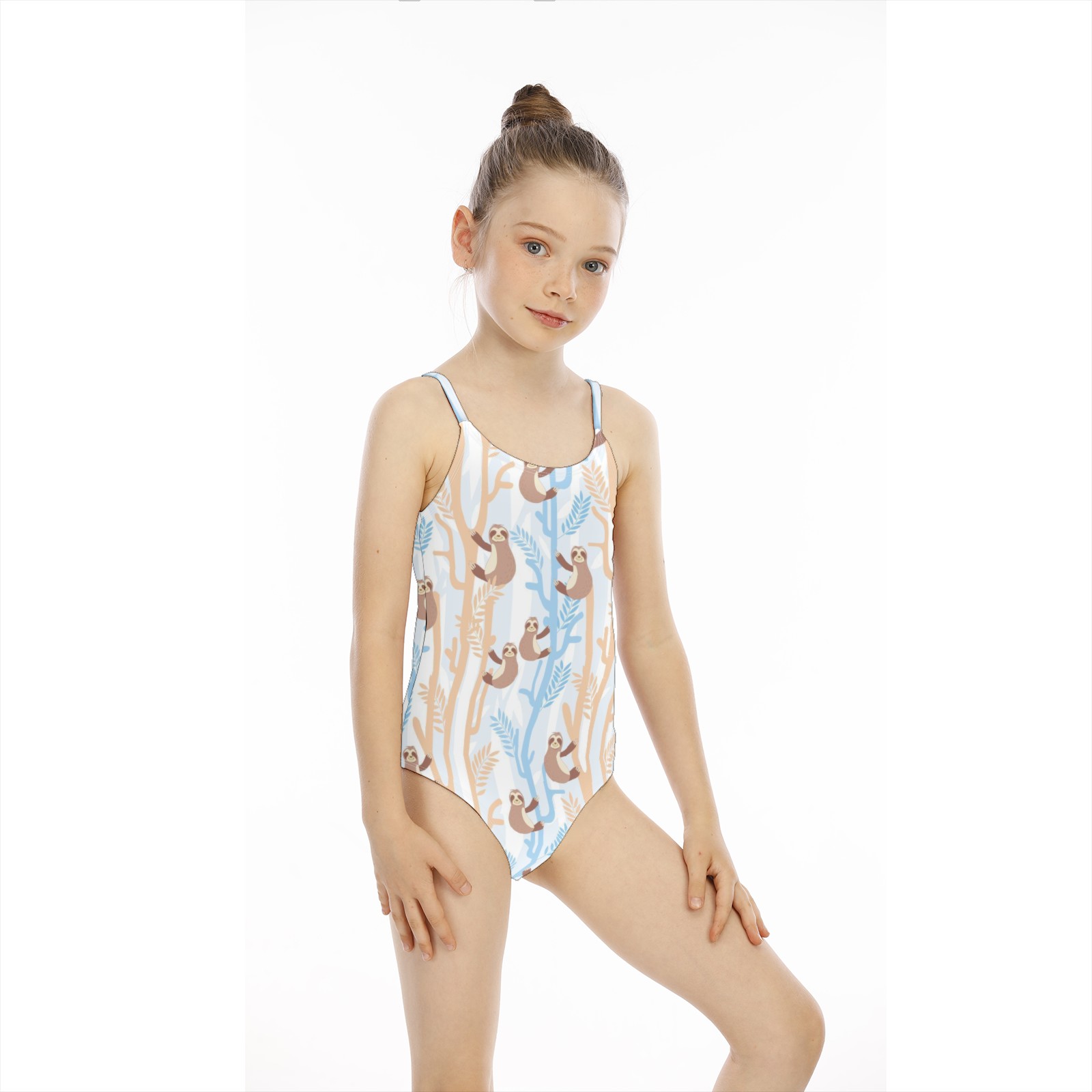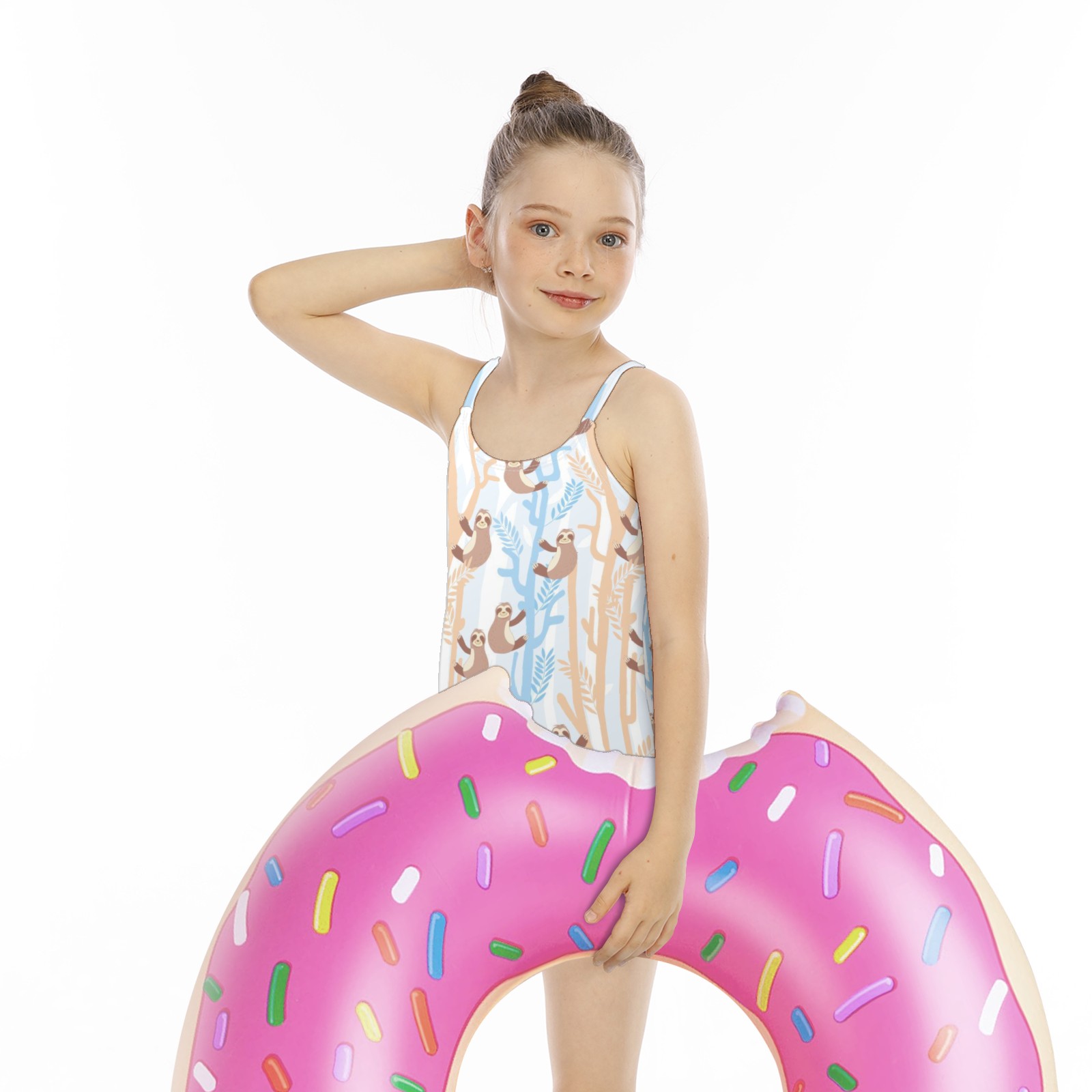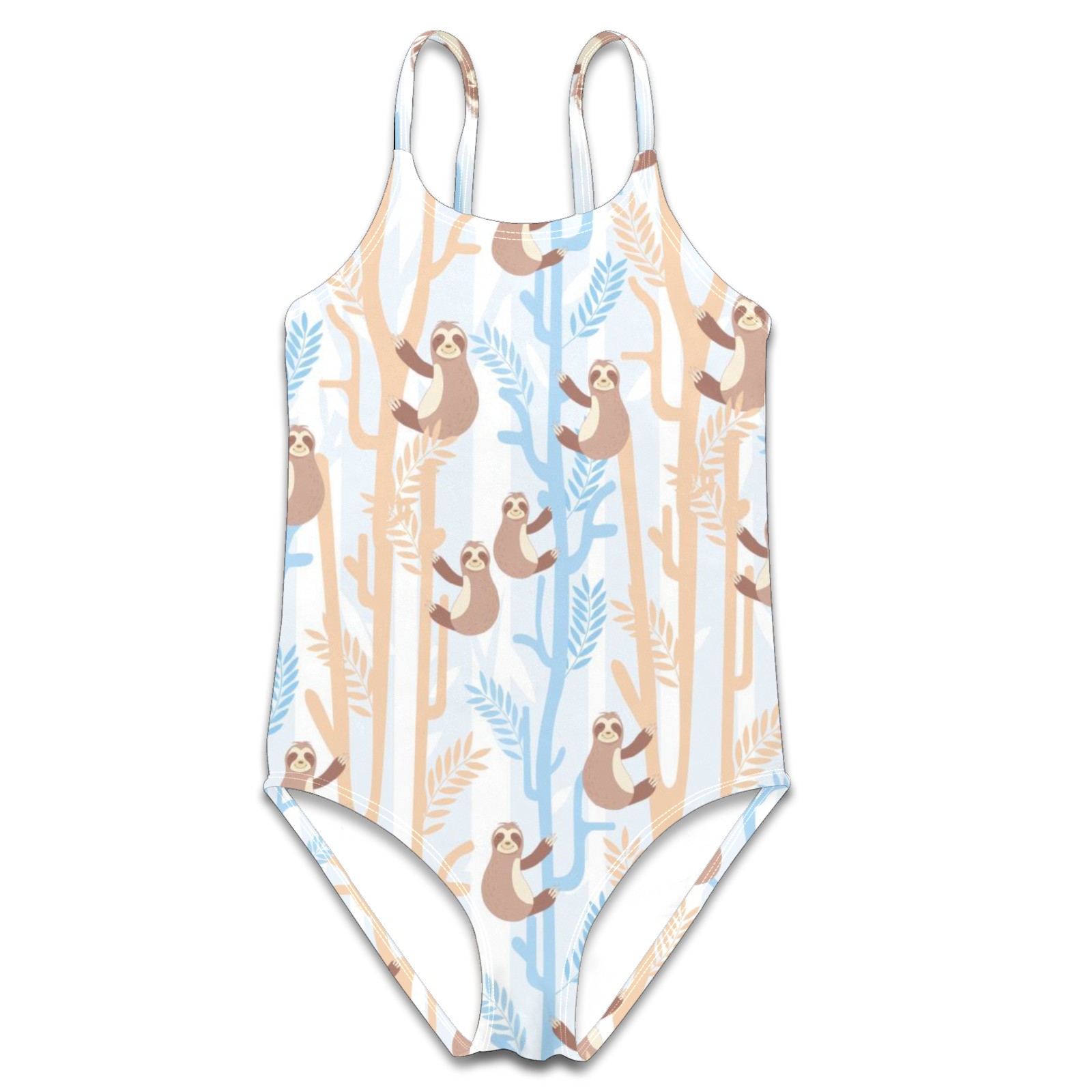 Girls Swimsuit One Piece Funny Sloth Cartoon Summer Swimwear Beach Sport Size 5-6 Years