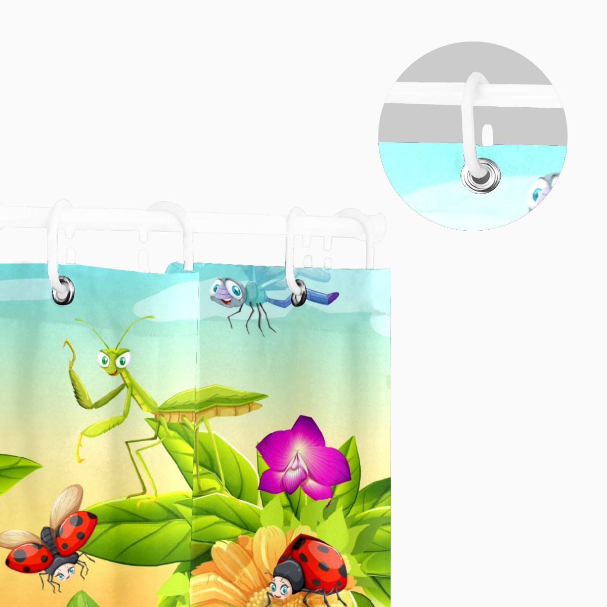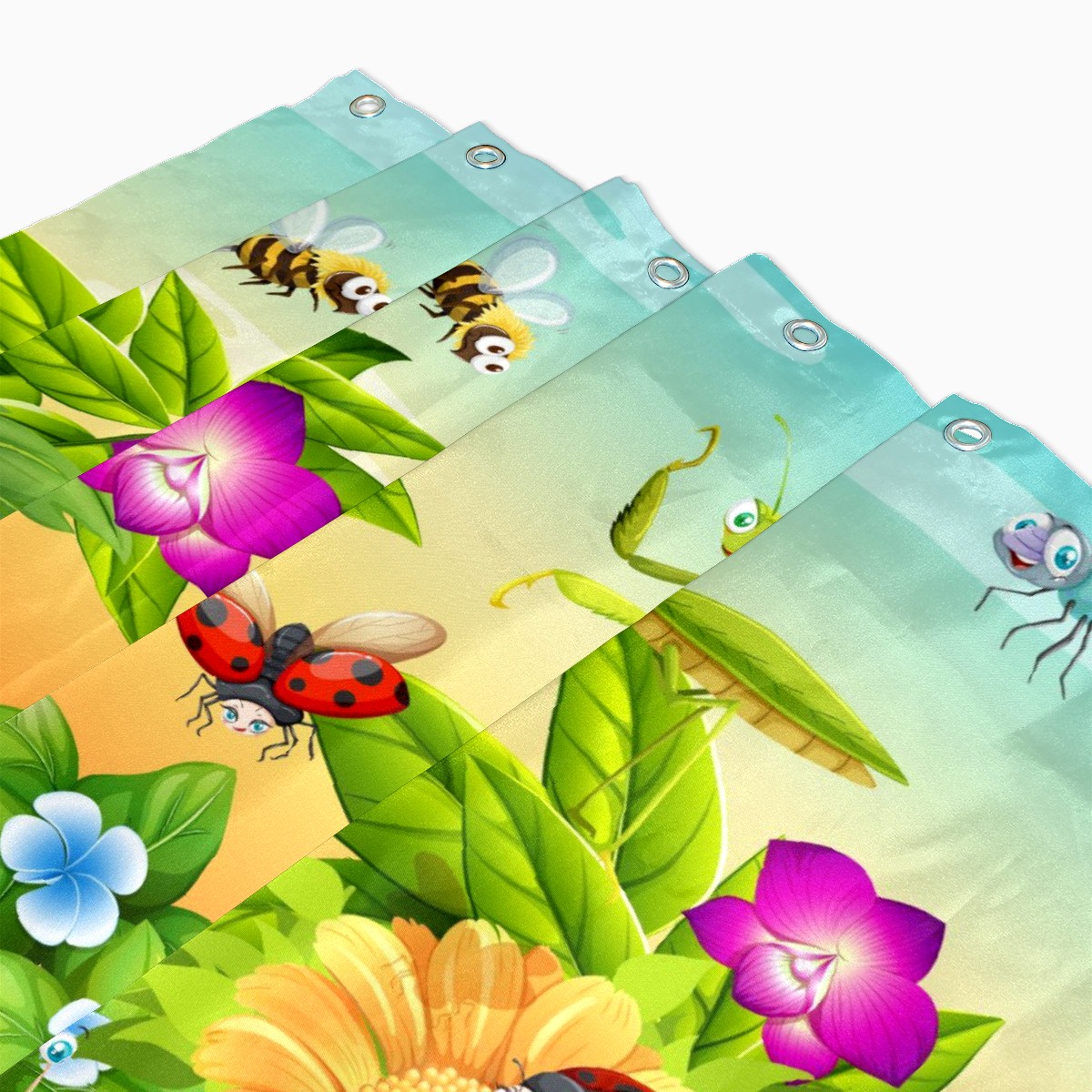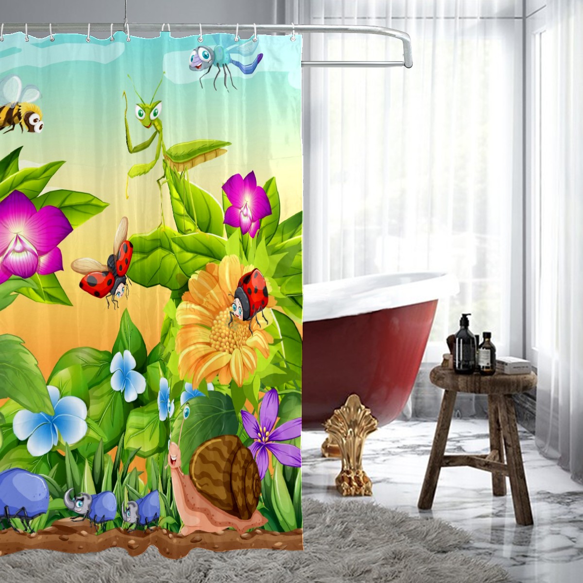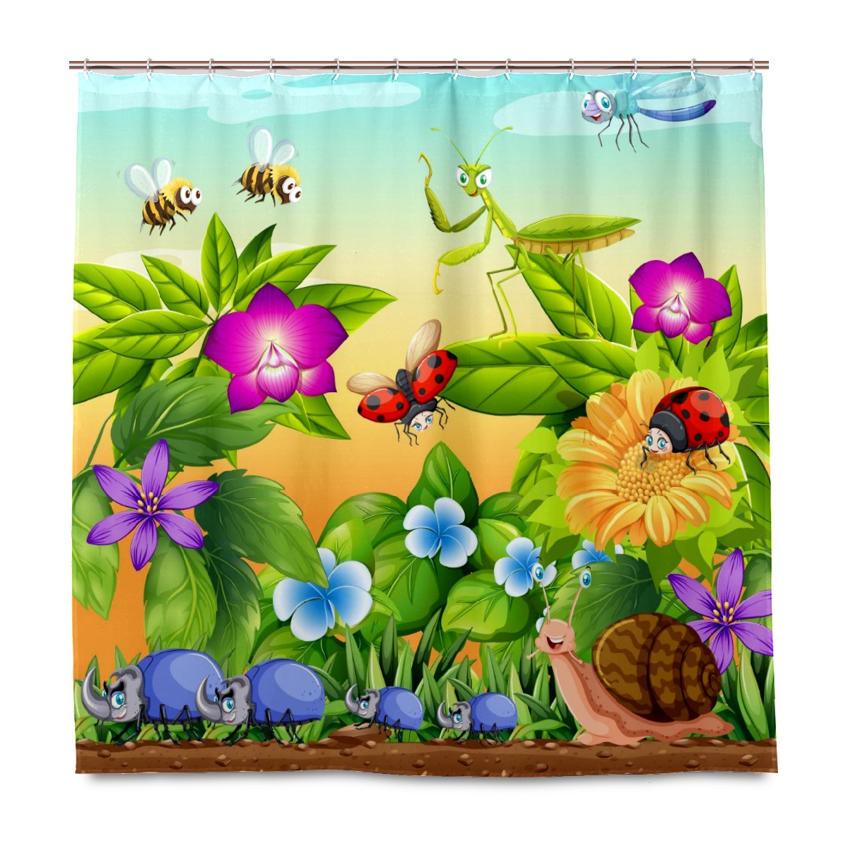 Custom Garden Scene Floral Bee Snail Insects Bath Curtain 100% Polyester Hotel Home Washable Shower Curtain 60"x72in
