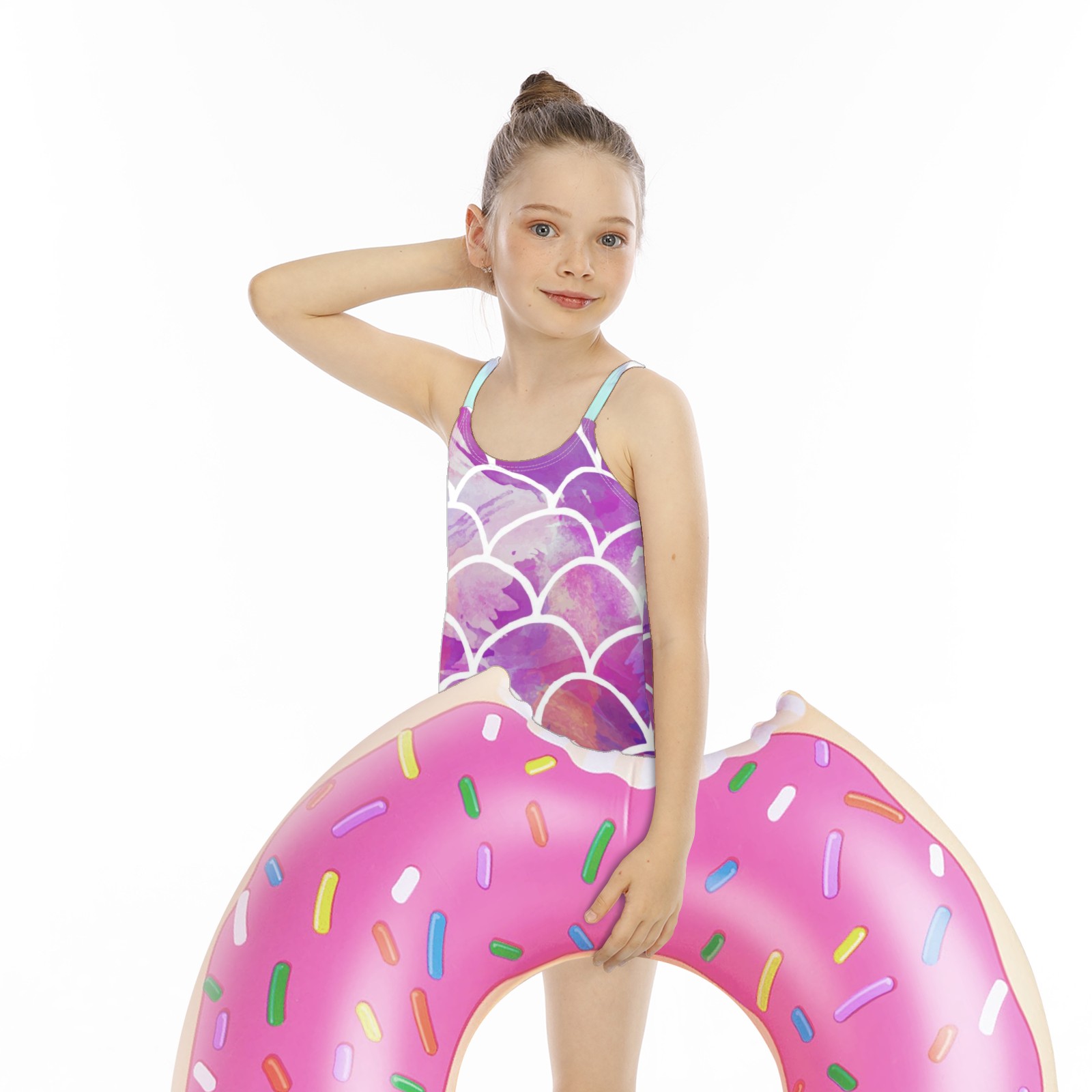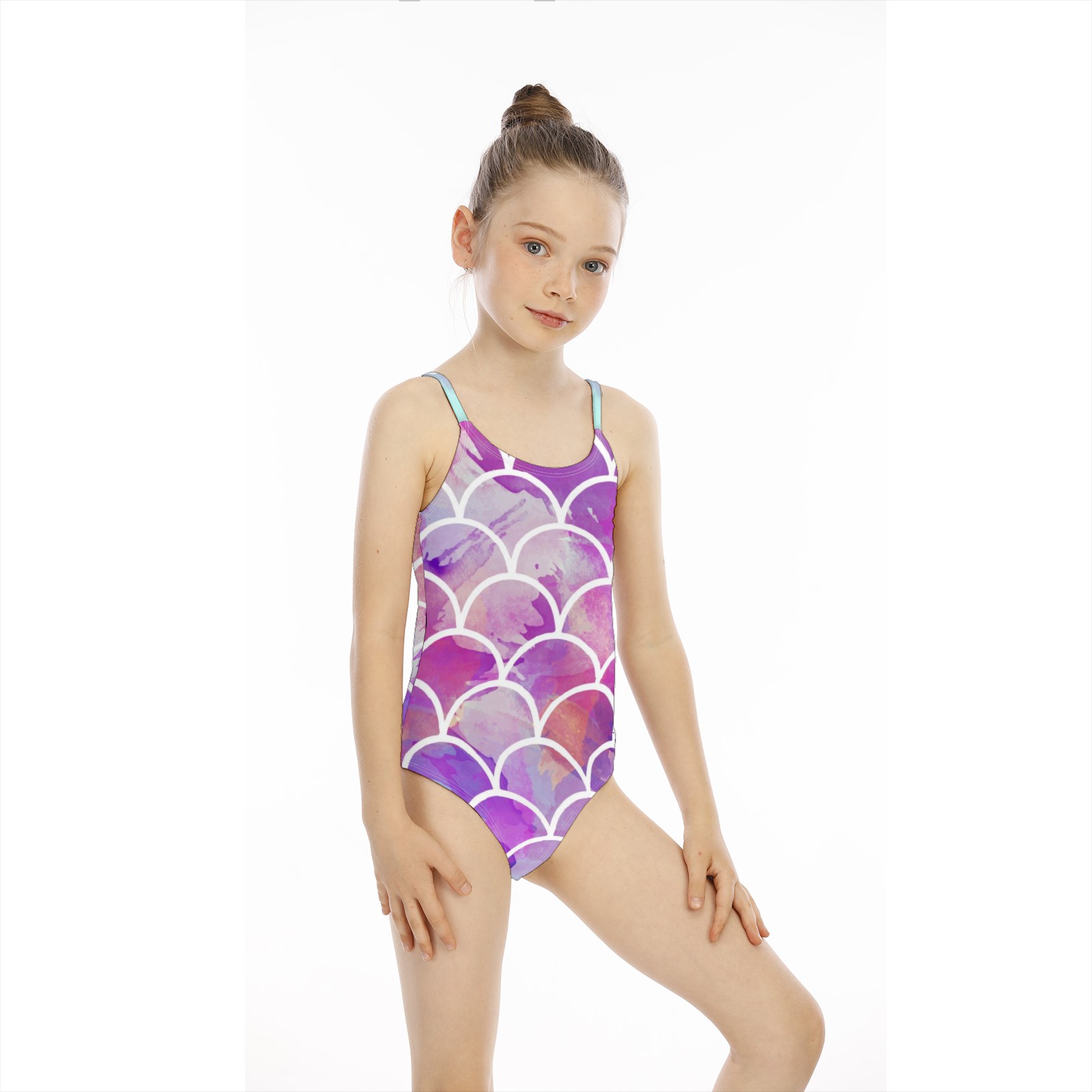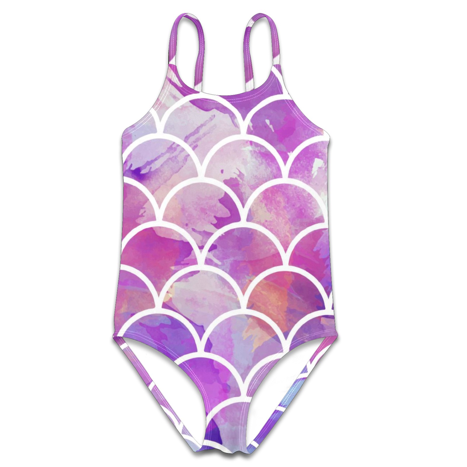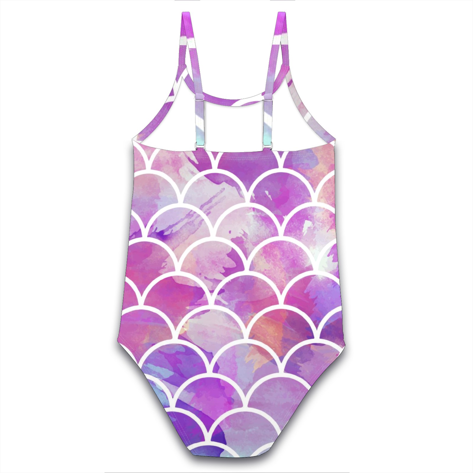 Girls Swimsuit One Piece Mermaid Sacle Watercolor Summer Swimwear Beach Sport Size 5-6 Years