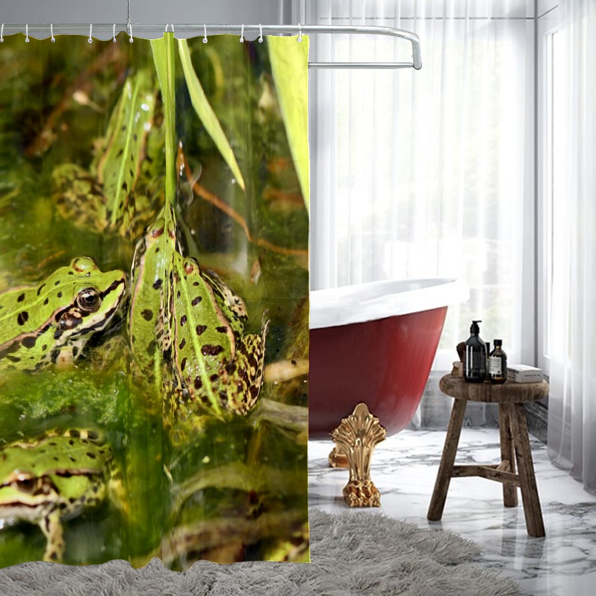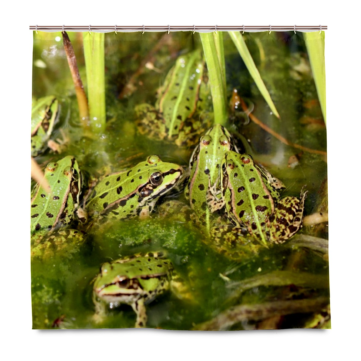 Custom Frogs In The Pond Green Plants Bath Curtain 100% Polyester Hotel Home Washable Shower Curtain 60"x72in