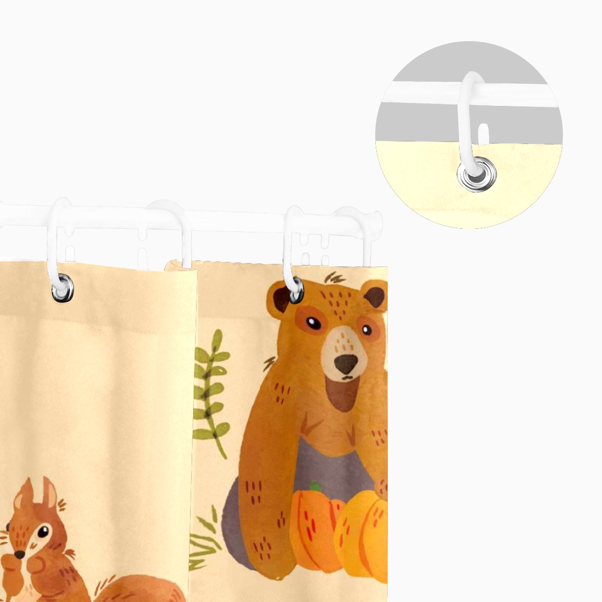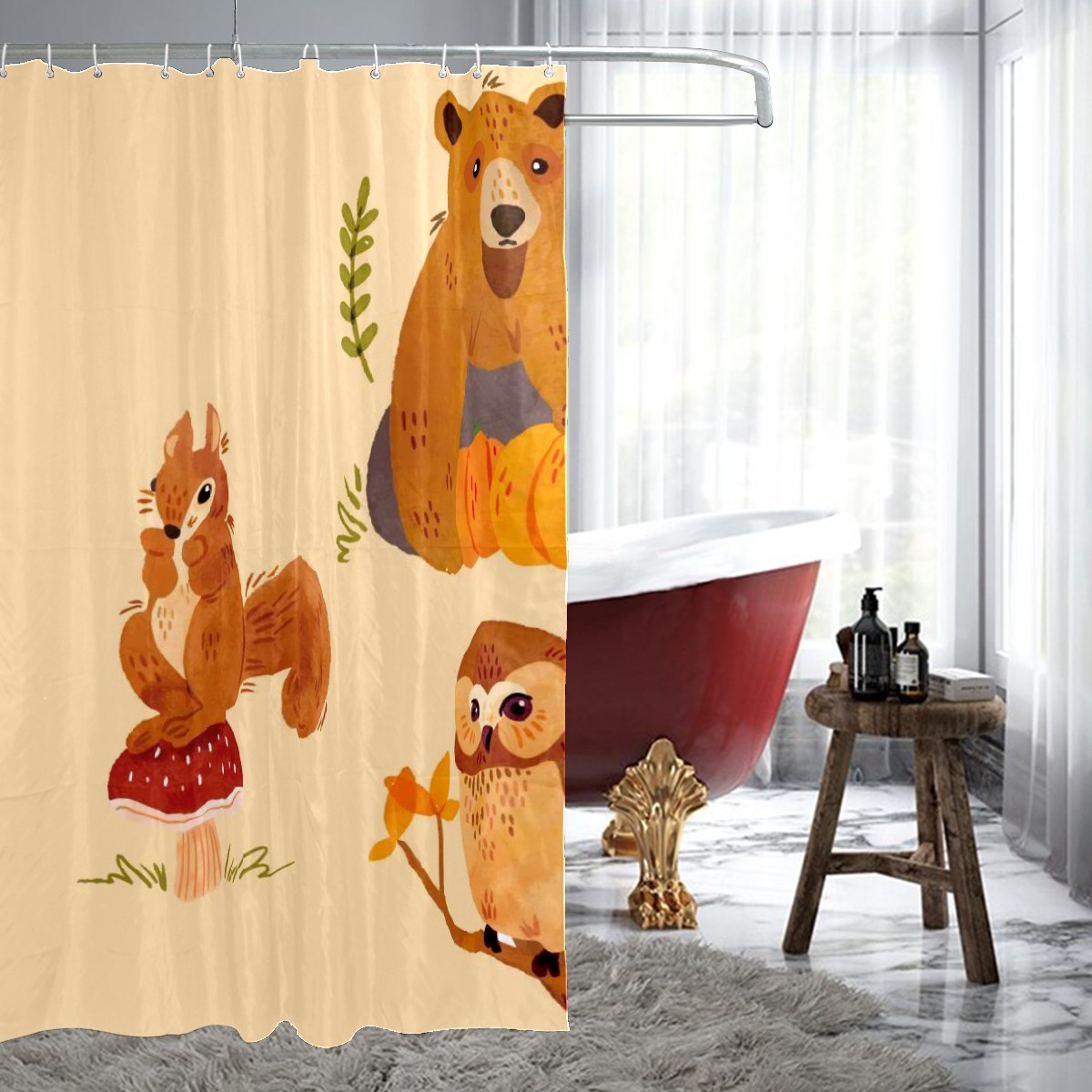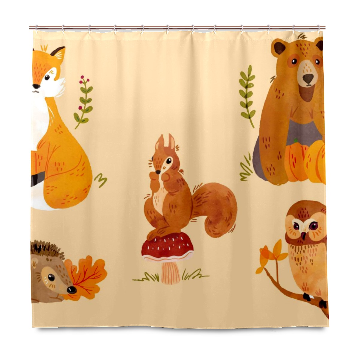 Custom Forest Bunny Fox Bear Hedgehog Squirrel Owl Bath Curtain 100% Polyester Hotel Home Washable Shower Curtain 60"x72in