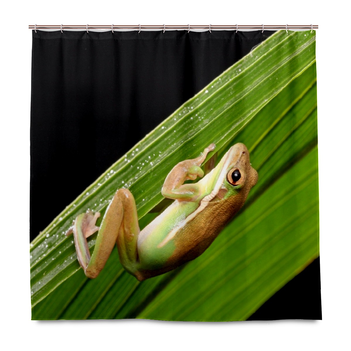 Custom Frog Lying On The Palm Leaves Bath Curtain 100% Polyester Hotel Home Washable Shower Curtain 60"x72in