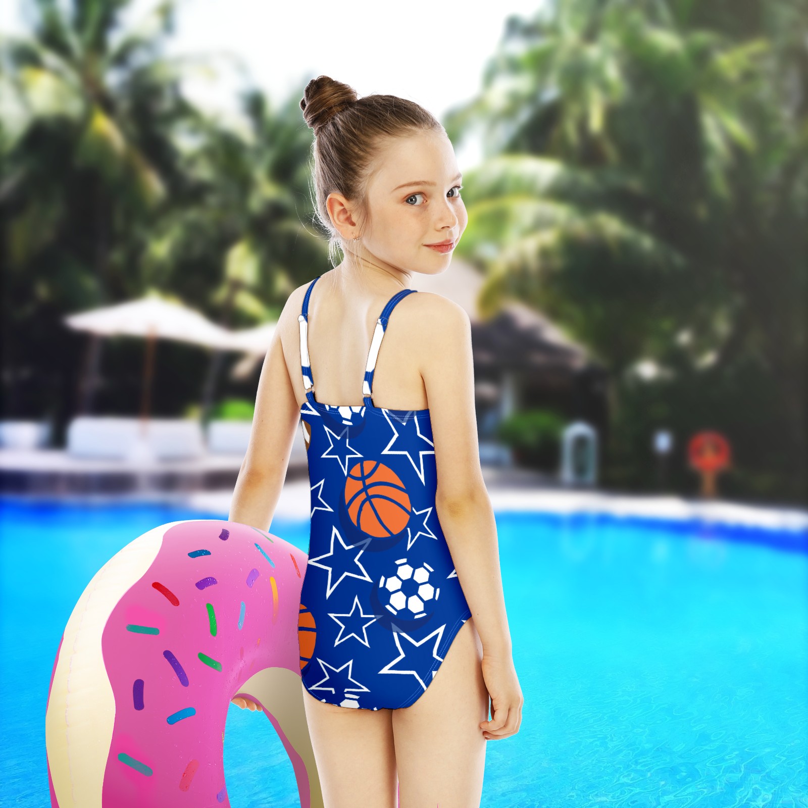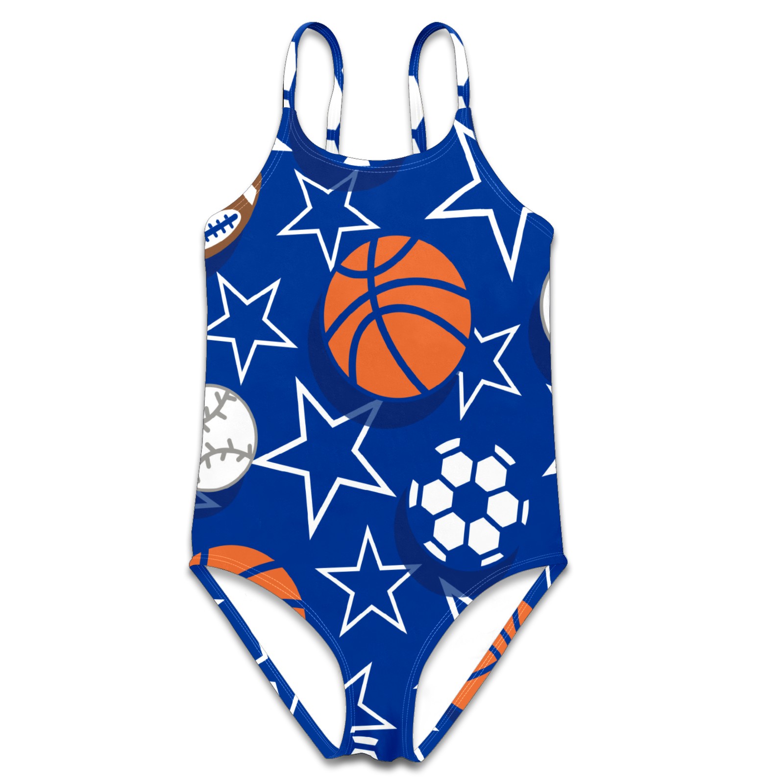 Girls Swimsuit One Piece Basketball Soccer Baseball Football Star Summer Swimwear Beach Sport Size 5-6 Years