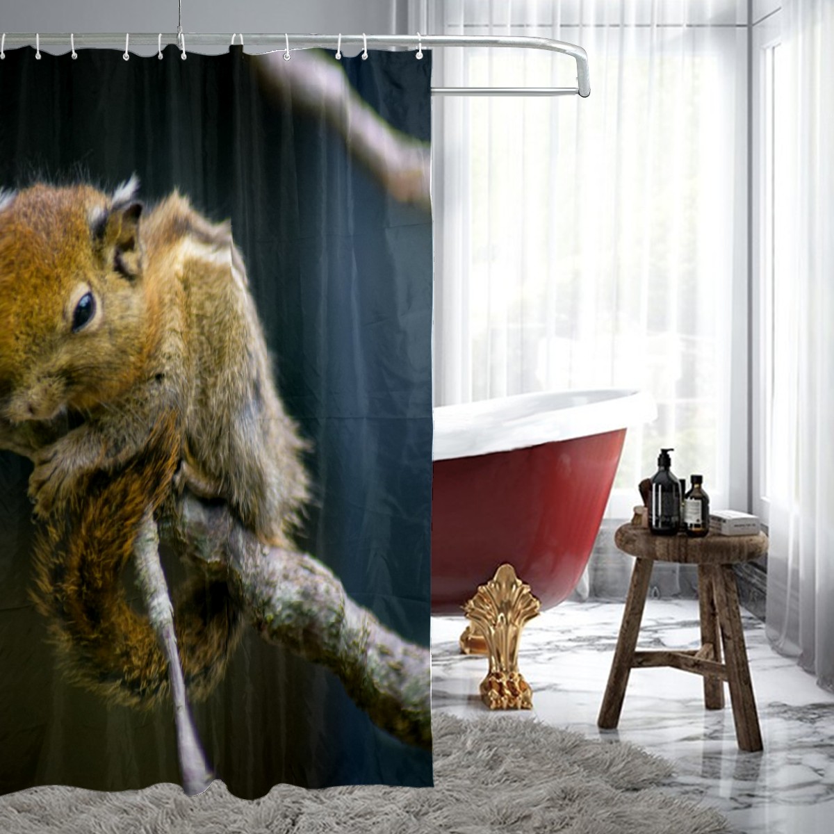 Custom Chipmunk Hug Tree Branch Animal Nature Bath Curtain 100% Polyester Hotel Home Washable Shower Curtain 60"x72in