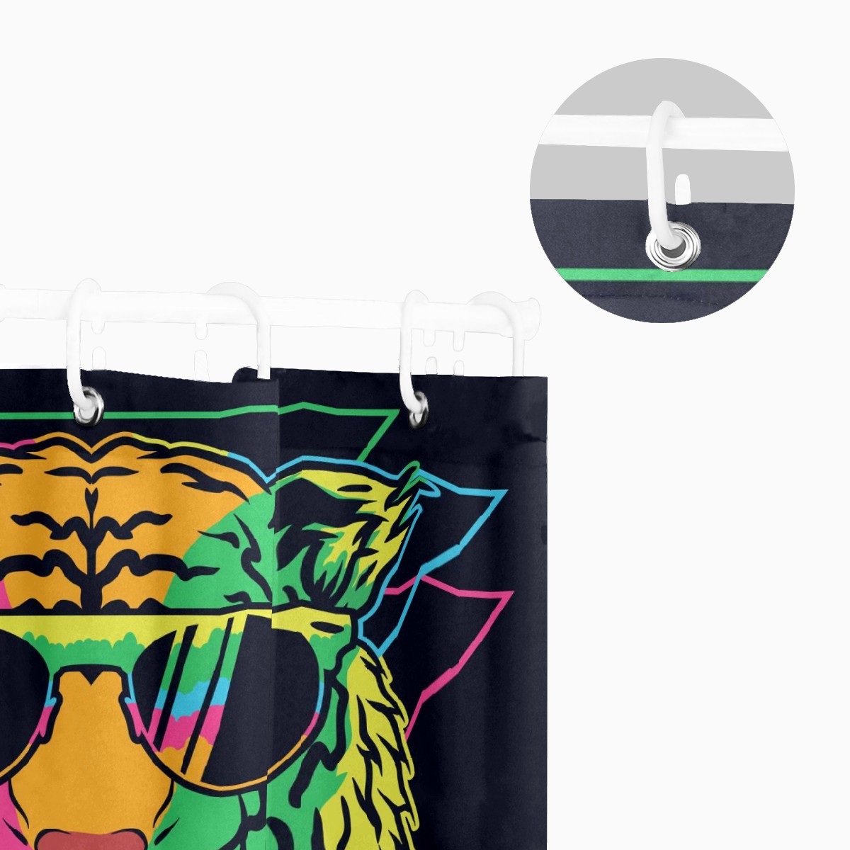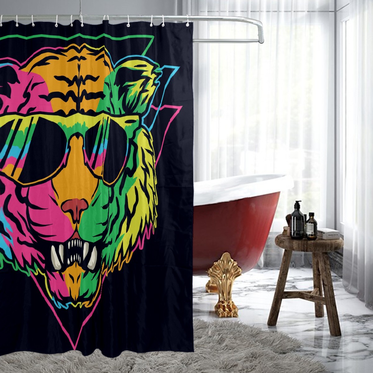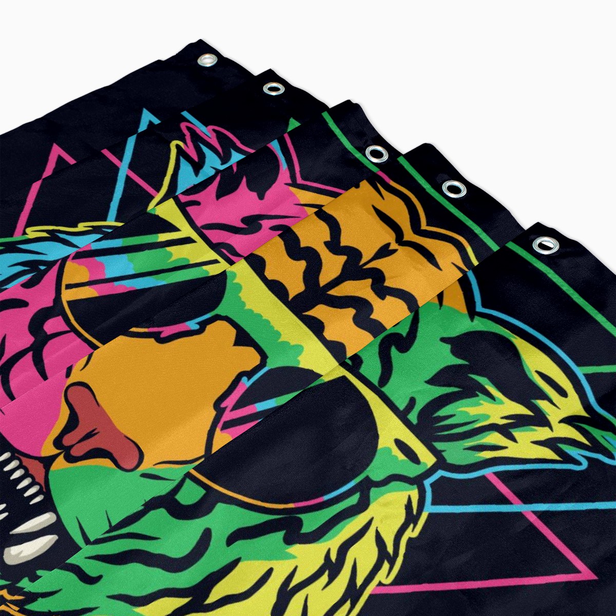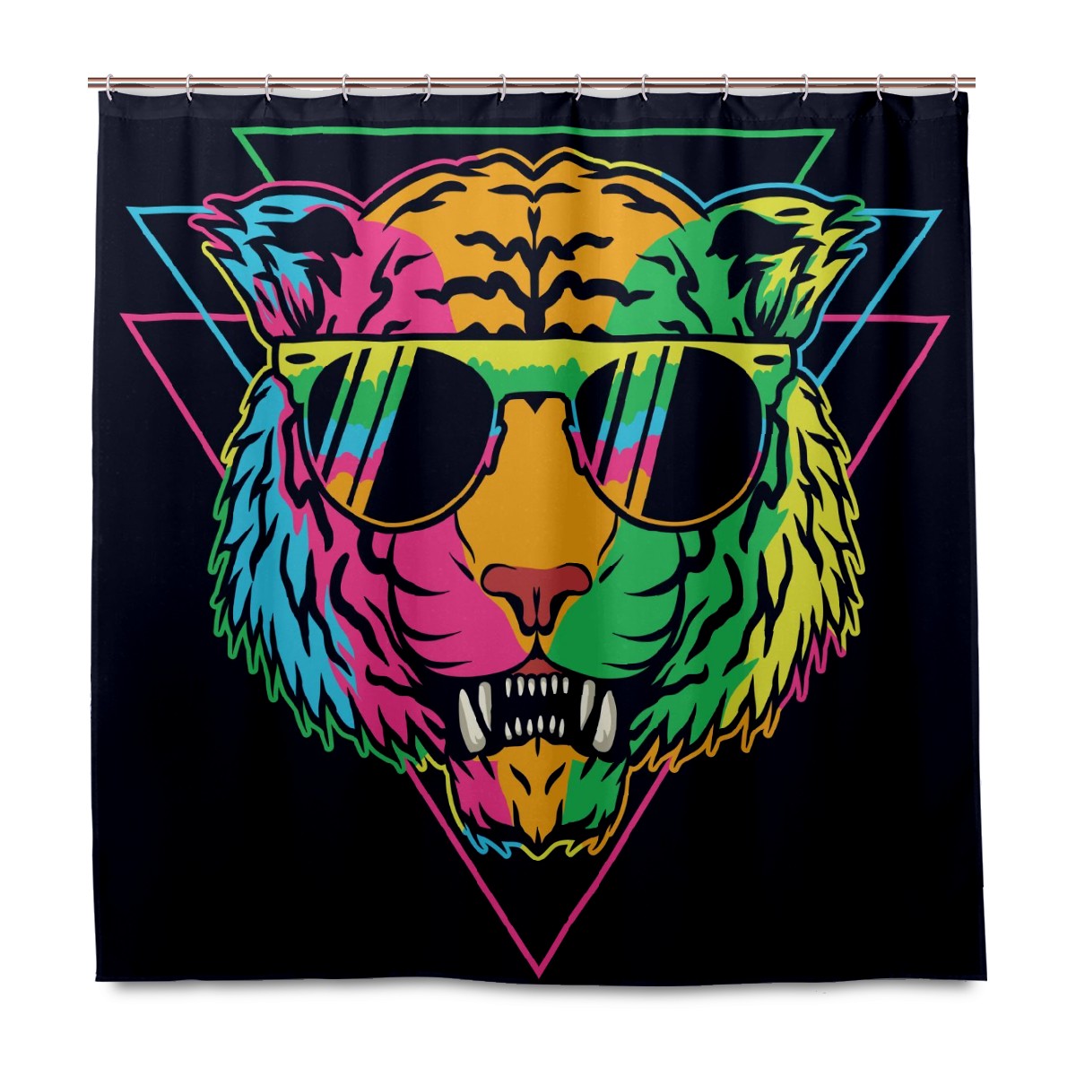 Custom Colorful Tiger With Glasses Triangle Black Background Bath Curtain 100% Polyester Hotel Home Washable Shower Curtain 60"x72in