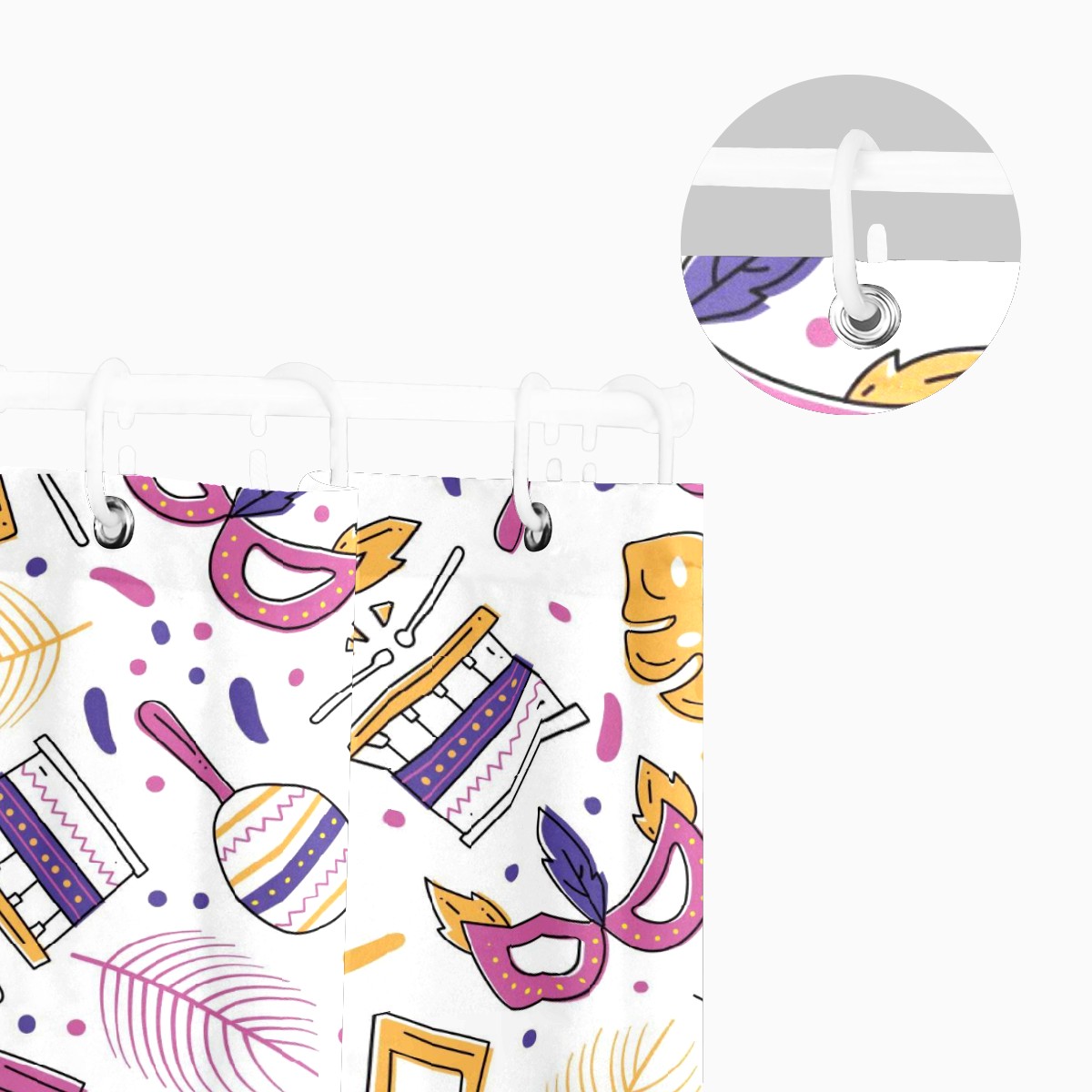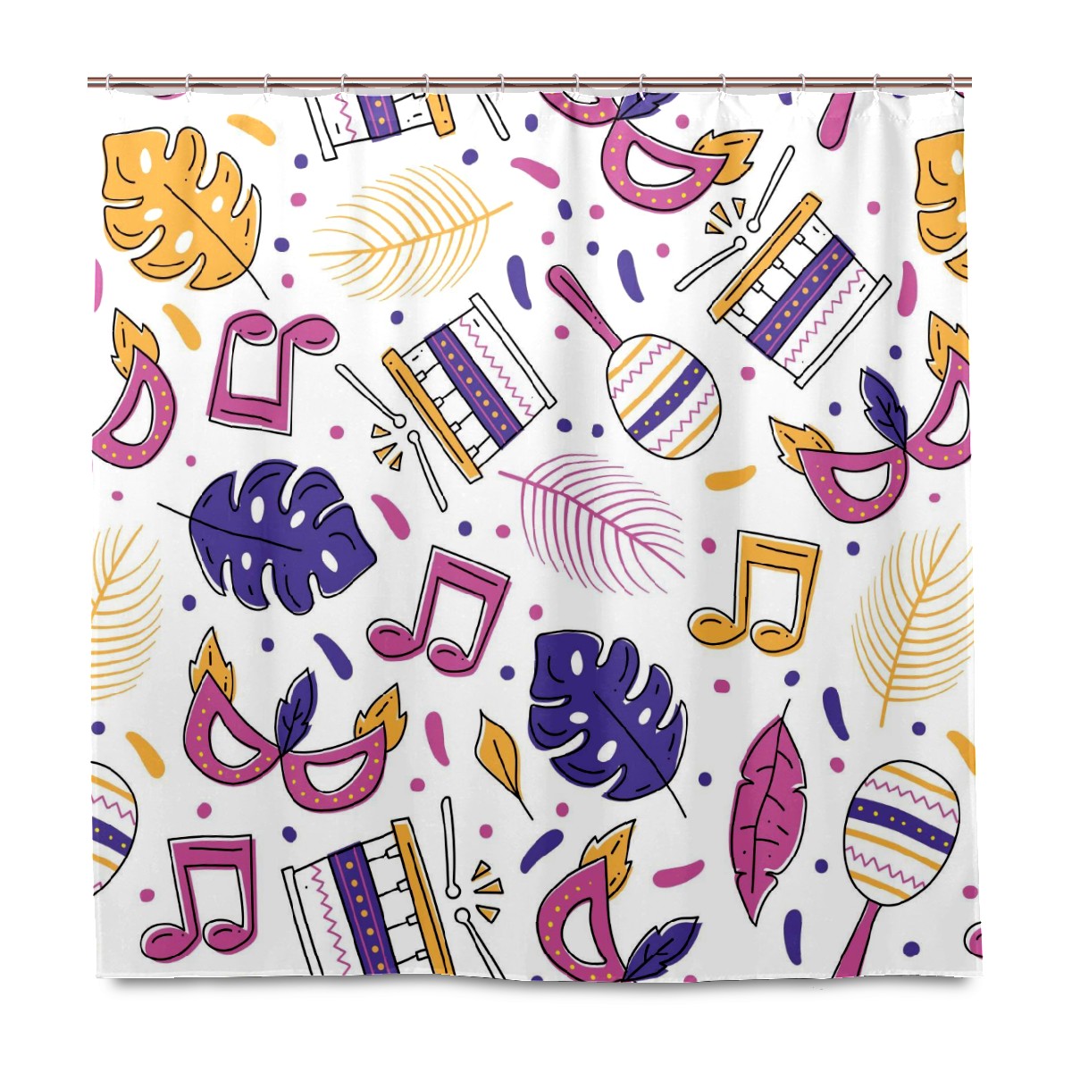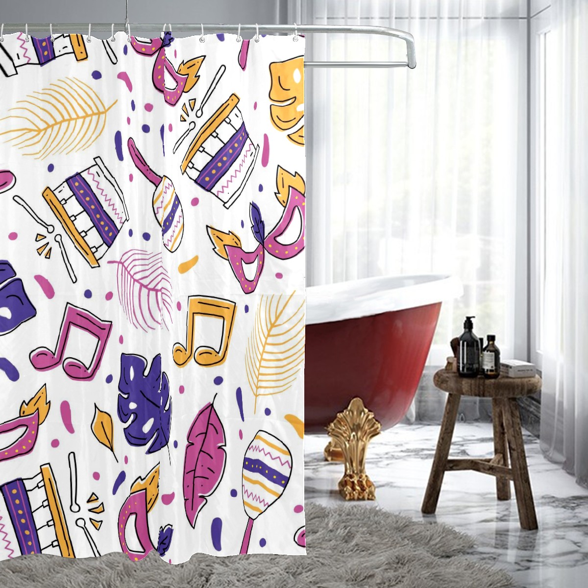 Custom Brazilian Party Decor Mask Music Note Feather Pattern Bath Curtain 100% Polyester Hotel Home Washable Shower Curtain 60"x72in