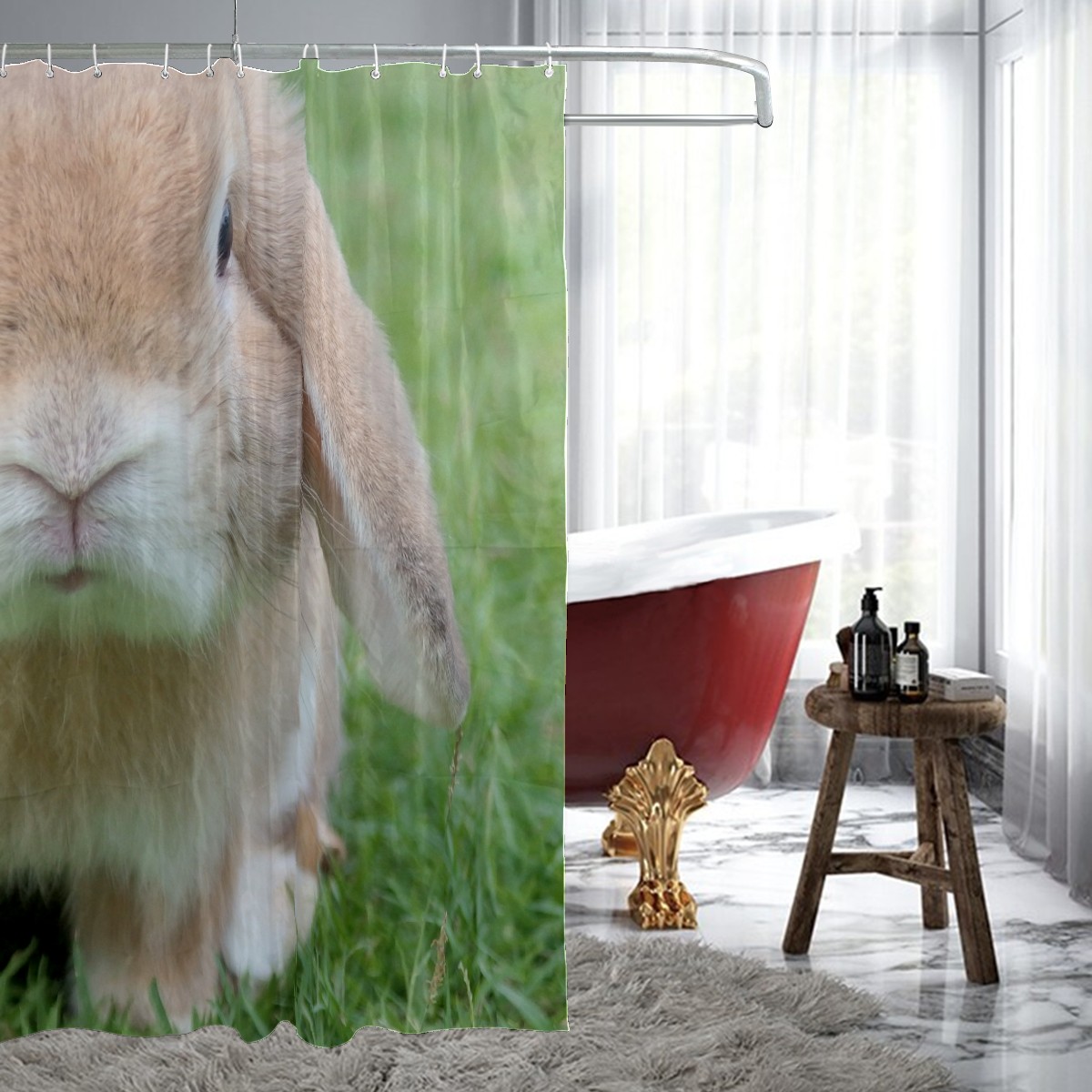 Custom Bunny Loght Brown Rabbit Grassland Bath Curtain 100% Polyester Hotel Home Washable Shower Curtain 60"x72in
