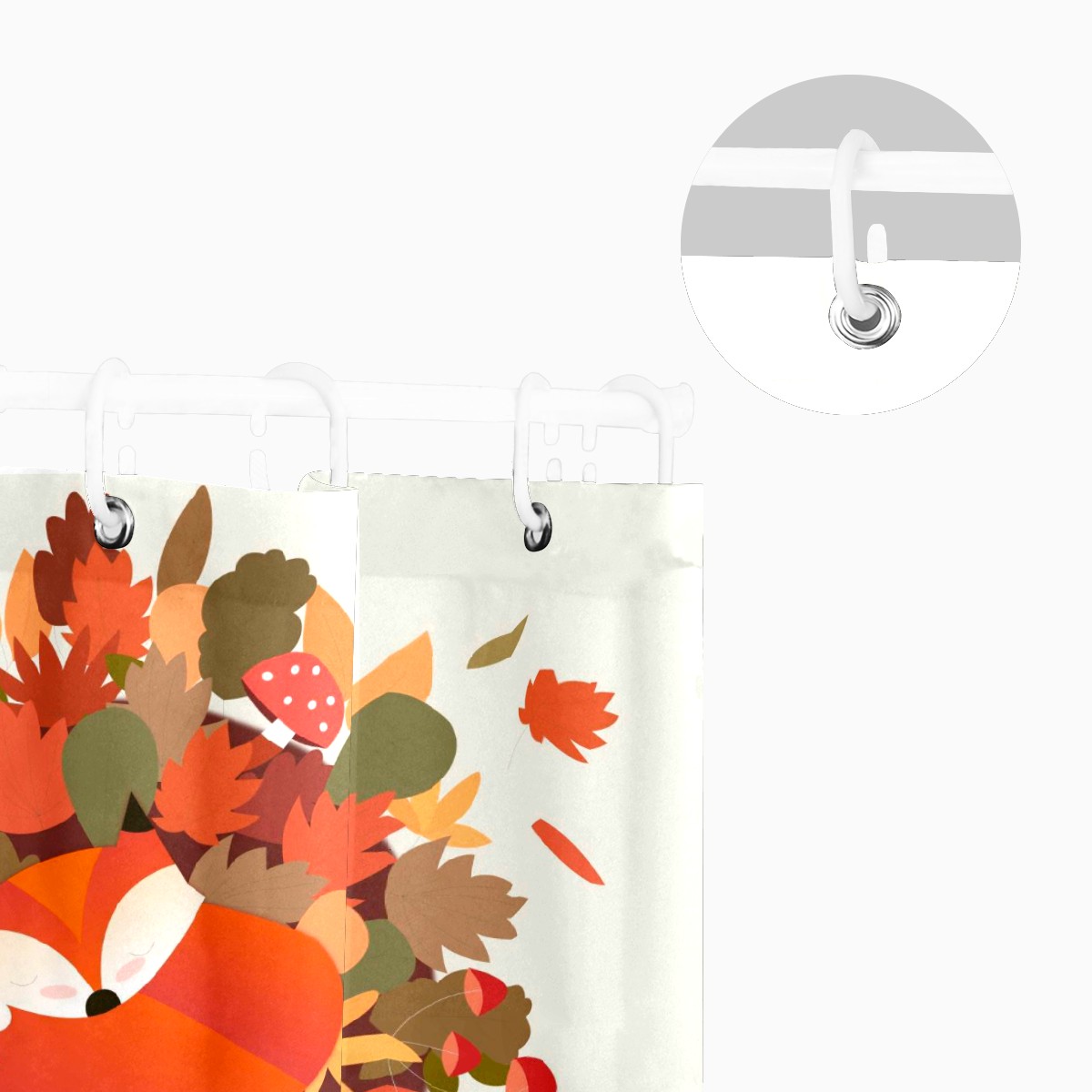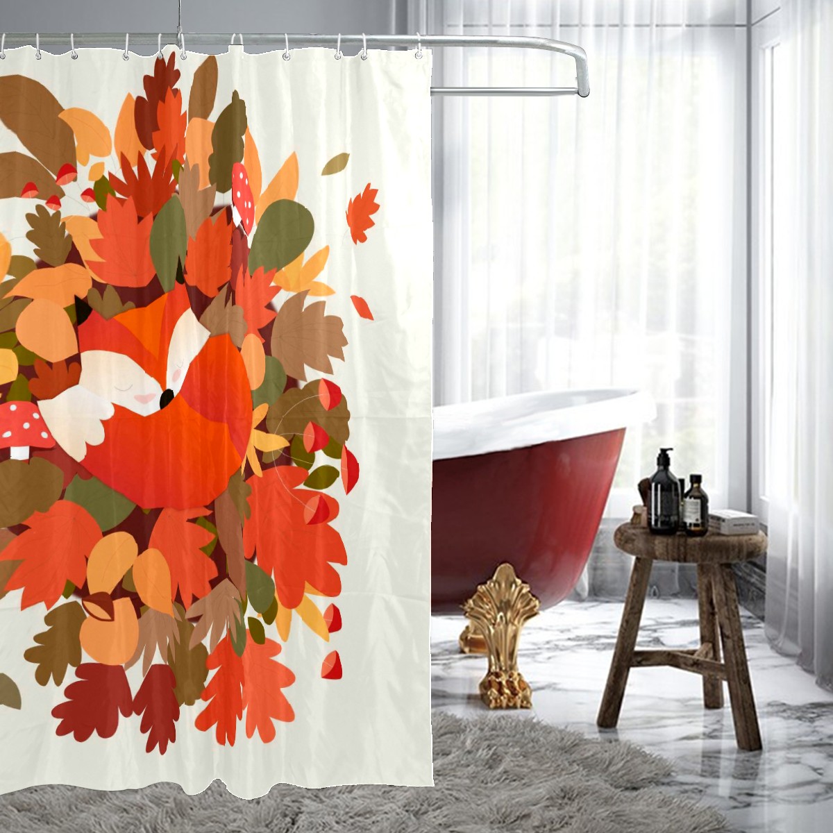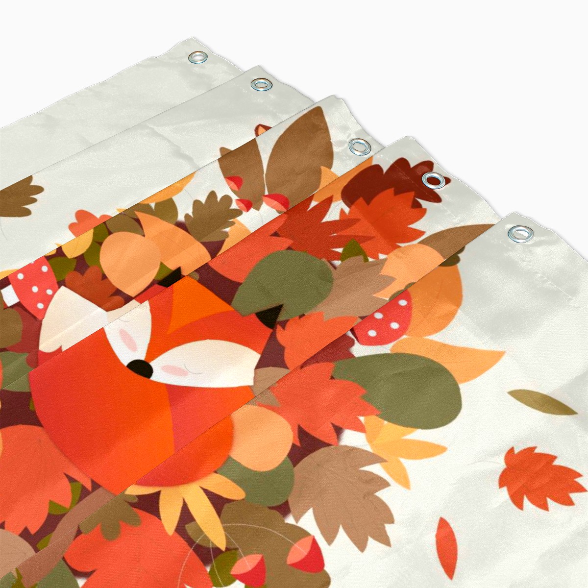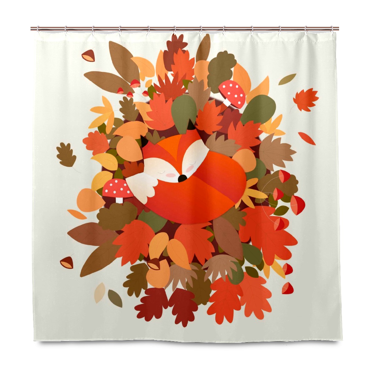 Custom Autumn Orange Leaves Maples Fox Animal Mushroom Bath Curtain 100% Polyester Hotel Home Washable Shower Curtain 60"x72in