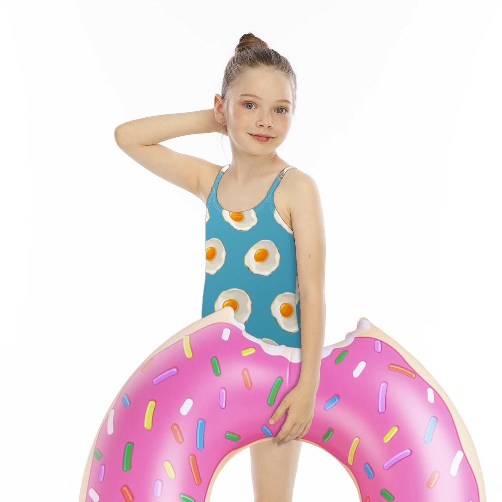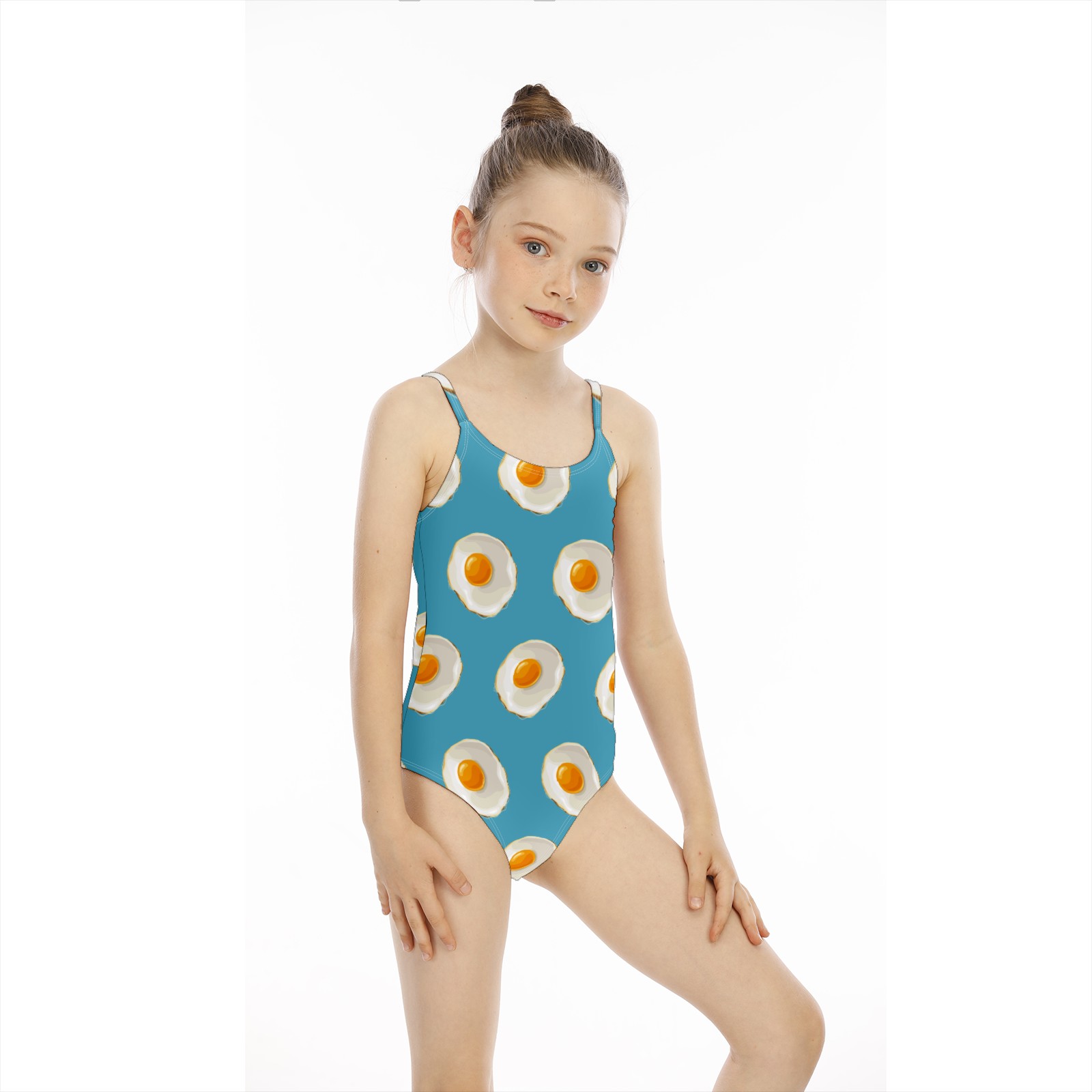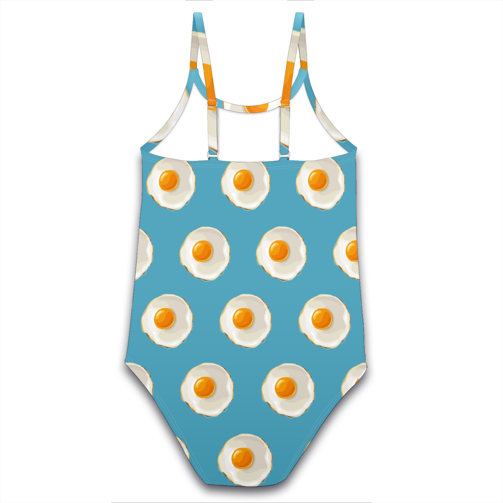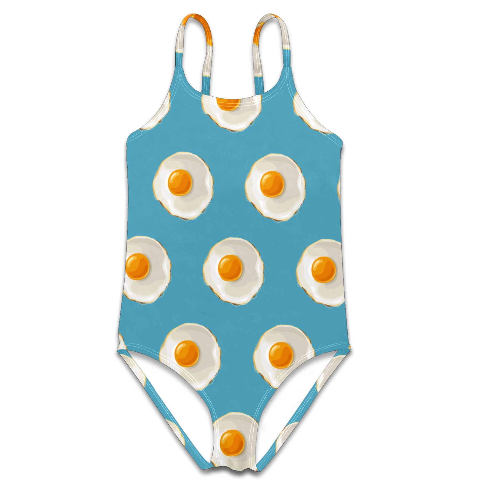 Girls Swimsuit One Piece Cute Fired Eggs Summer Swimwear Beach Sport Size 5-6 Years