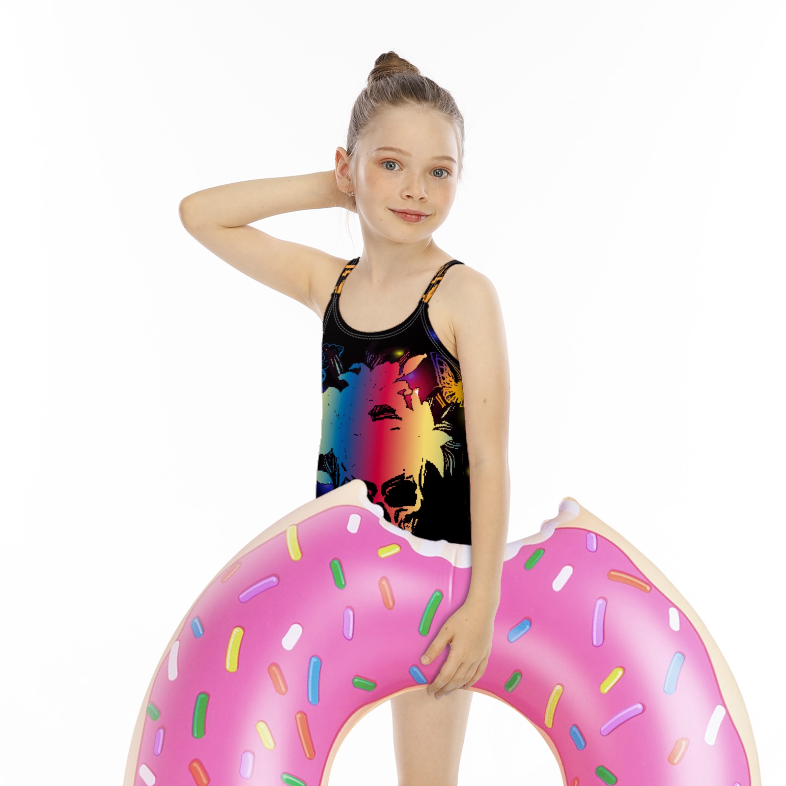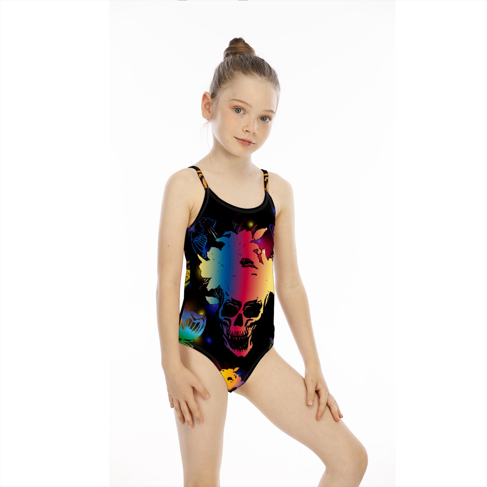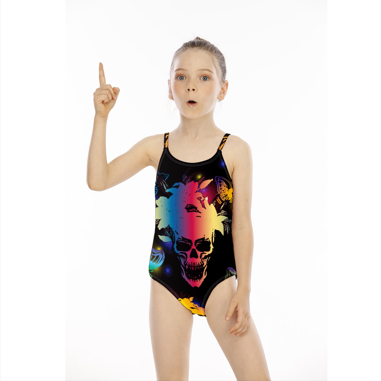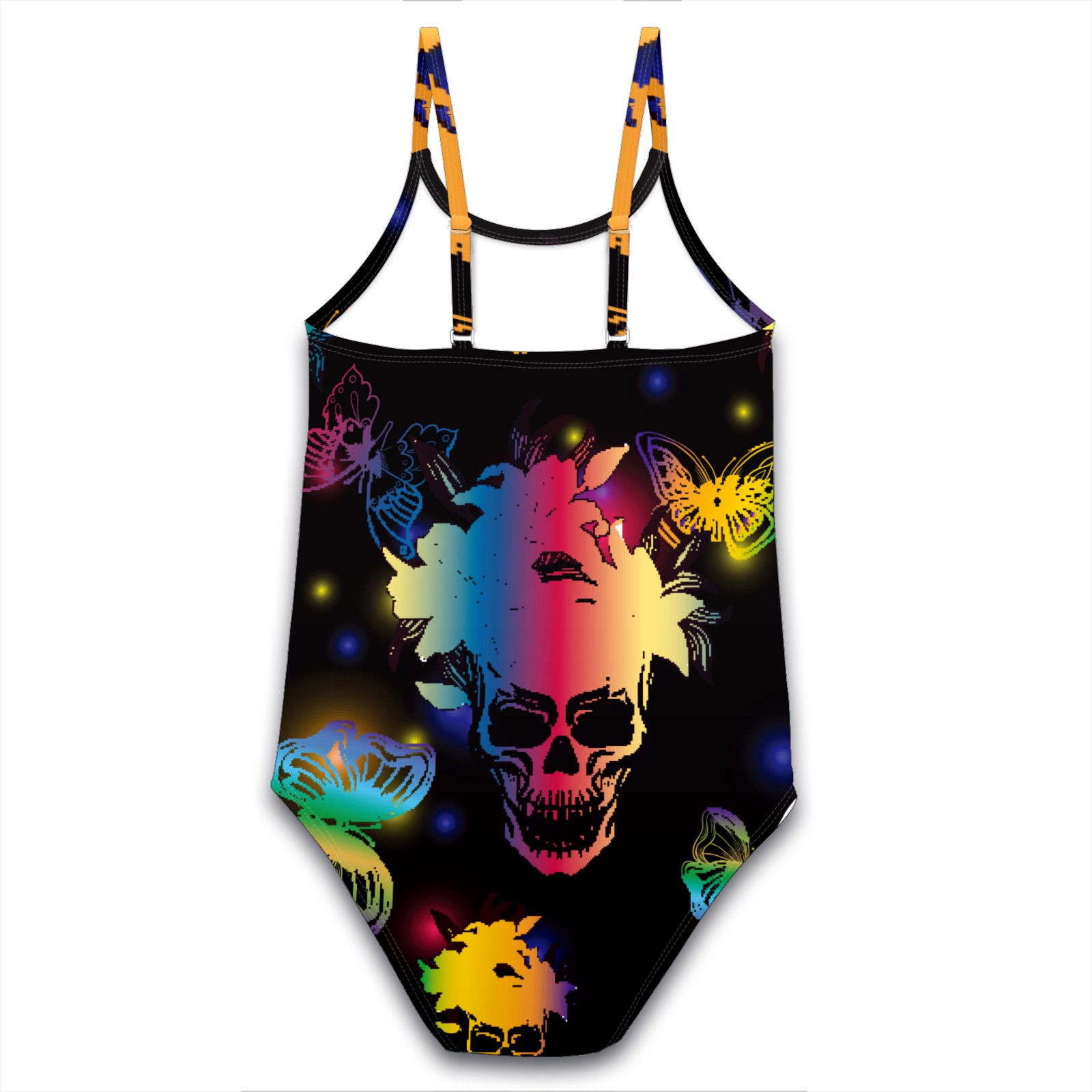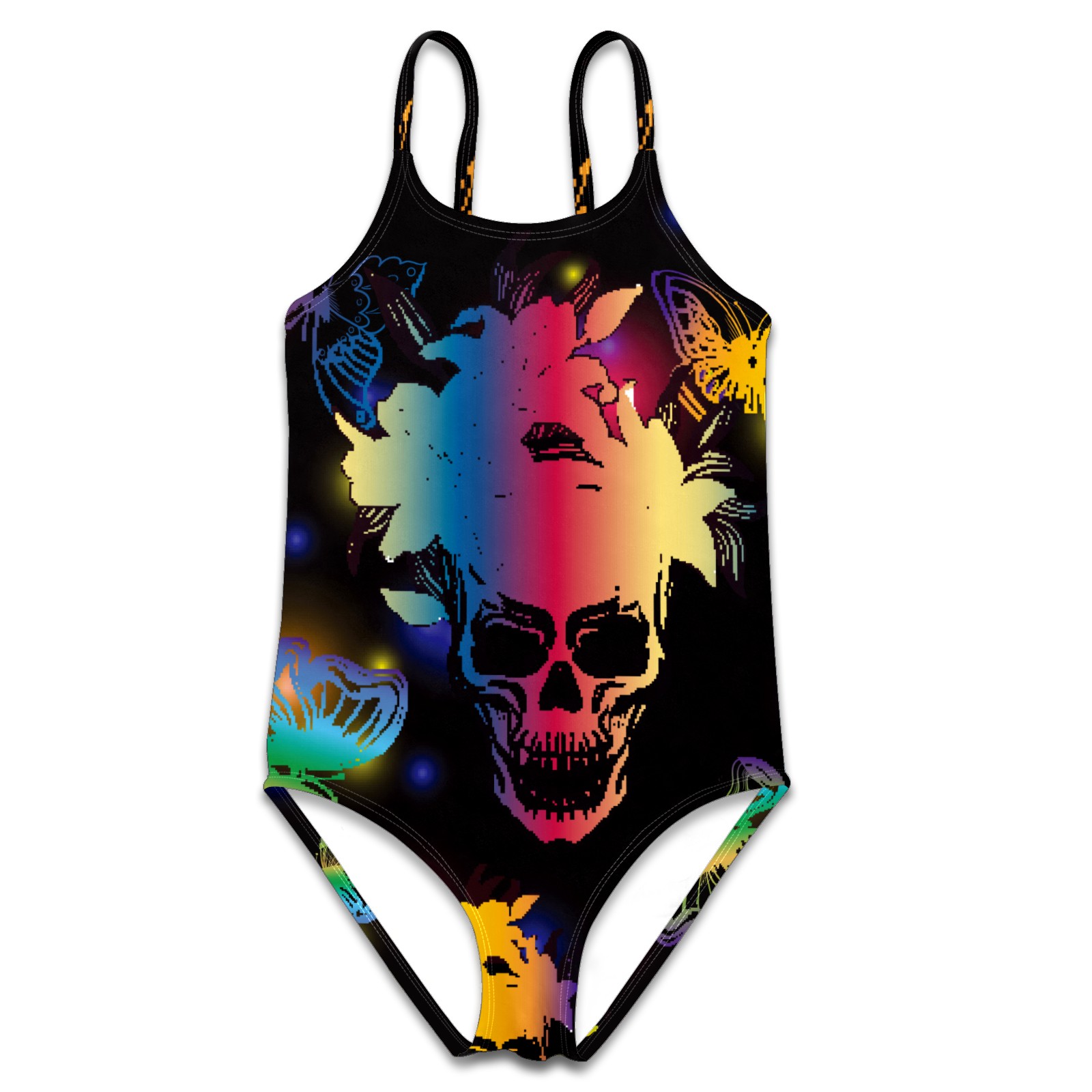 Girls Swimsuit One Piece Butterfly Skull Colorful Fluorescent Summer Swimwear Beach Sport Size 5-6 Years