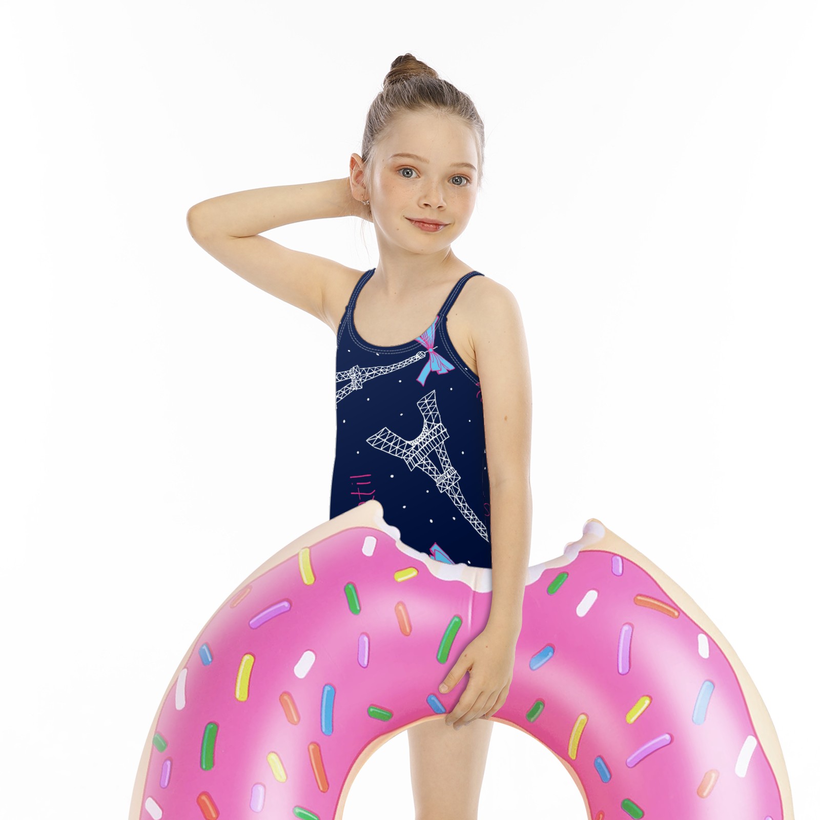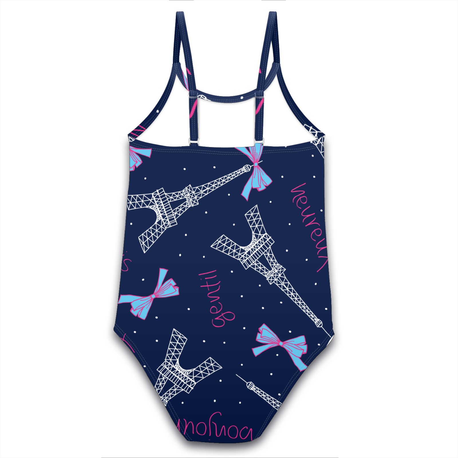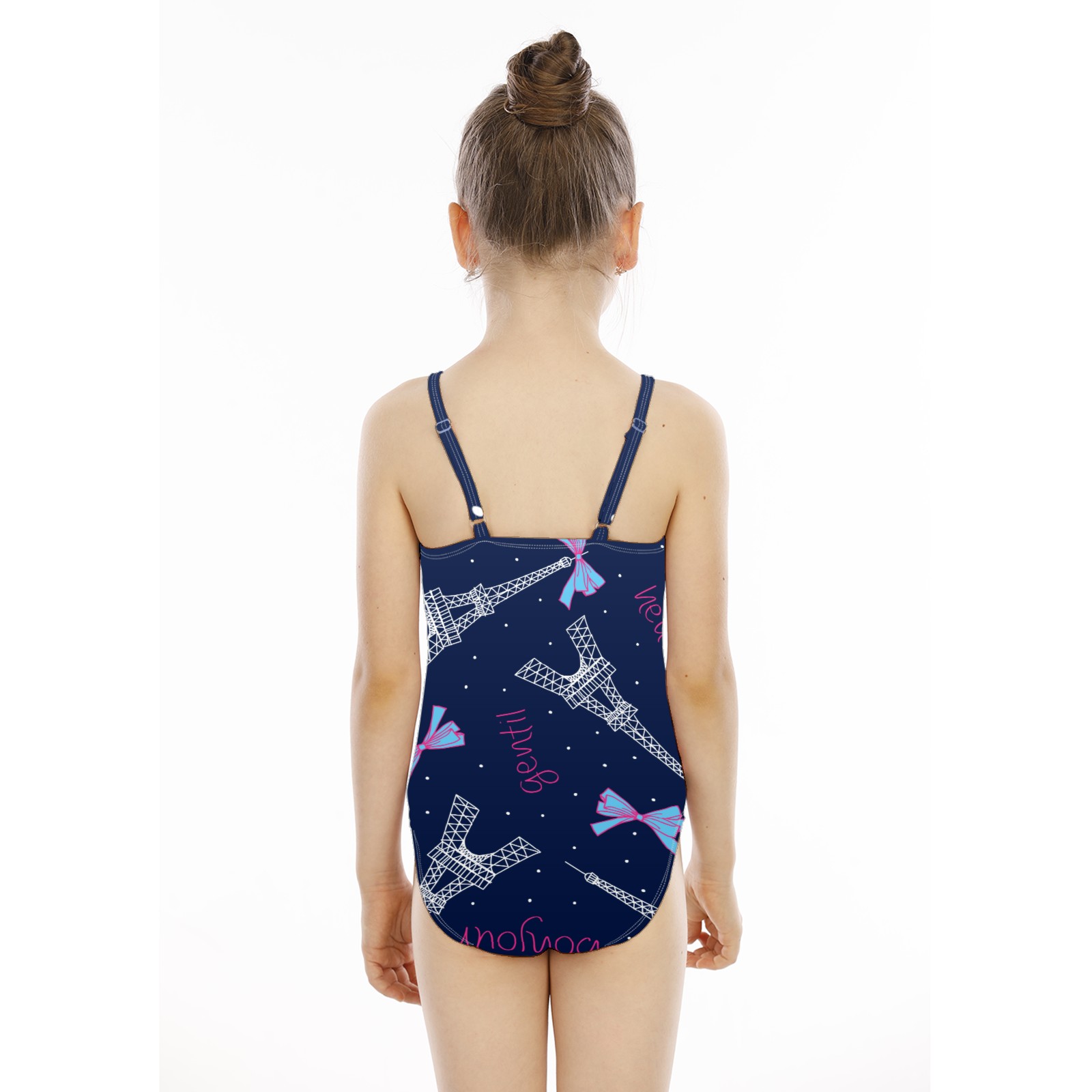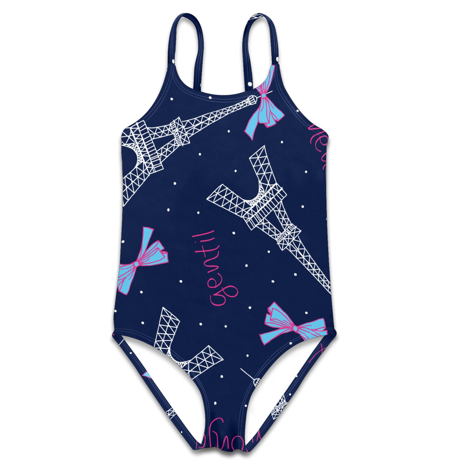 Girls Swimsuit One Piece Paris Eiffel Tower Bow Summer Swimwear Beach Sport Size 5-6 Years