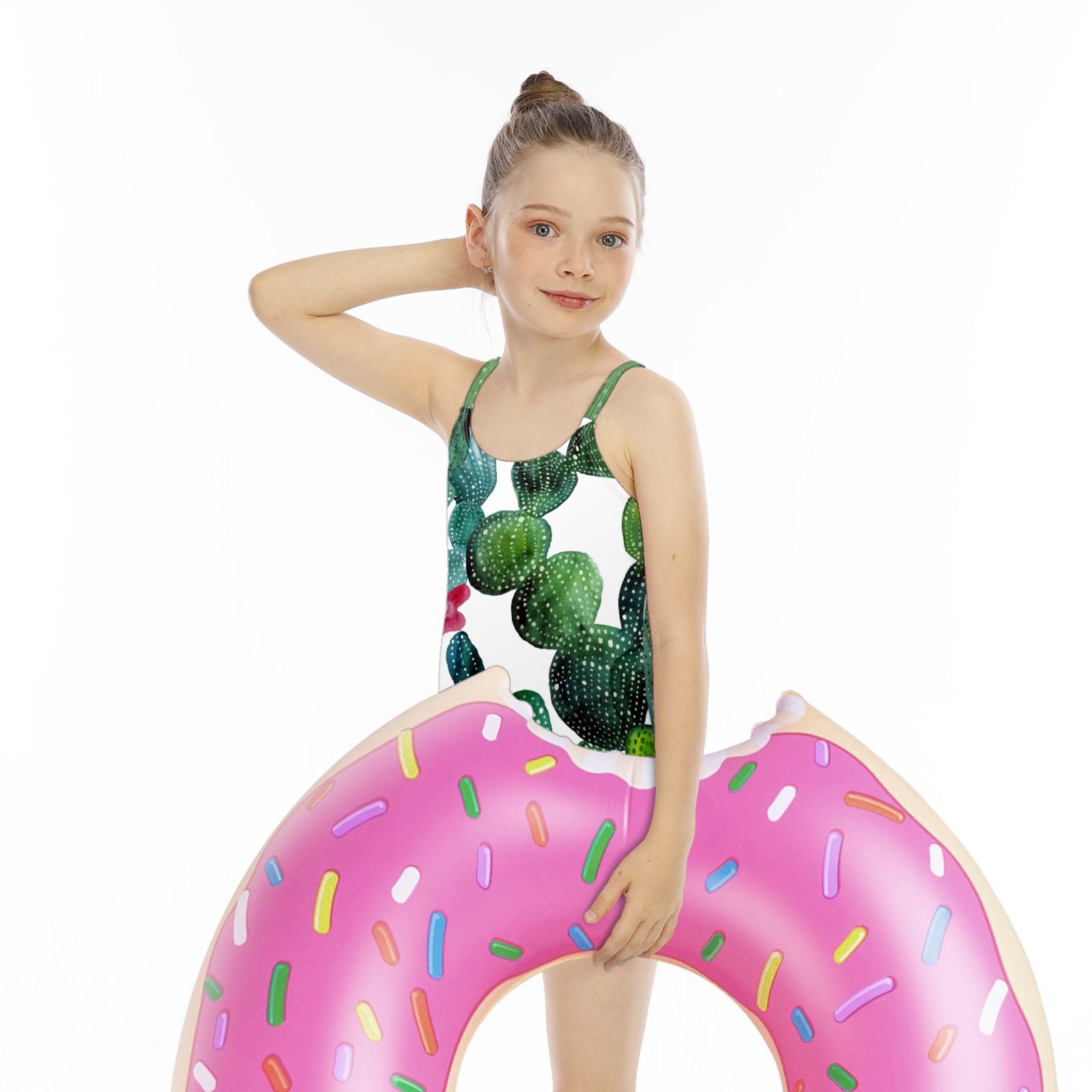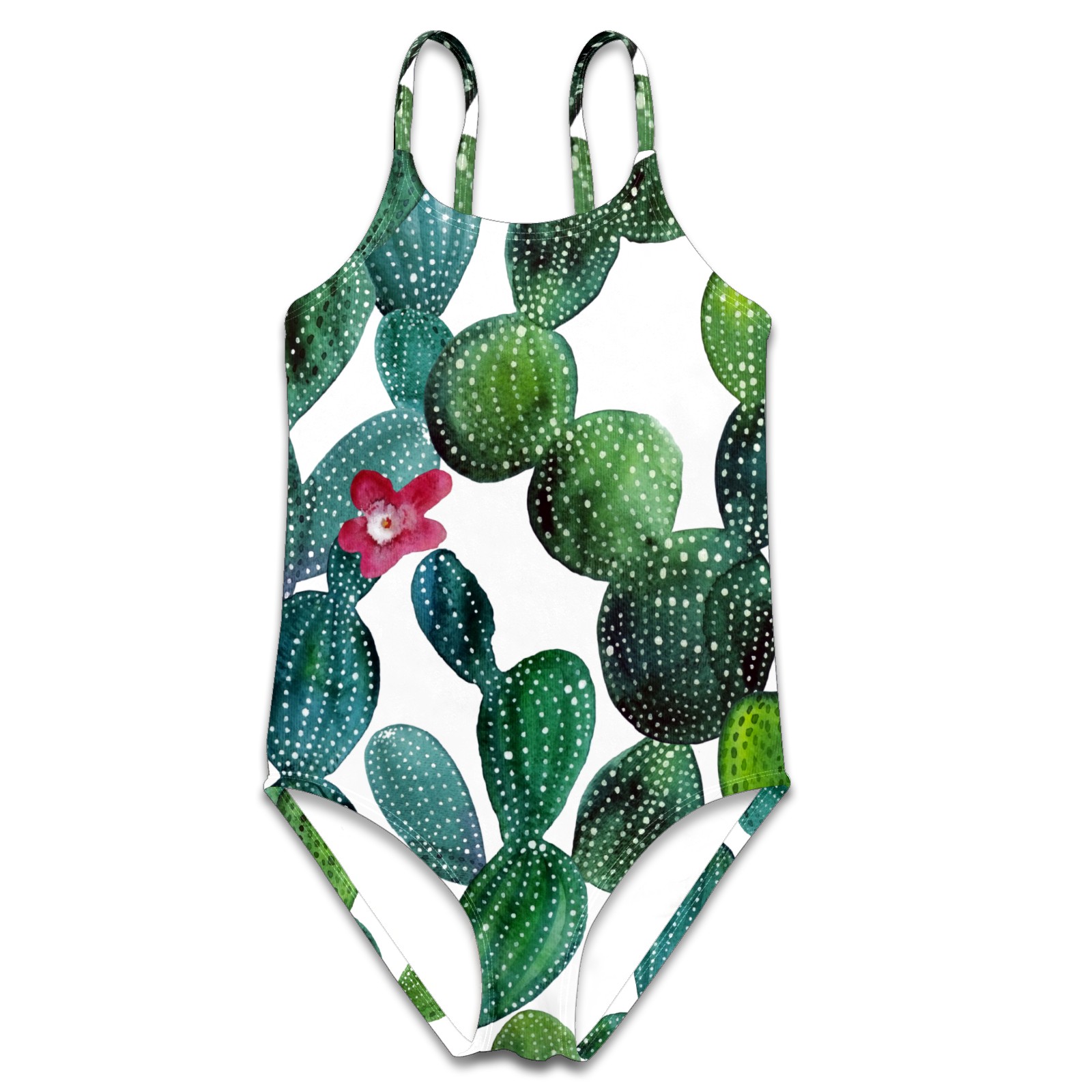 Girls Swimsuit One Piece Summer Cactus Plant Watercolor Summer Swimwear Beach Sport Size 5-6 Years