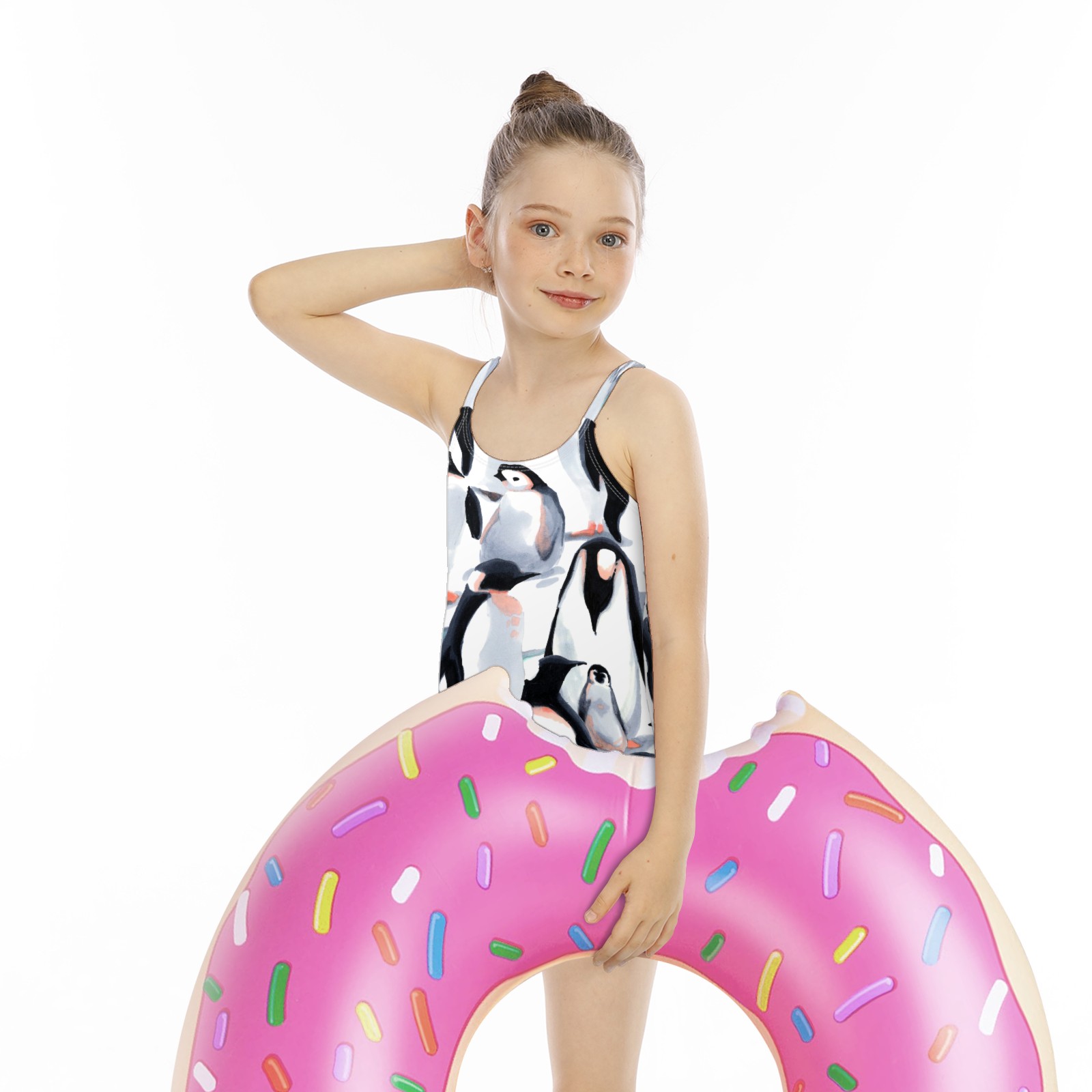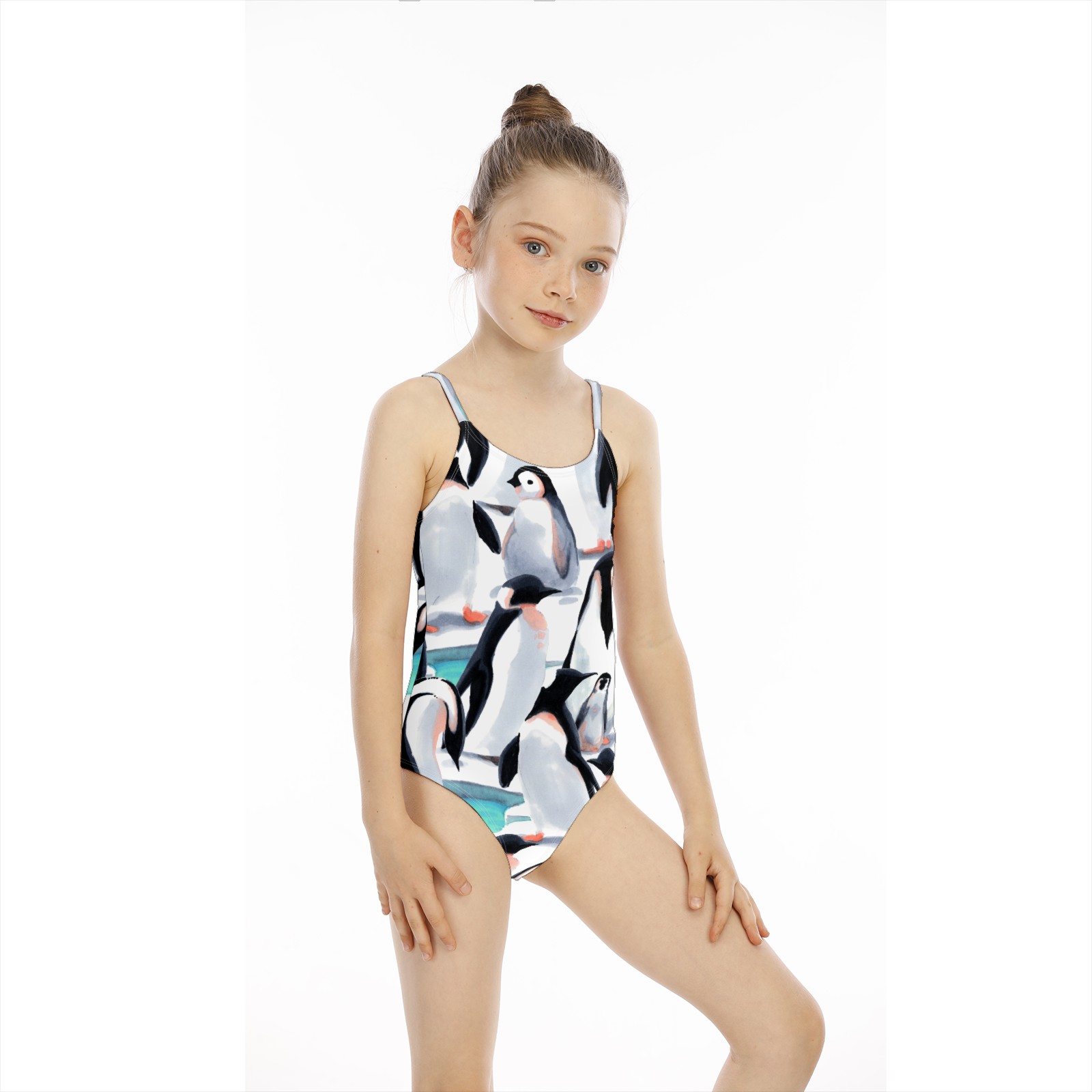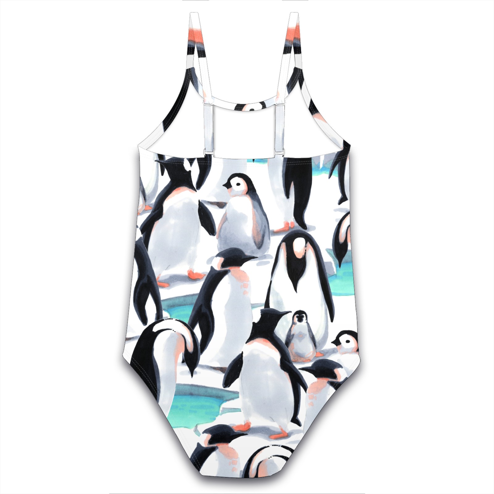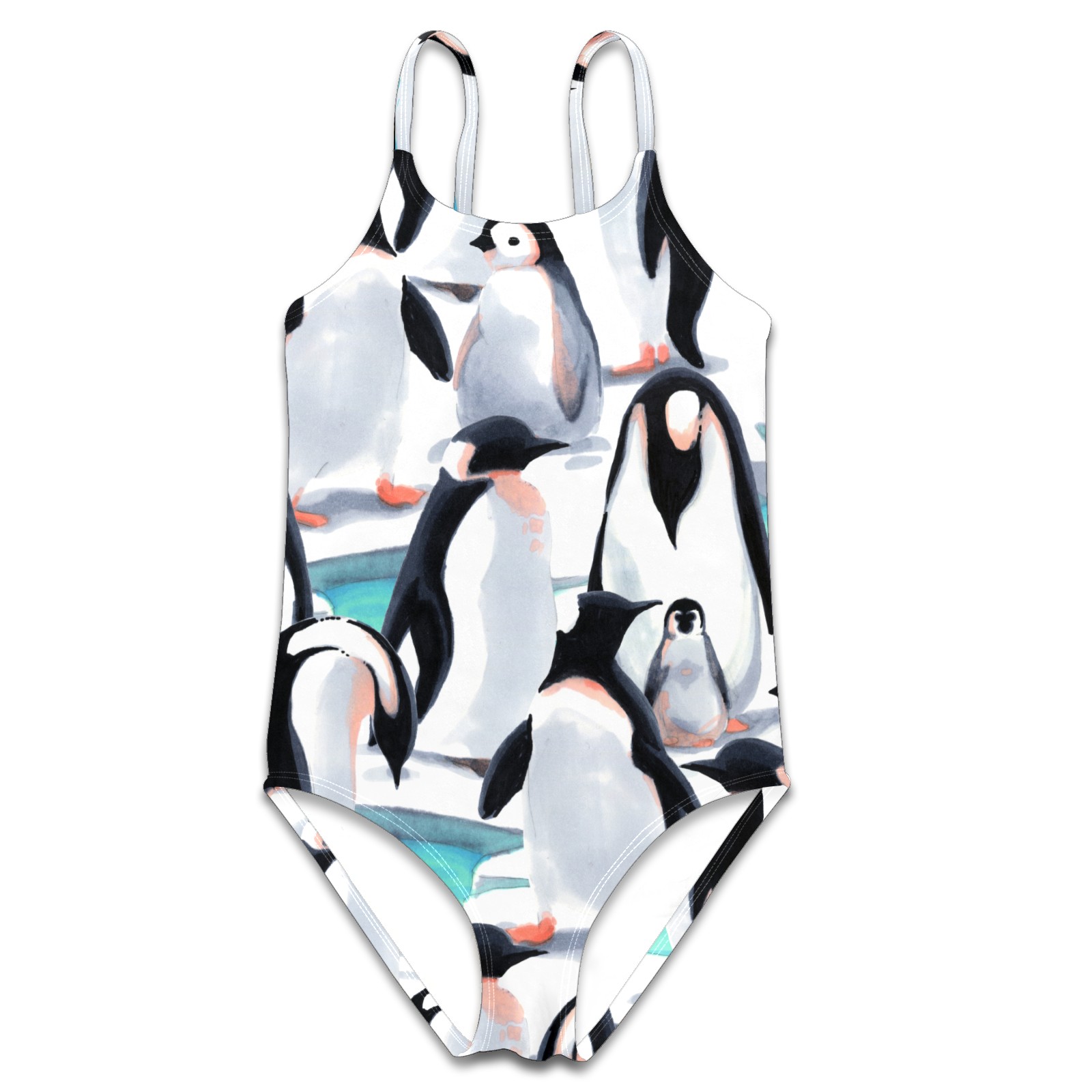 Girls Swimsuit One Piece Penguin Cute Animal Watercolor Summer Swimwear Beach Sport Size 5-6 Years