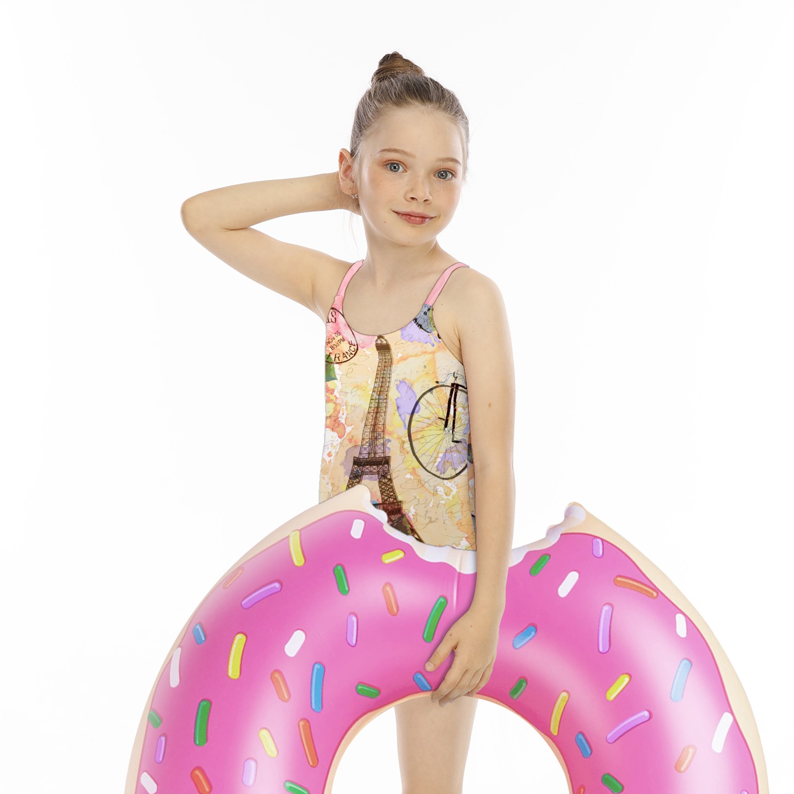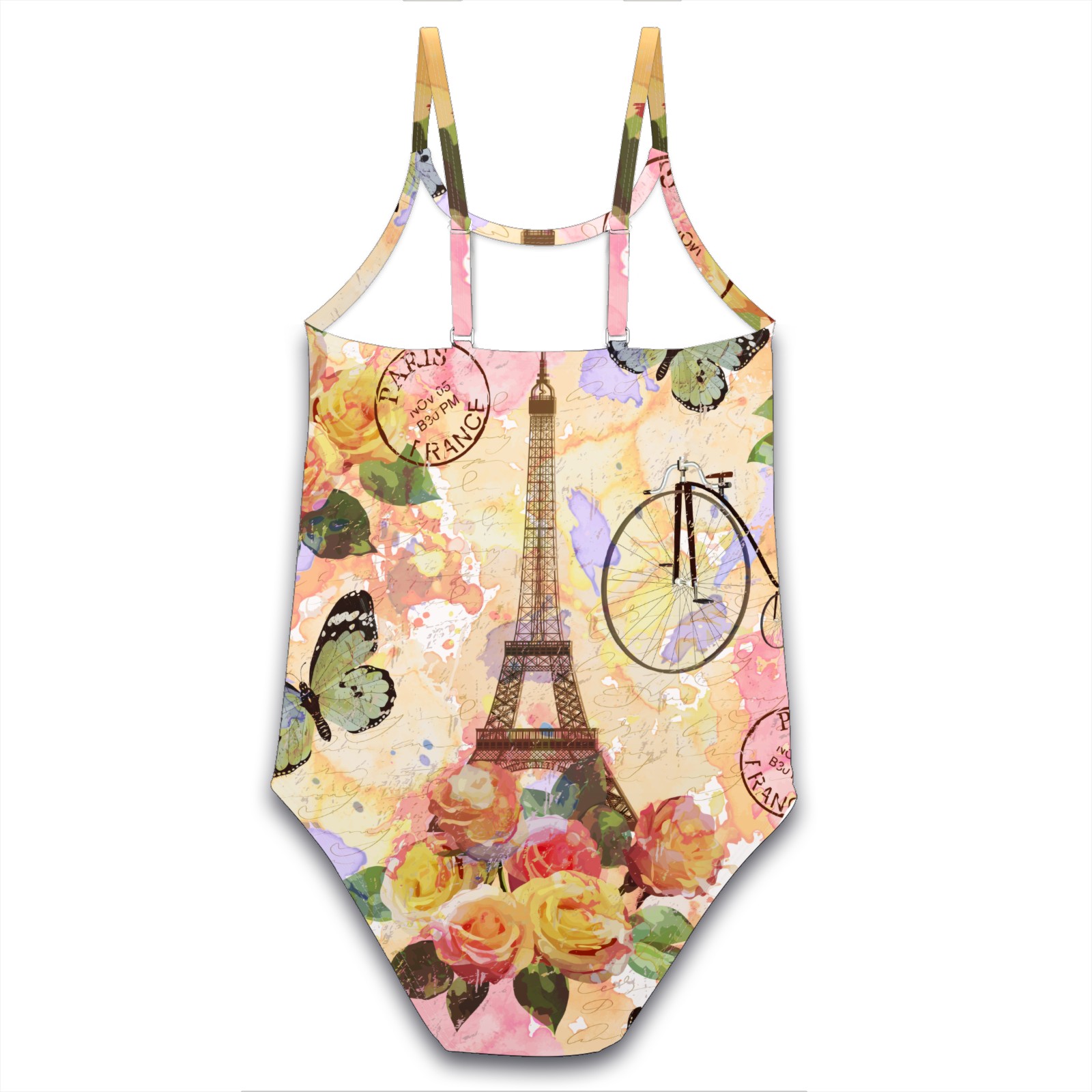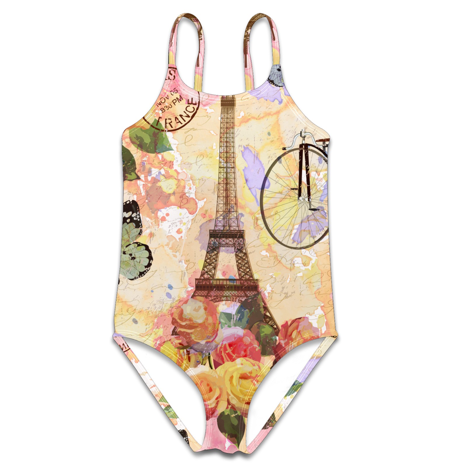 Girls Swimsuit One Piece Butterfly Flower Eiffel Tower Vintage Summer Swimwear Beach Sport Size 5-6 Years