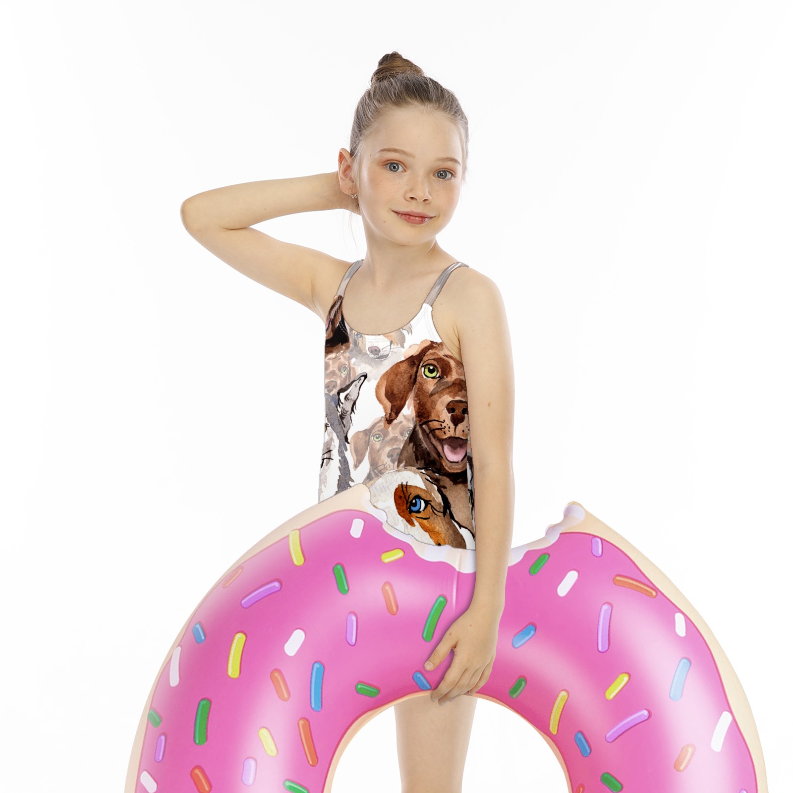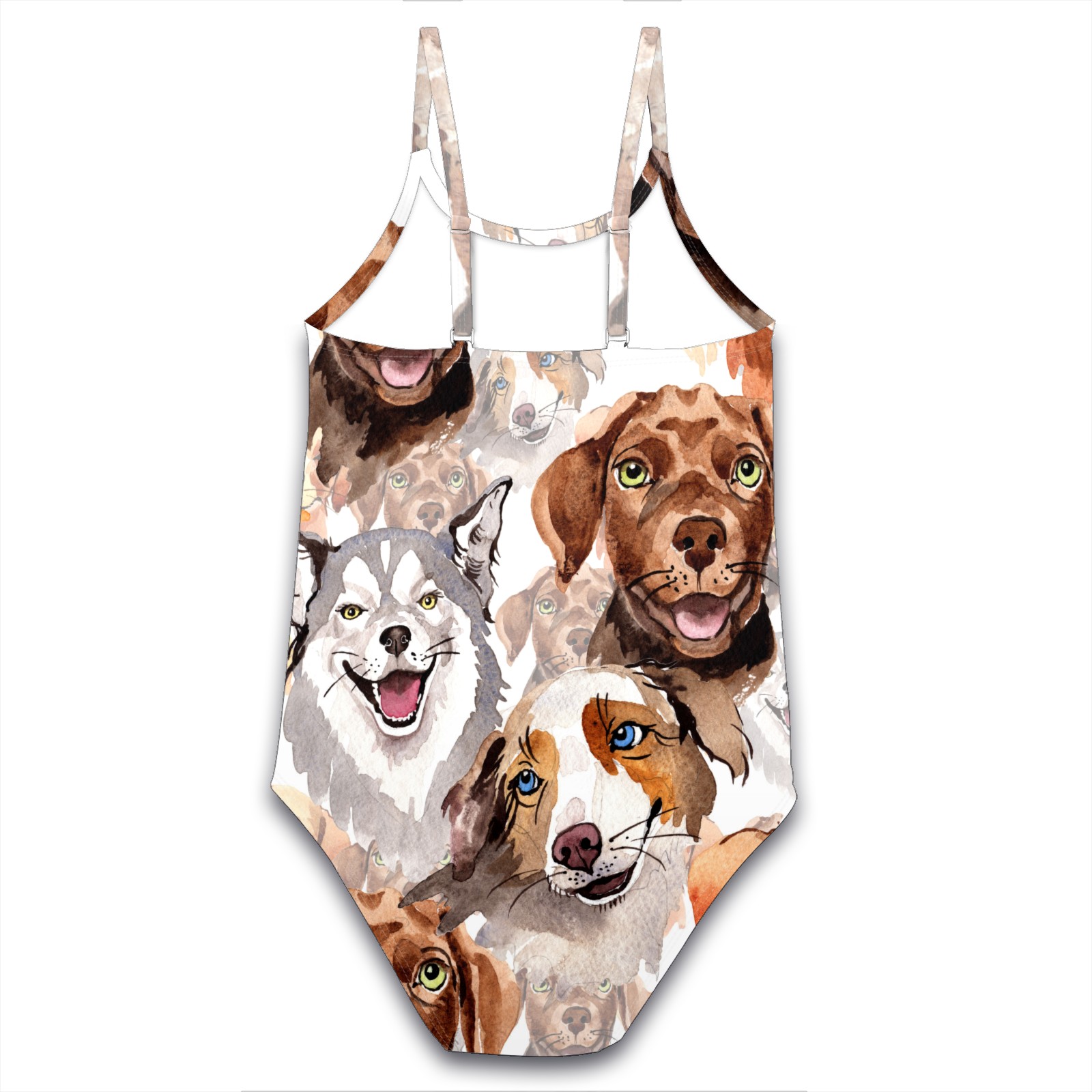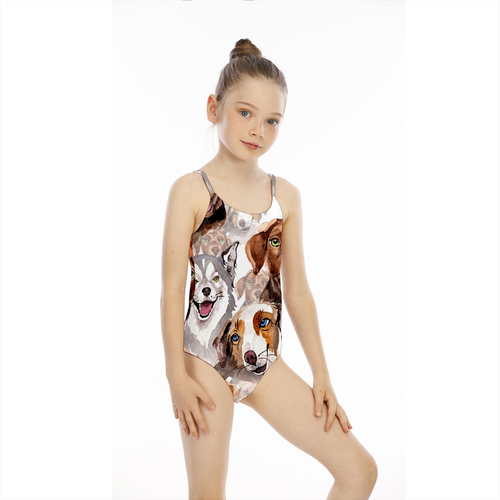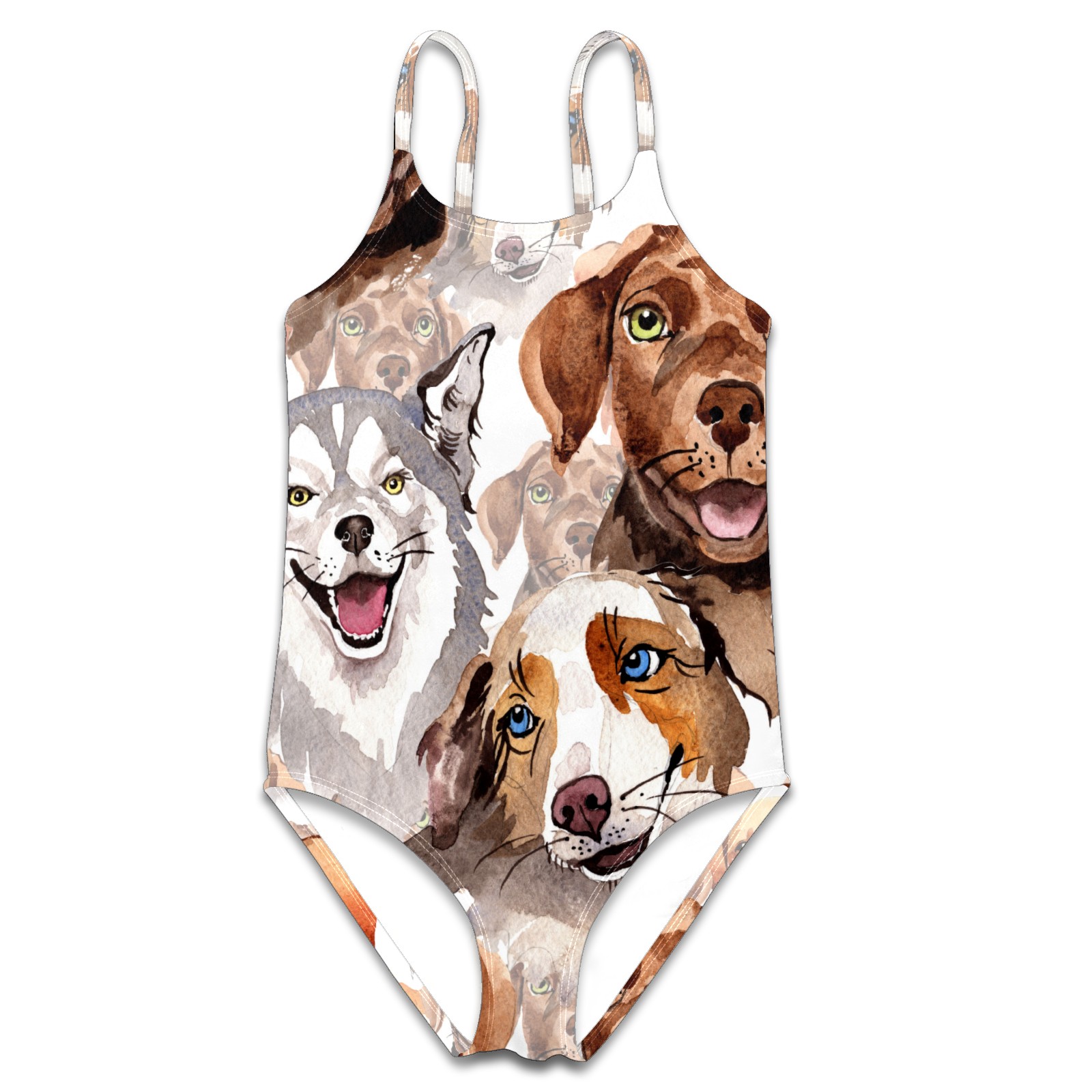 Girls Swimsuit One Piece Cute Puppy Dog Alaska Labrador Summer Swimwear Beach Sport Size 5-6 Years