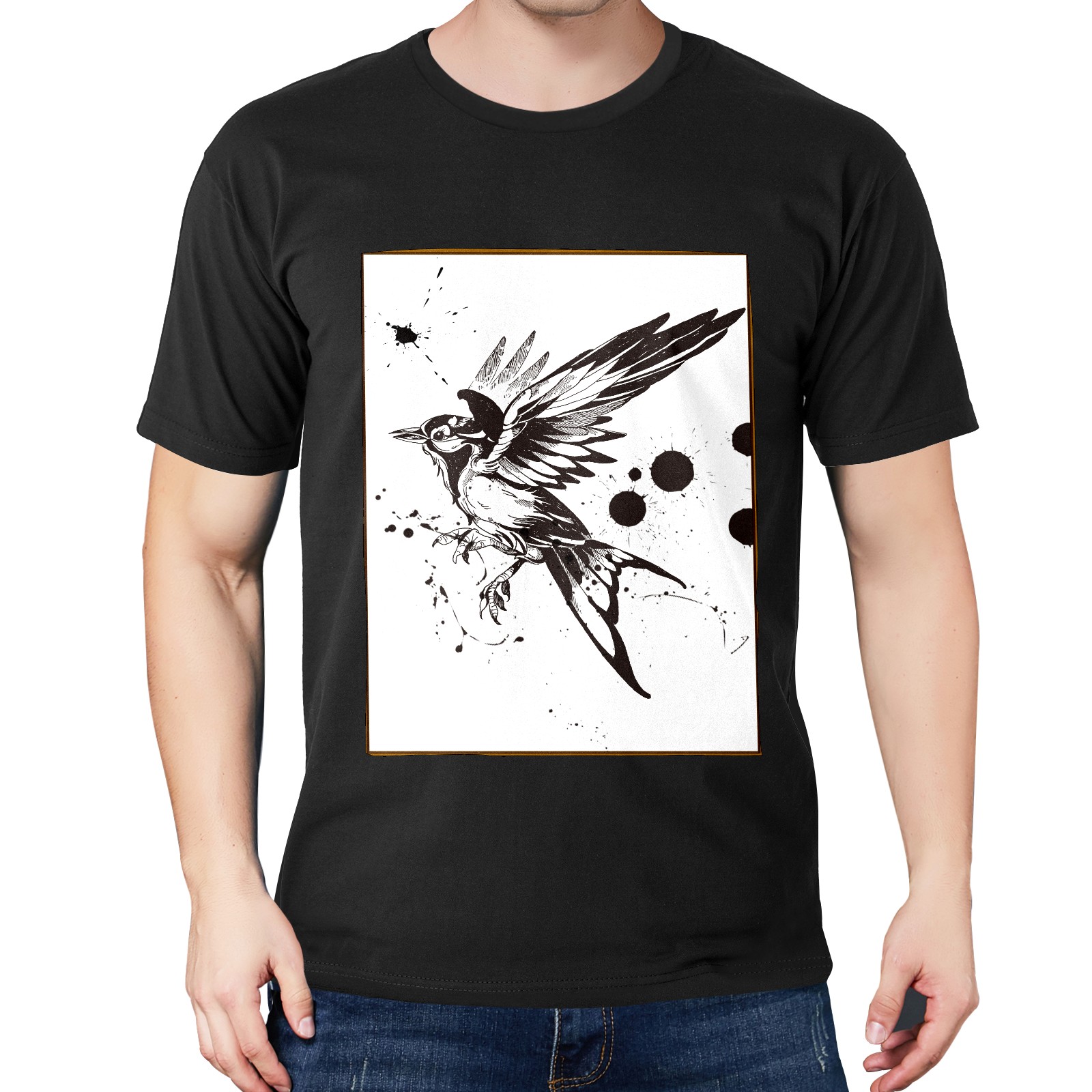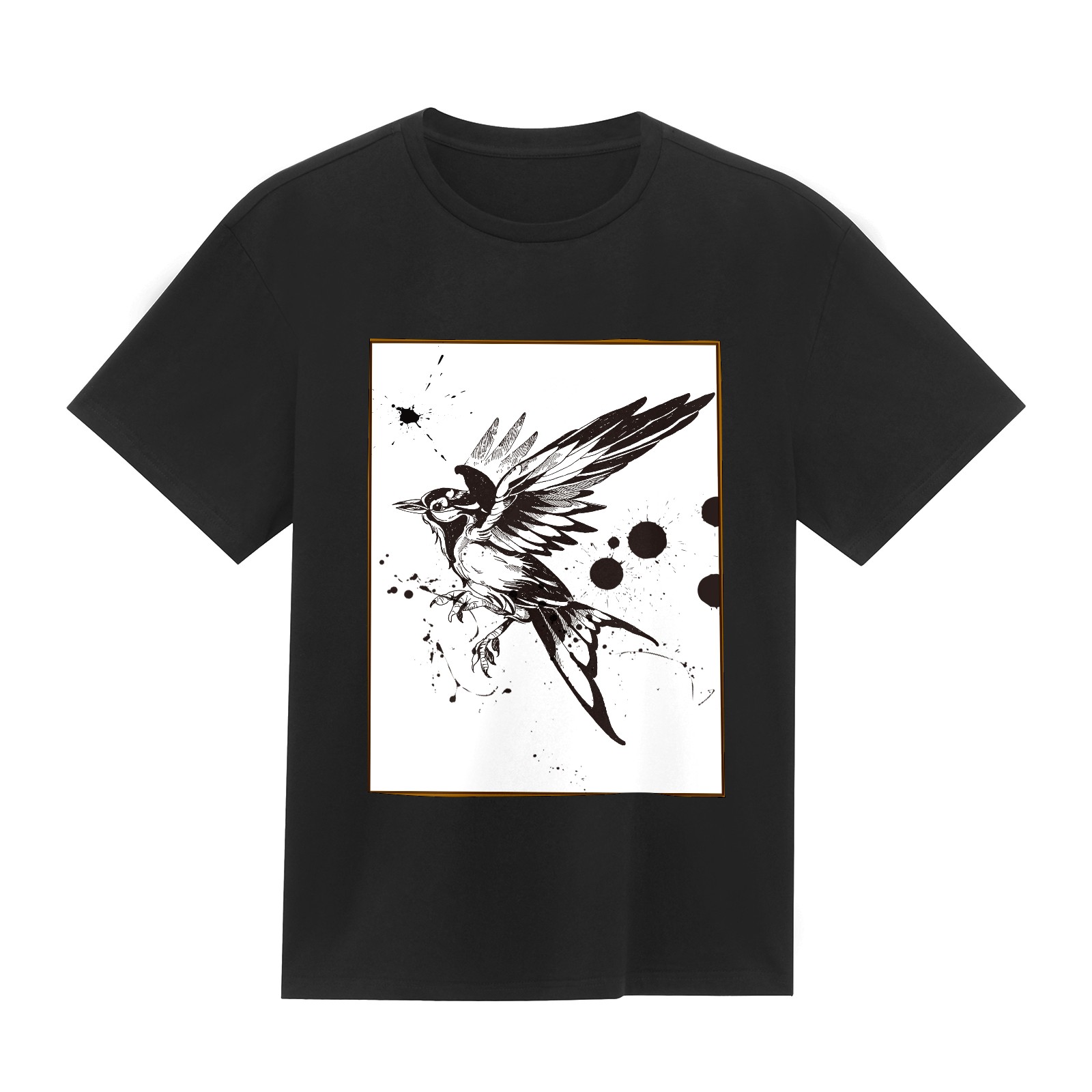 Men's Cotton T-Shirt Ink Fly Bird Short Sleeve Black Adult Unisex Tee T-Shirts S