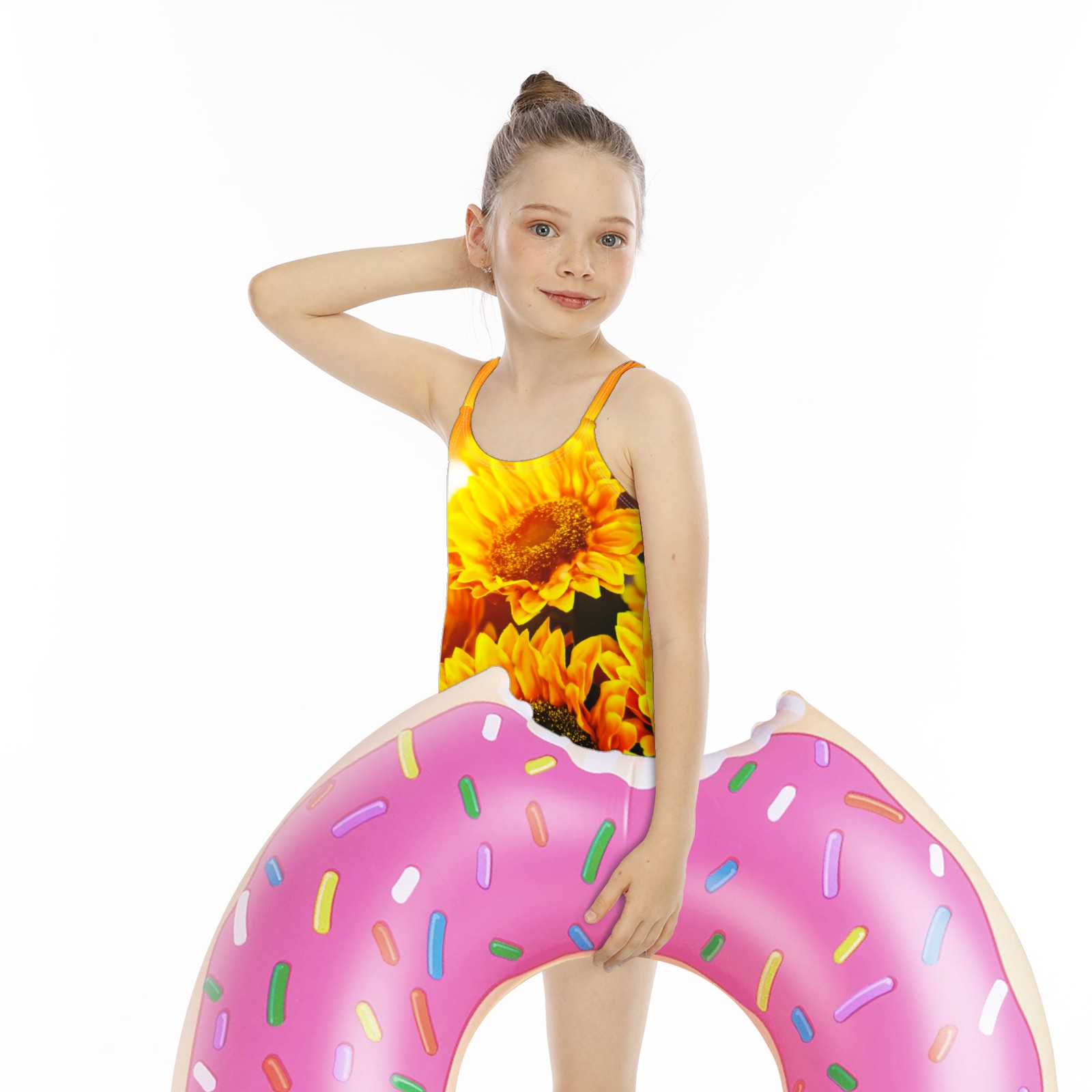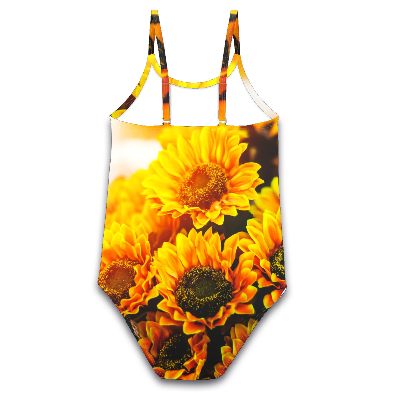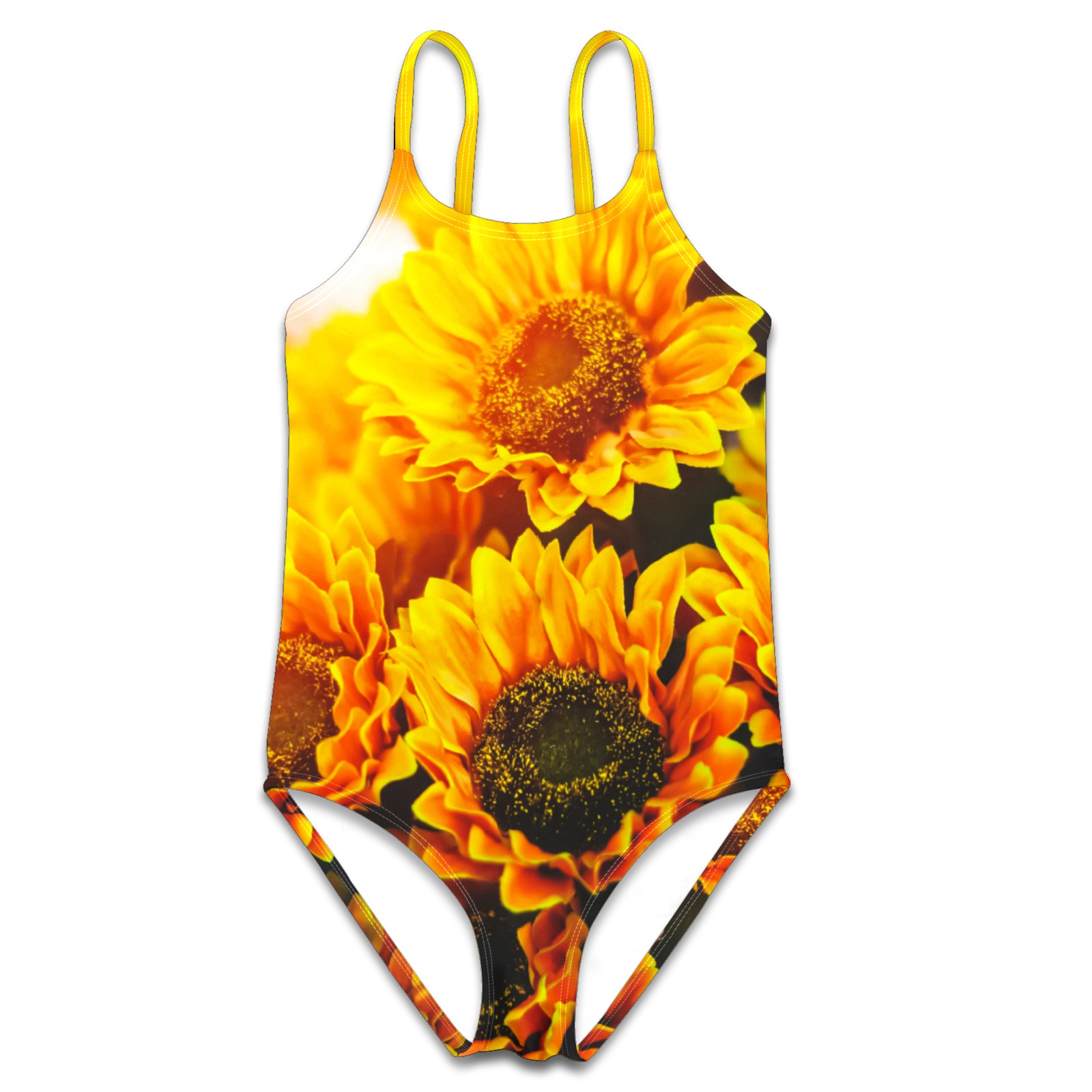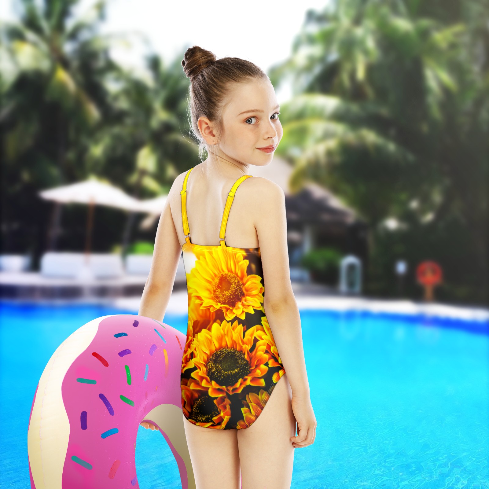 Girls Swimsuit One Piece Sunflower Blooming Beautiful Sun Summer Swimwear Beach Sport Size 5-6 Years