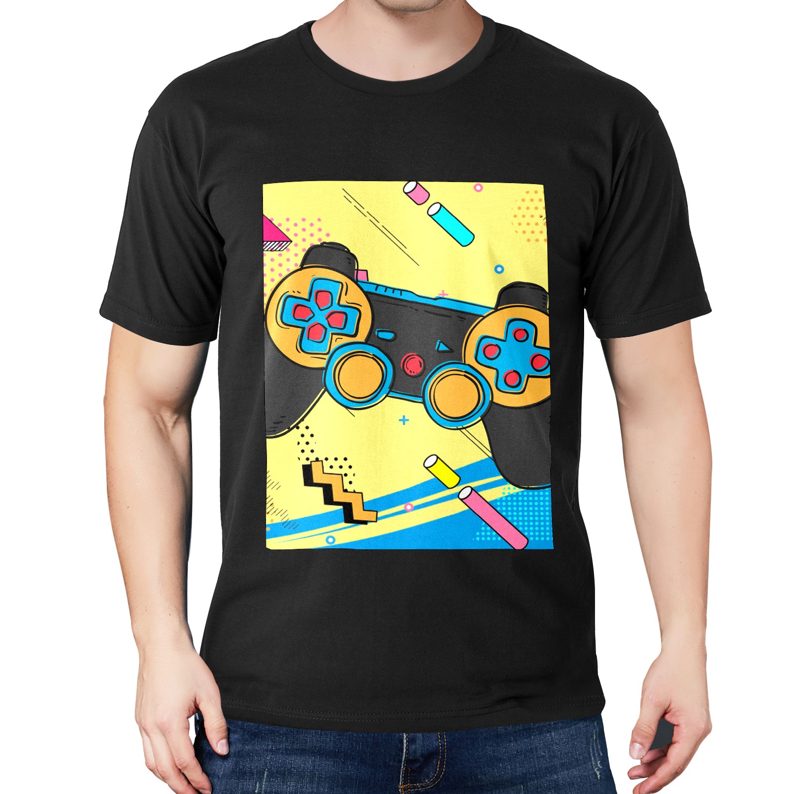 Men's Cotton T-Shirt Game Video Gaming Controller Short Sleeve Black Adult Unisex Tee T-Shirts S