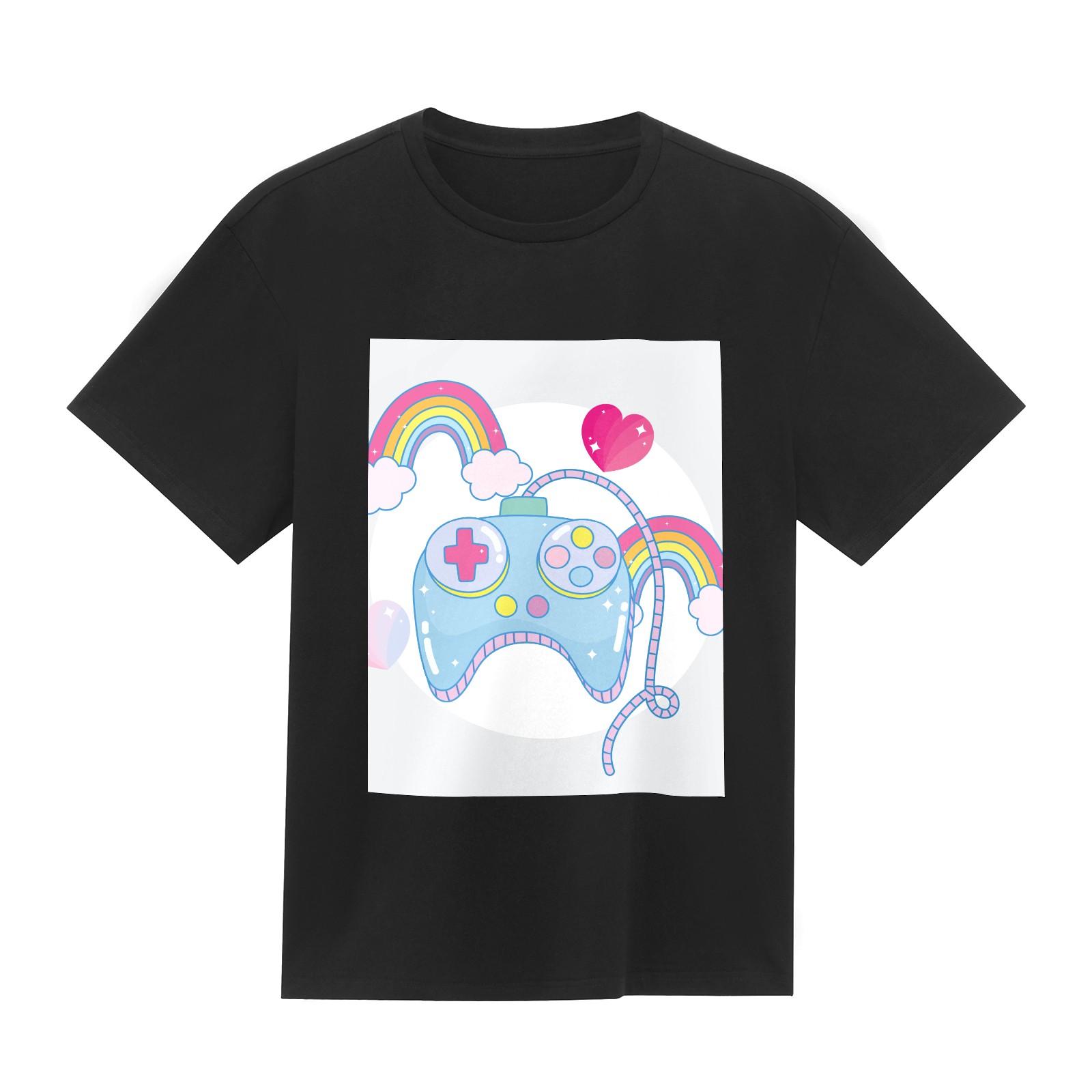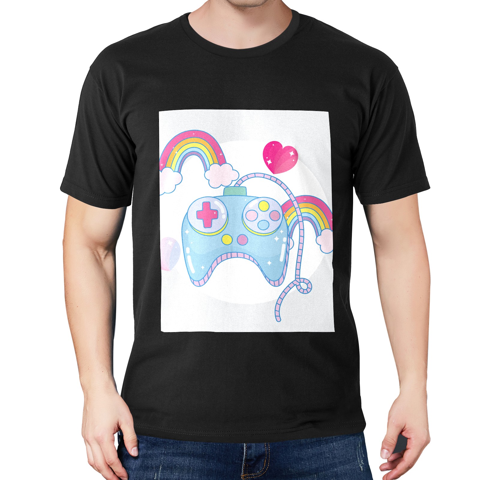 Men's Cotton T-Shirt Rainbow Gamer Controller Cloud Heart Short Sleeve Black Adult Unisex Tee T-Shirts S