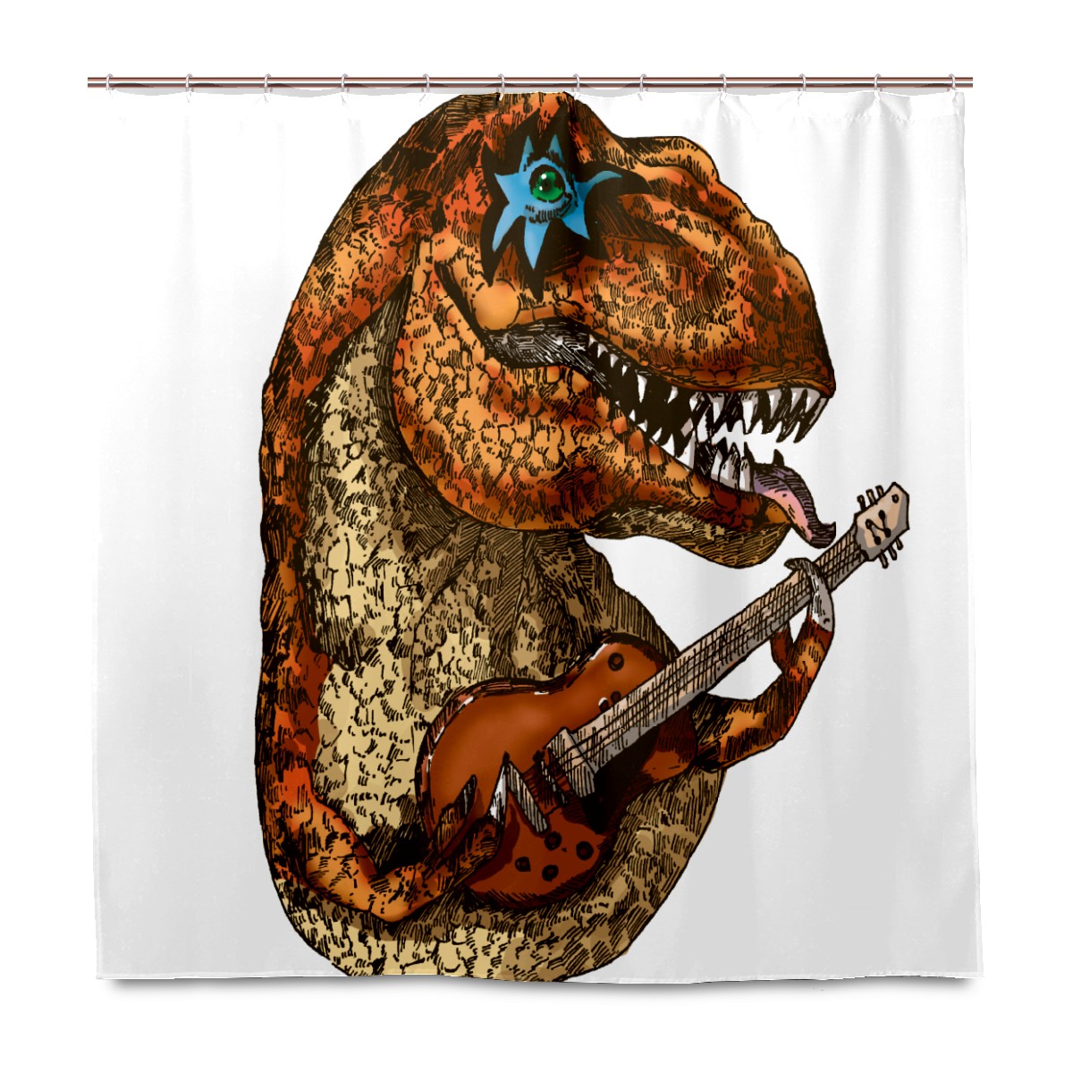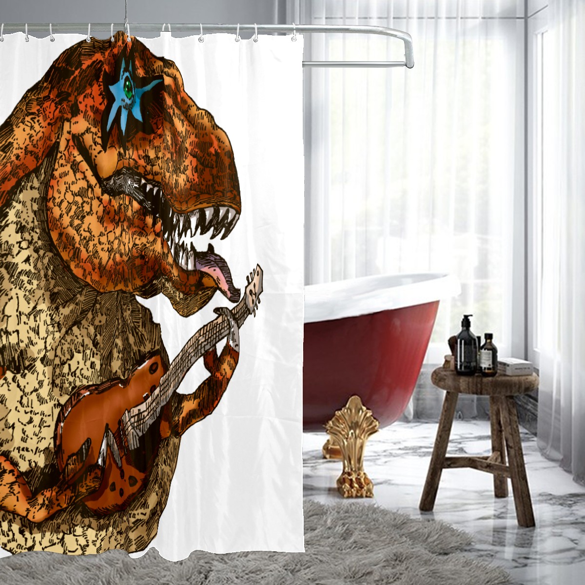 Bathroom Shower Curtain with 12 Hooks Dinosaur Playing Guitar Decorative Bath Curtain Durable Waterproof Fabric Bathroom Curtain 60x72 inch