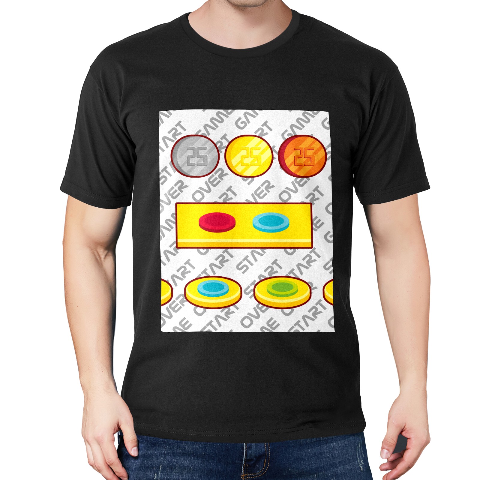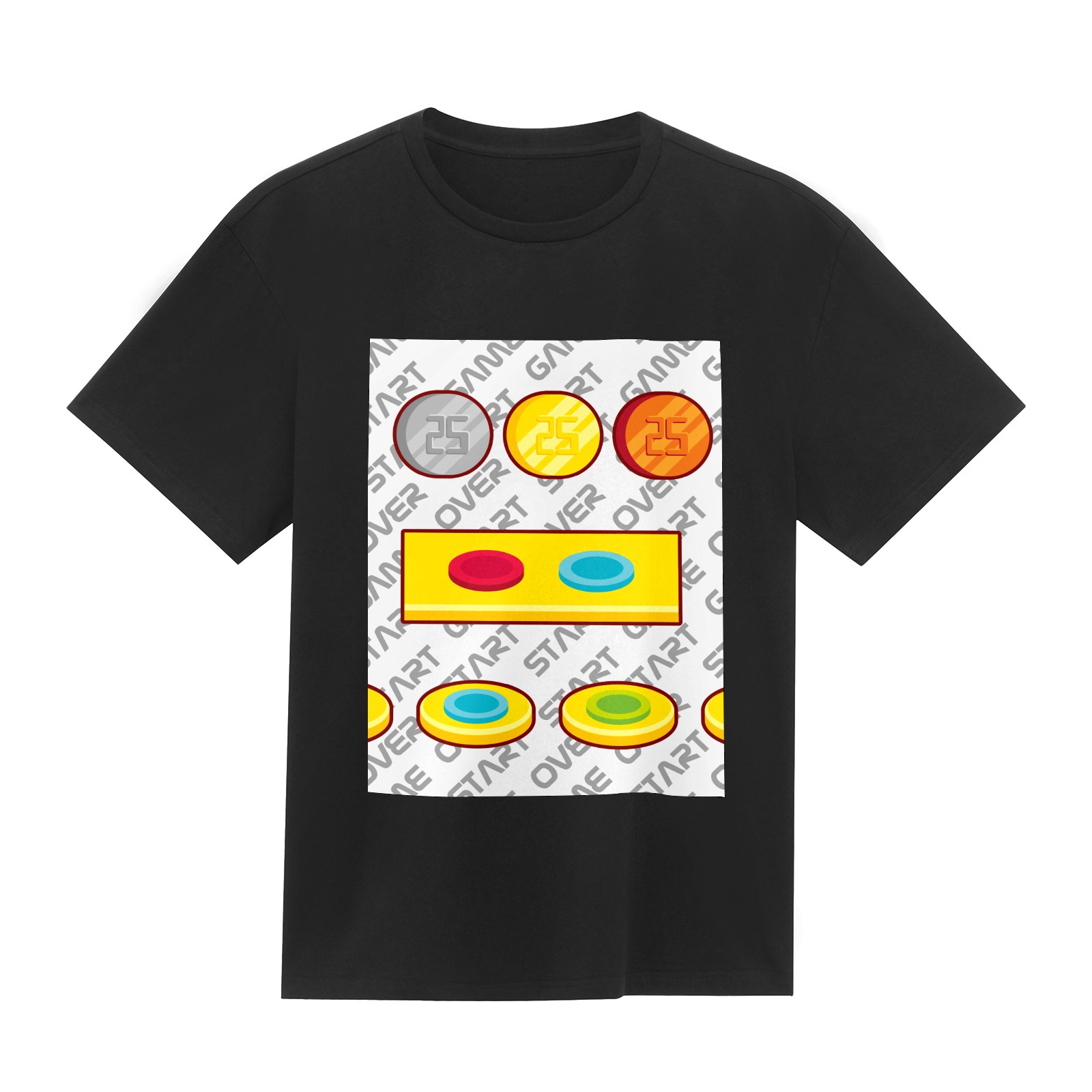 Men's Cotton T-Shirt Game Arcade Buttons Play Short Sleeve Black Adult Unisex Tee T-Shirts S