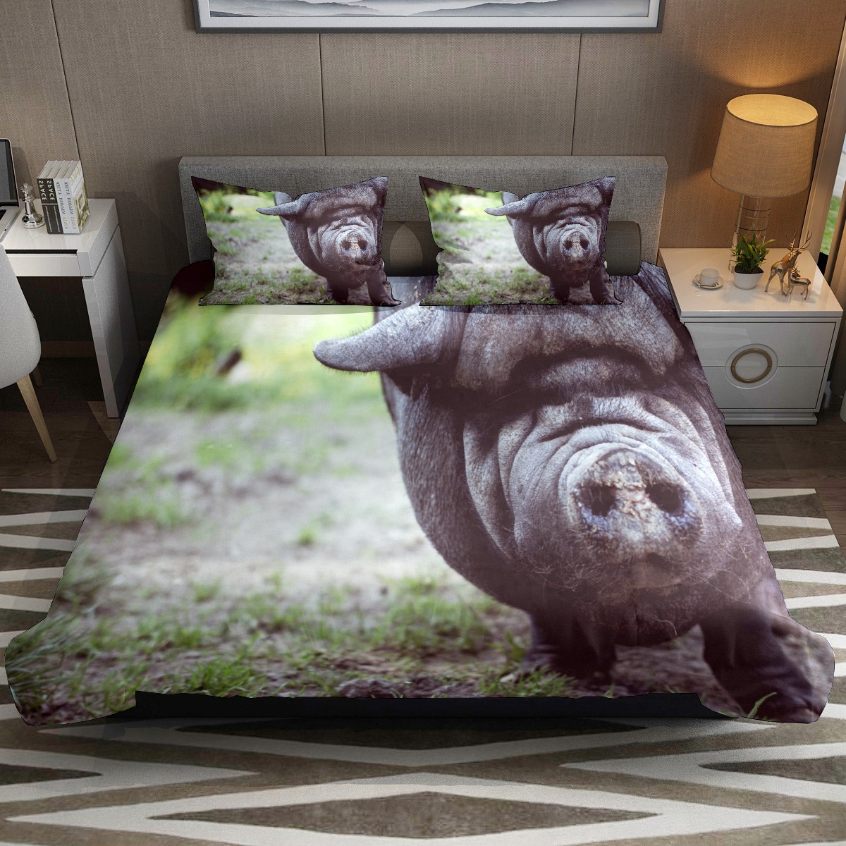 Duvet Cover Twin Pig Animal Swine Piggy Funny 3pcs Bedding Duvet Cover Set Modern Quilt Cover Microfiber Comforter Cover with Button Closure with 2 Pillow Cases 1 Duvet Cover
