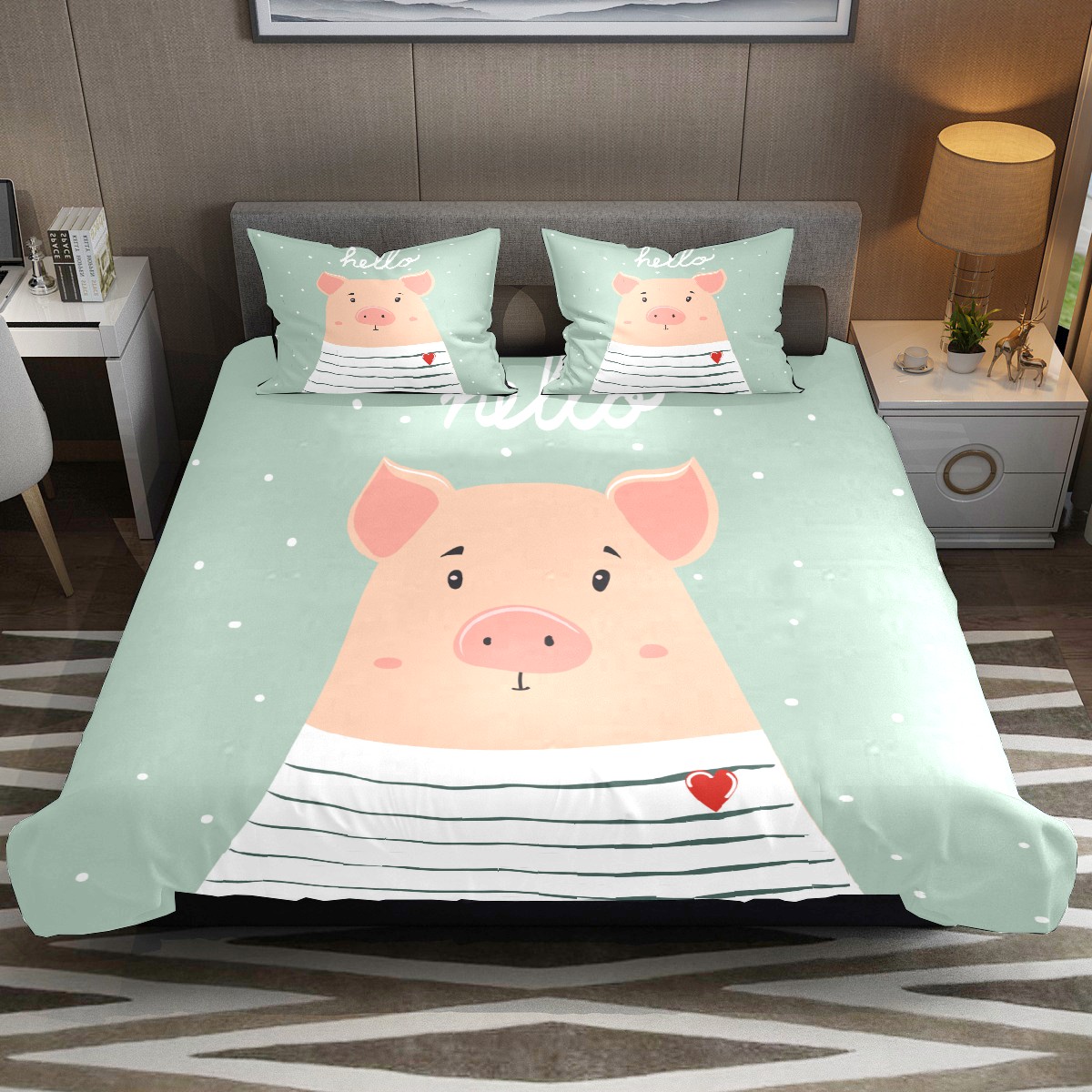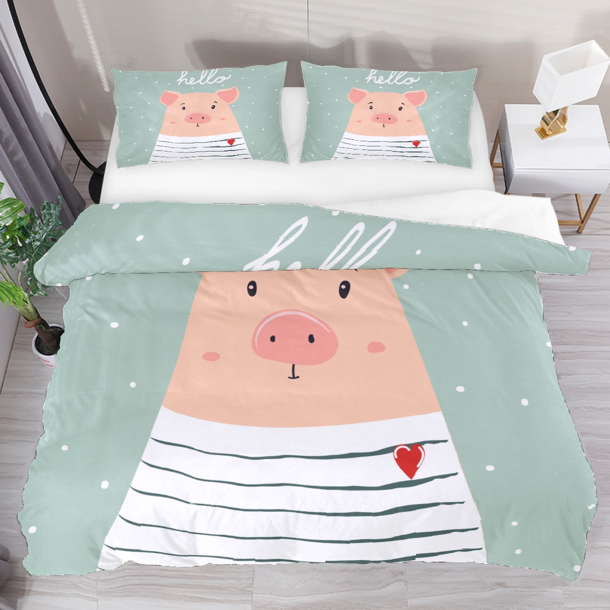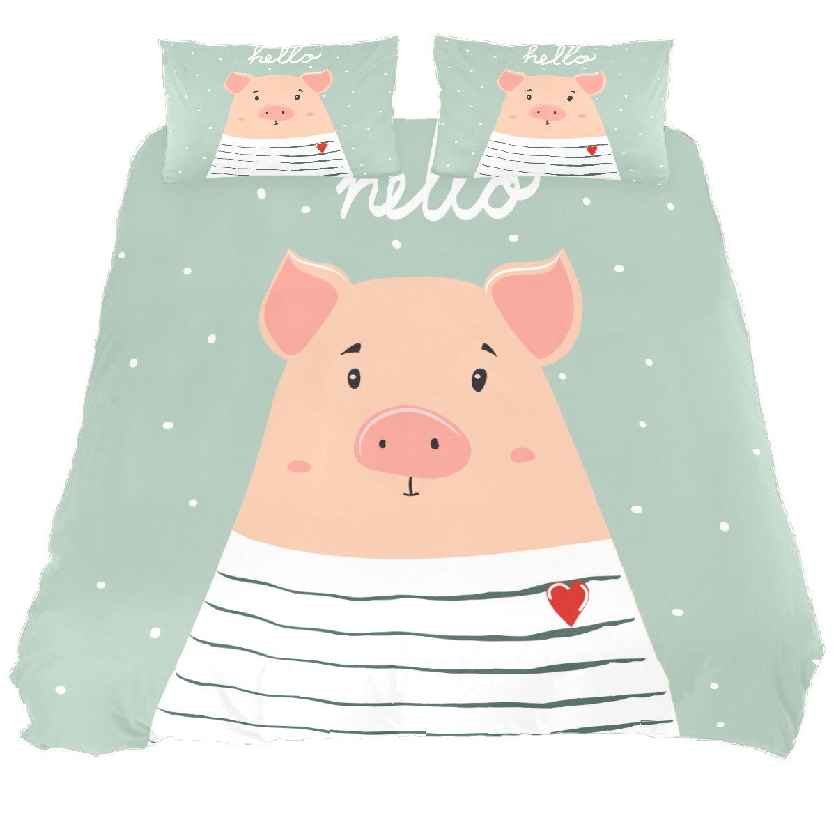 Duvet Cover Twin Hello Animal Cute Pig 3pcs Bedding Duvet Cover Set Modern Quilt Cover Microfiber Comforter Cover with Button Closure with 2 Pillow Cases 1 Duvet Cover