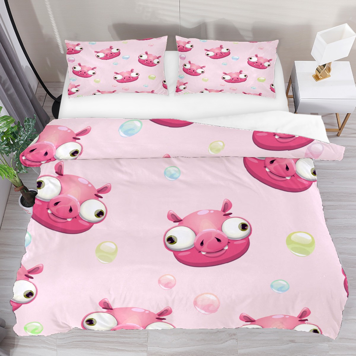 Duvet Cover Twin Funny Animal Pink Pig 3pcs Bedding Duvet Cover Set Modern Quilt Cover Microfiber Comforter Cover with Button Closure with 2 Pillow Cases 1 Duvet Cover