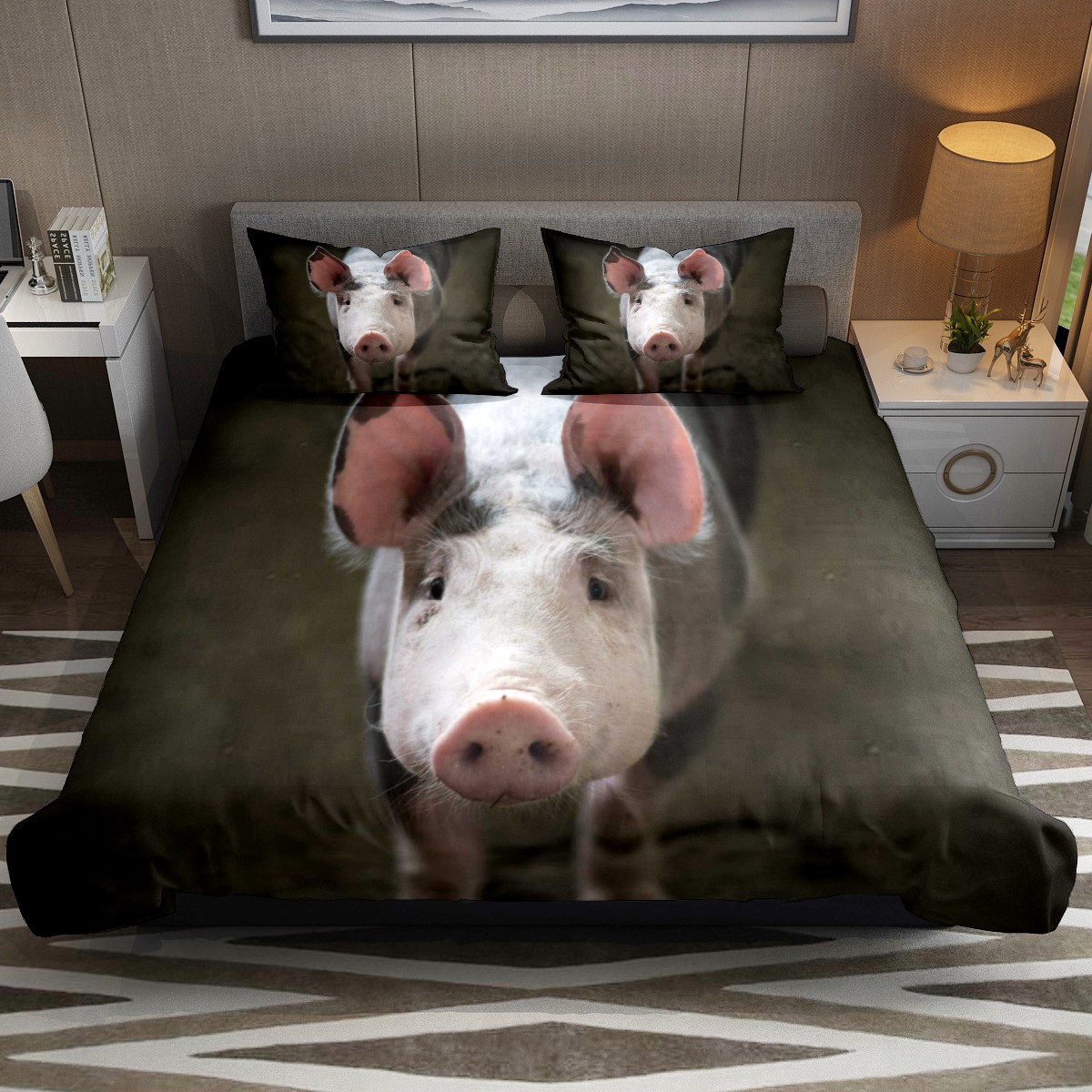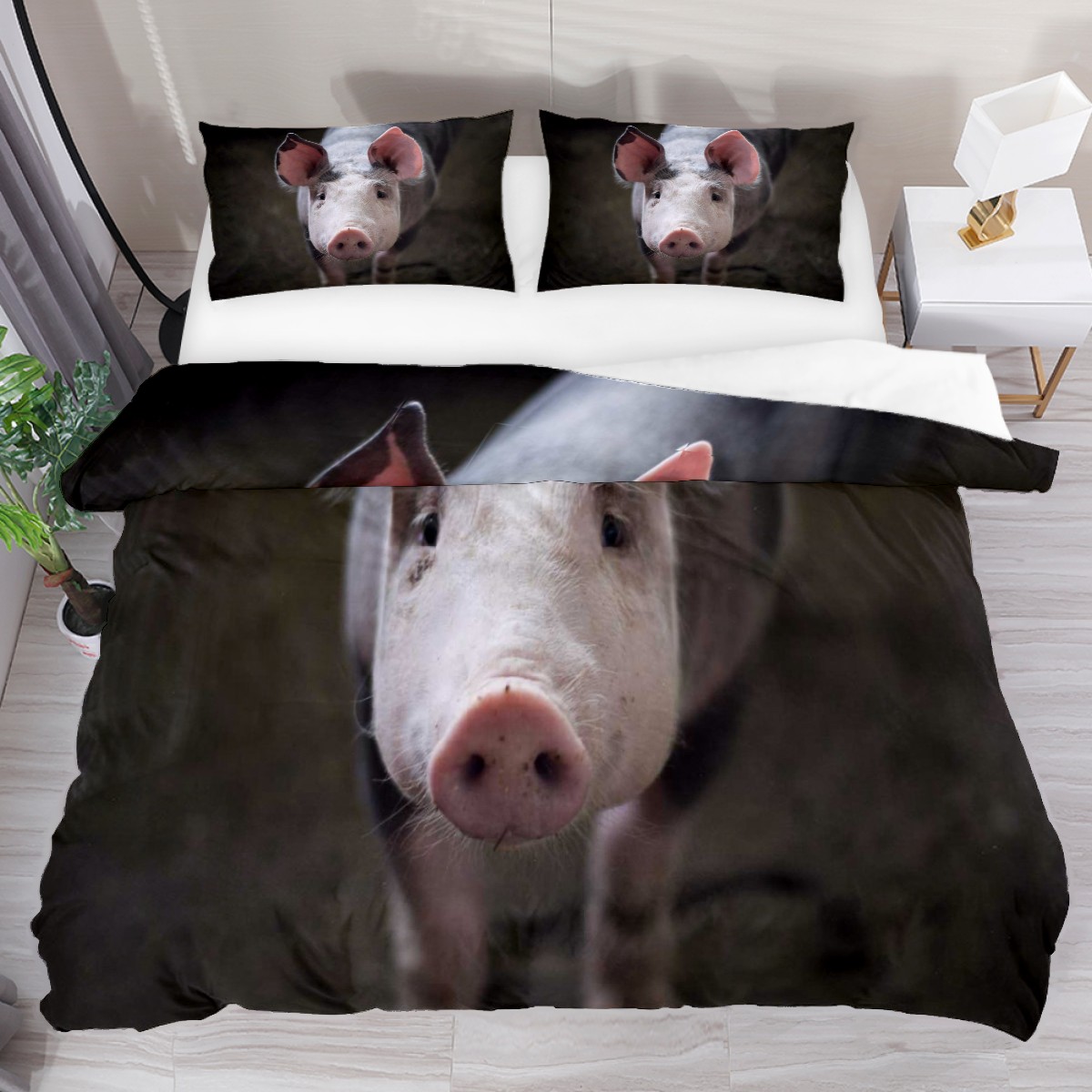 Duvet Cover Twin Funny Animal Pig 3pcs Bedding Duvet Cover Set Modern Quilt Cover Microfiber Comforter Cover with Button Closure with 2 Pillow Cases 1 Duvet Cover