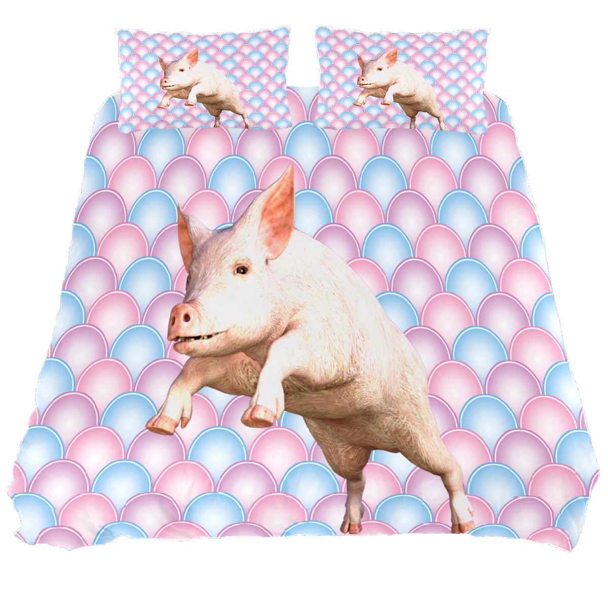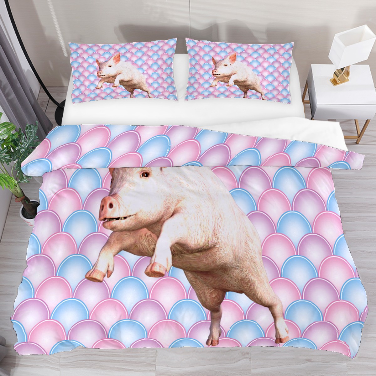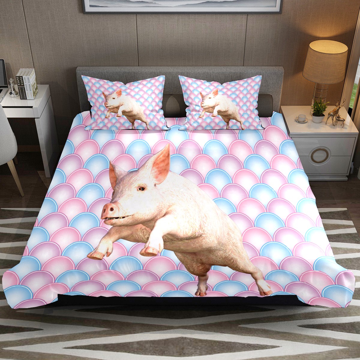 Duvet Cover Twin Fish Scale Pattern Funny Pig 3pcs Bedding Duvet Cover Set Modern Quilt Cover Microfiber Comforter Cover with Button Closure with 2 Pillow Cases 1 Duvet Cover