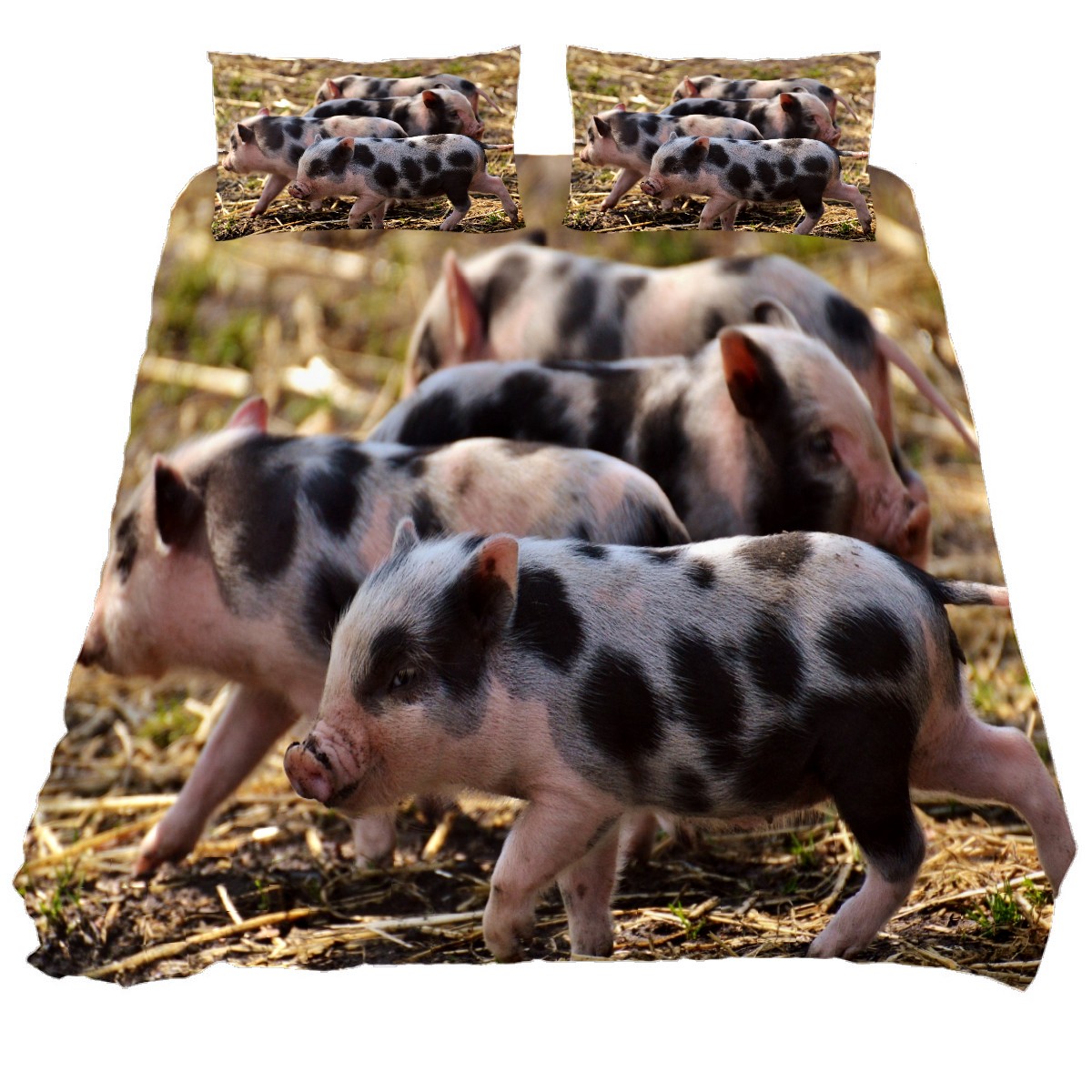 Duvet Cover Twin Cute Piglet Animal Pig Funny 3pcs Bedding Duvet Cover Set Modern Quilt Cover Microfiber Comforter Cover with Button Closure with 2 Pillow Cases 1 Duvet Cover