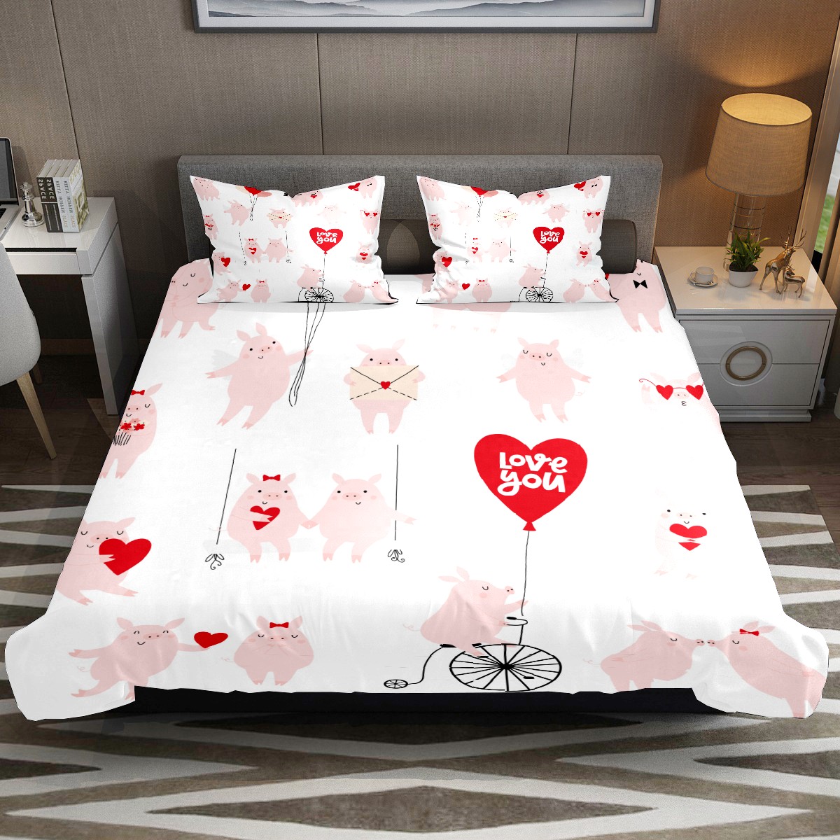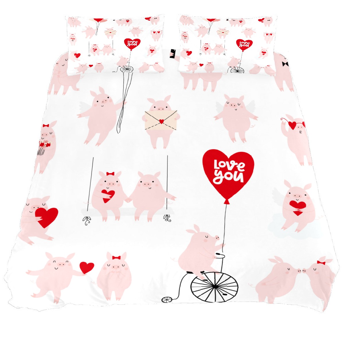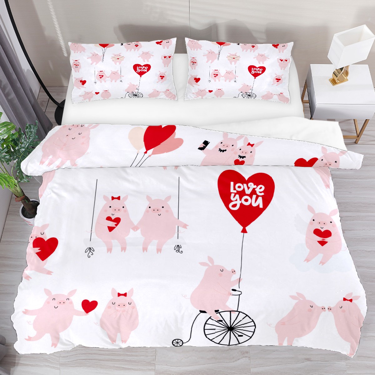 Duvet Cover Twin Cute Pig Love You 3pcs Bedding Duvet Cover Set Modern Quilt Cover Microfiber Comforter Cover with Button Closure with 2 Pillow Cases 1 Duvet Cover