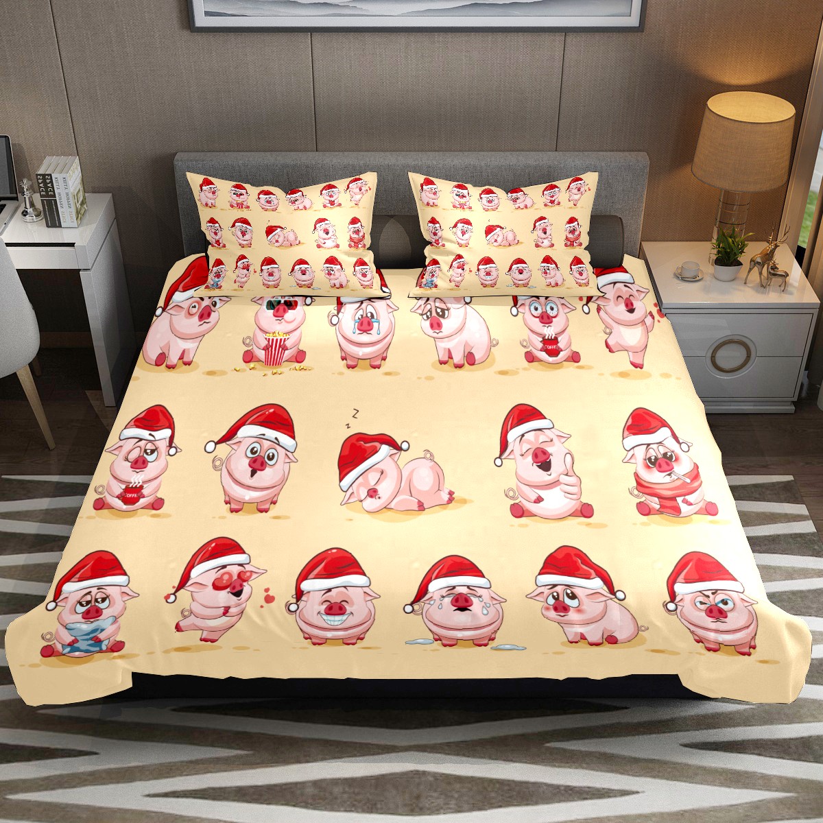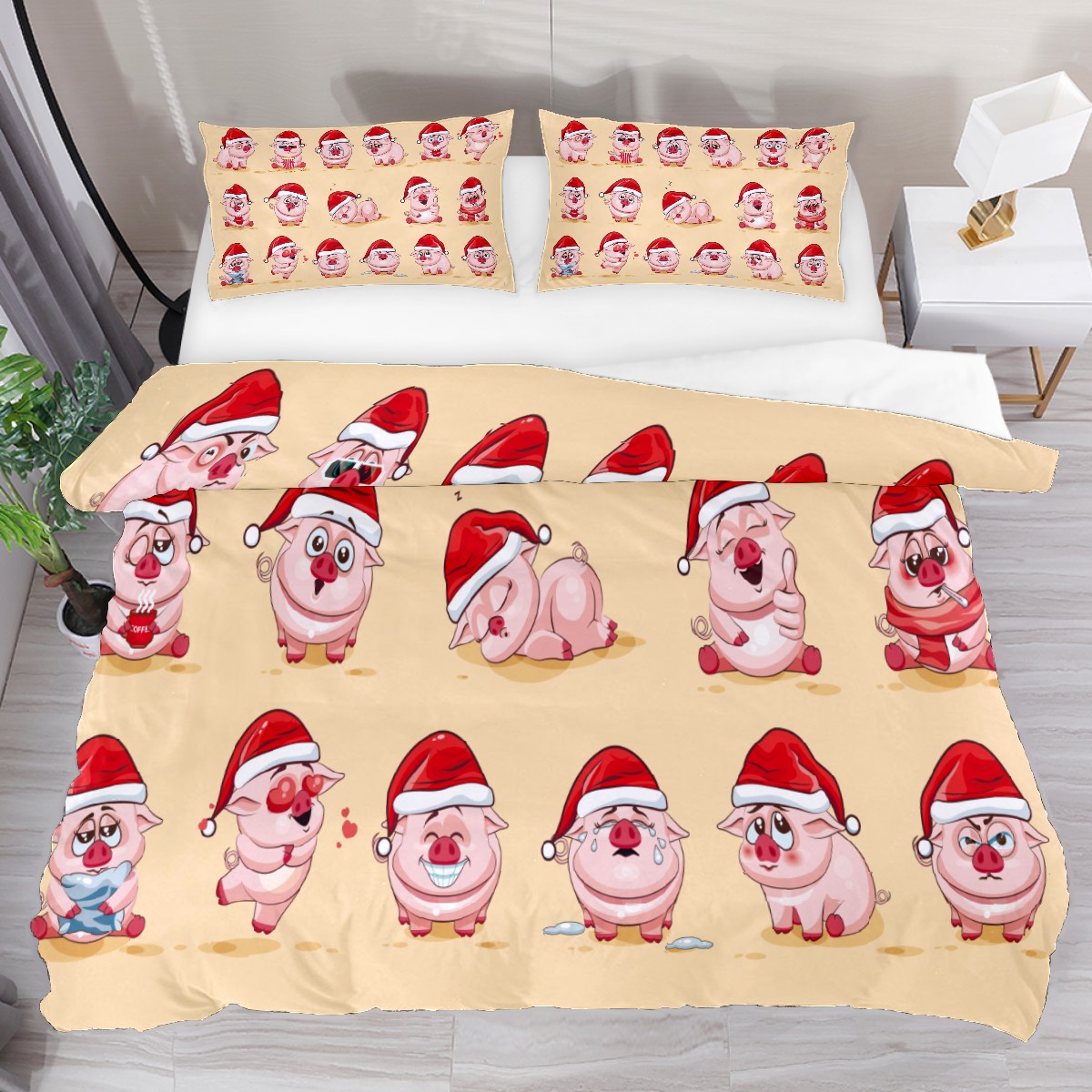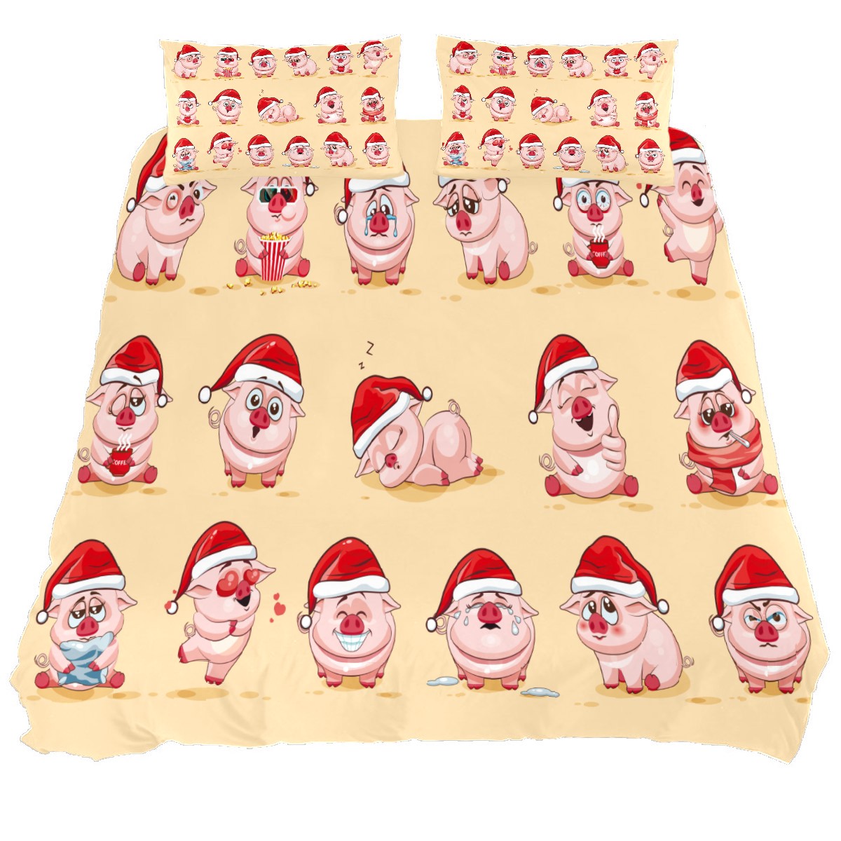 Duvet Cover Twin Cute Pig With Christmas Hat 3pcs Bedding Duvet Cover Set Modern Quilt Cover Microfiber Comforter Cover with Button Closure with 2 Pillow Cases 1 Duvet Cover