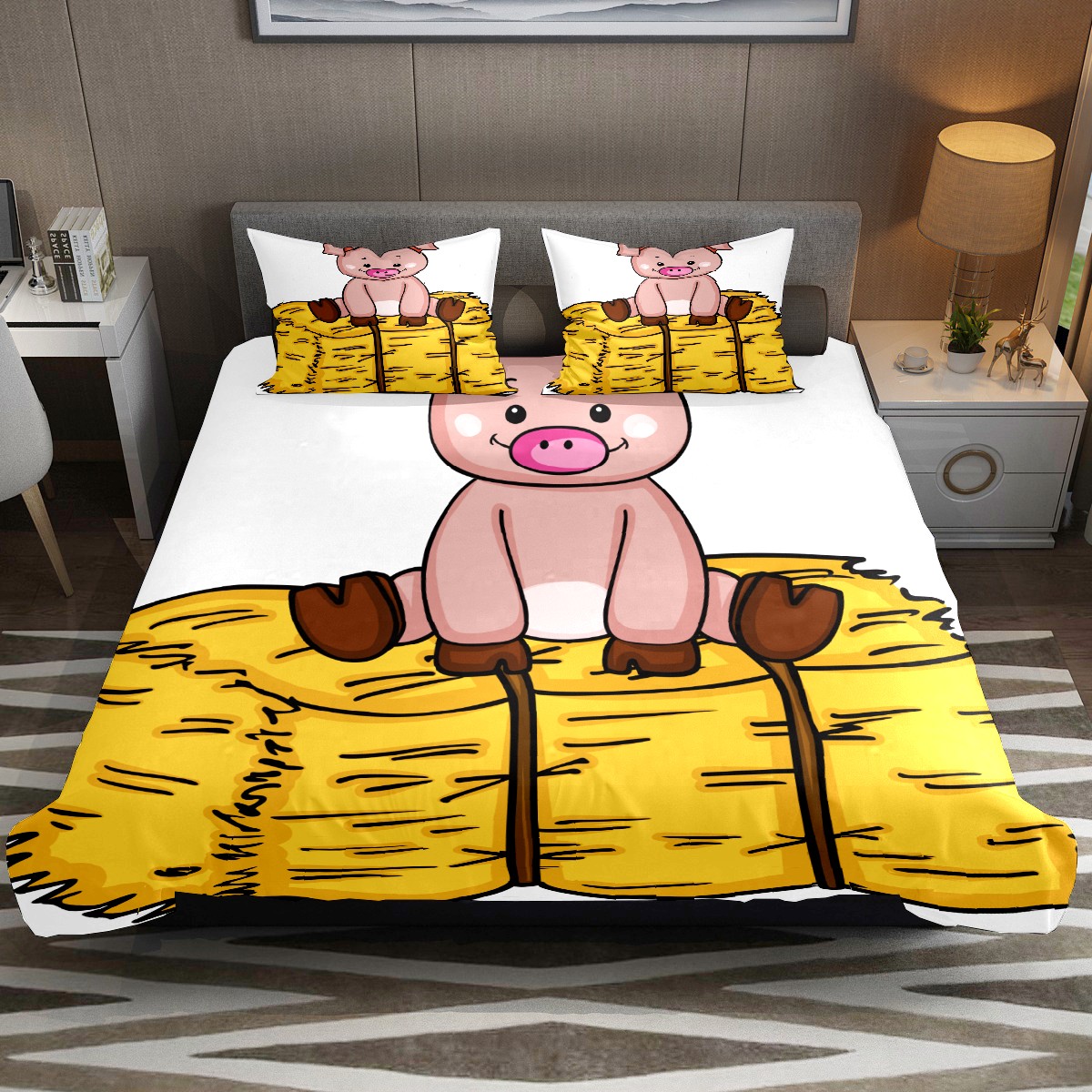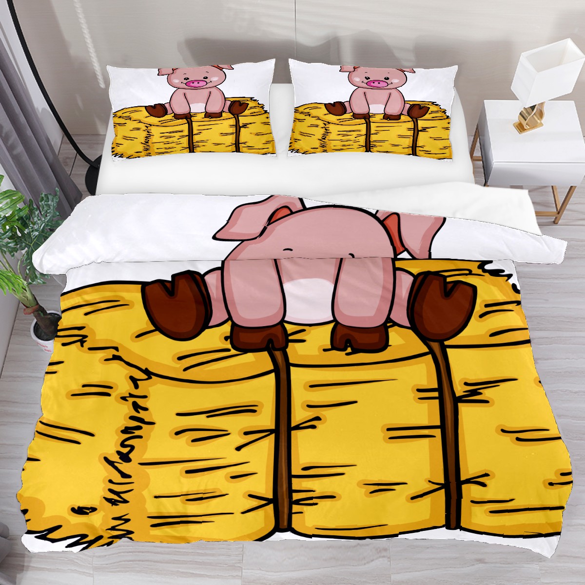 Duvet Cover Twin Cute Pig Animal 3pcs Bedding Duvet Cover Set Modern Quilt Cover Microfiber Comforter Cover with Button Closure with 2 Pillow Cases 1 Duvet Cover