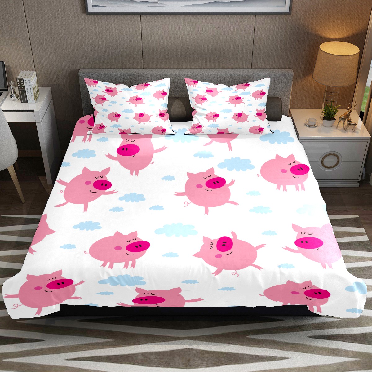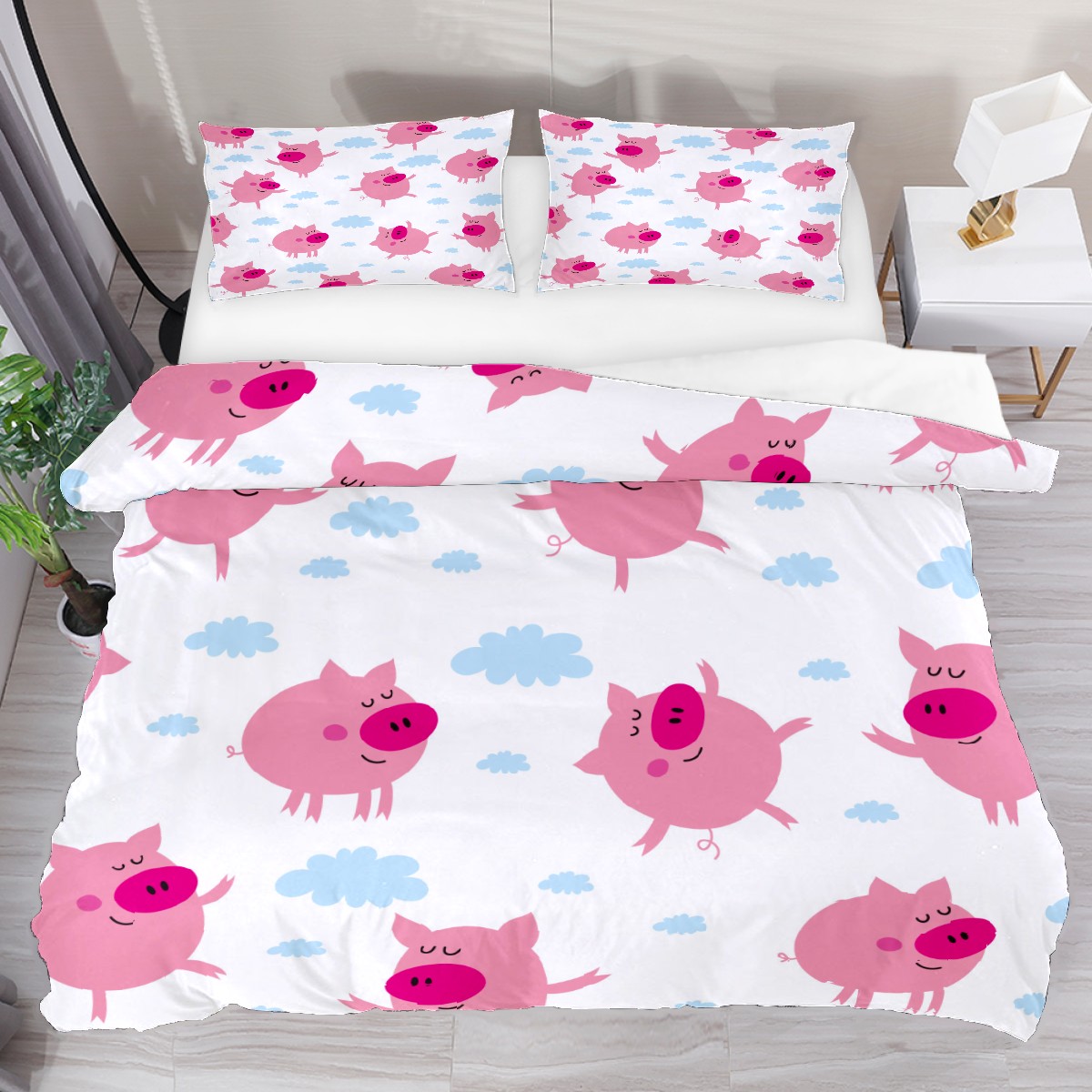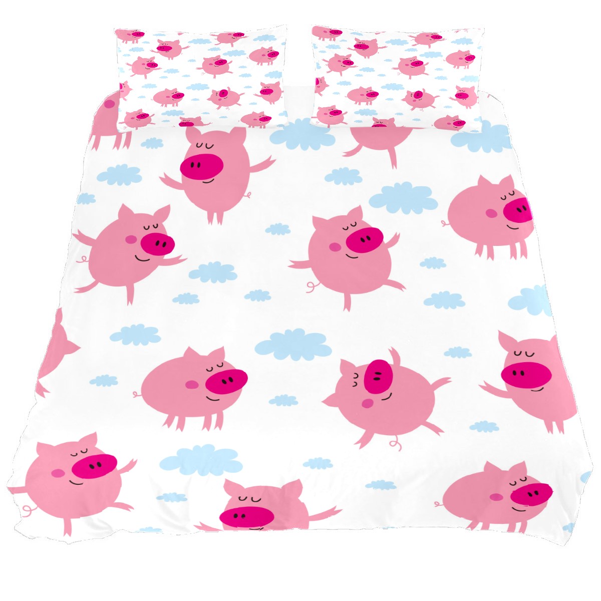 Duvet Cover Twin Cartoon Pink Cute Pig 3pcs Bedding Duvet Cover Set Modern Quilt Cover Microfiber Comforter Cover with Button Closure with 2 Pillow Cases 1 Duvet Cover