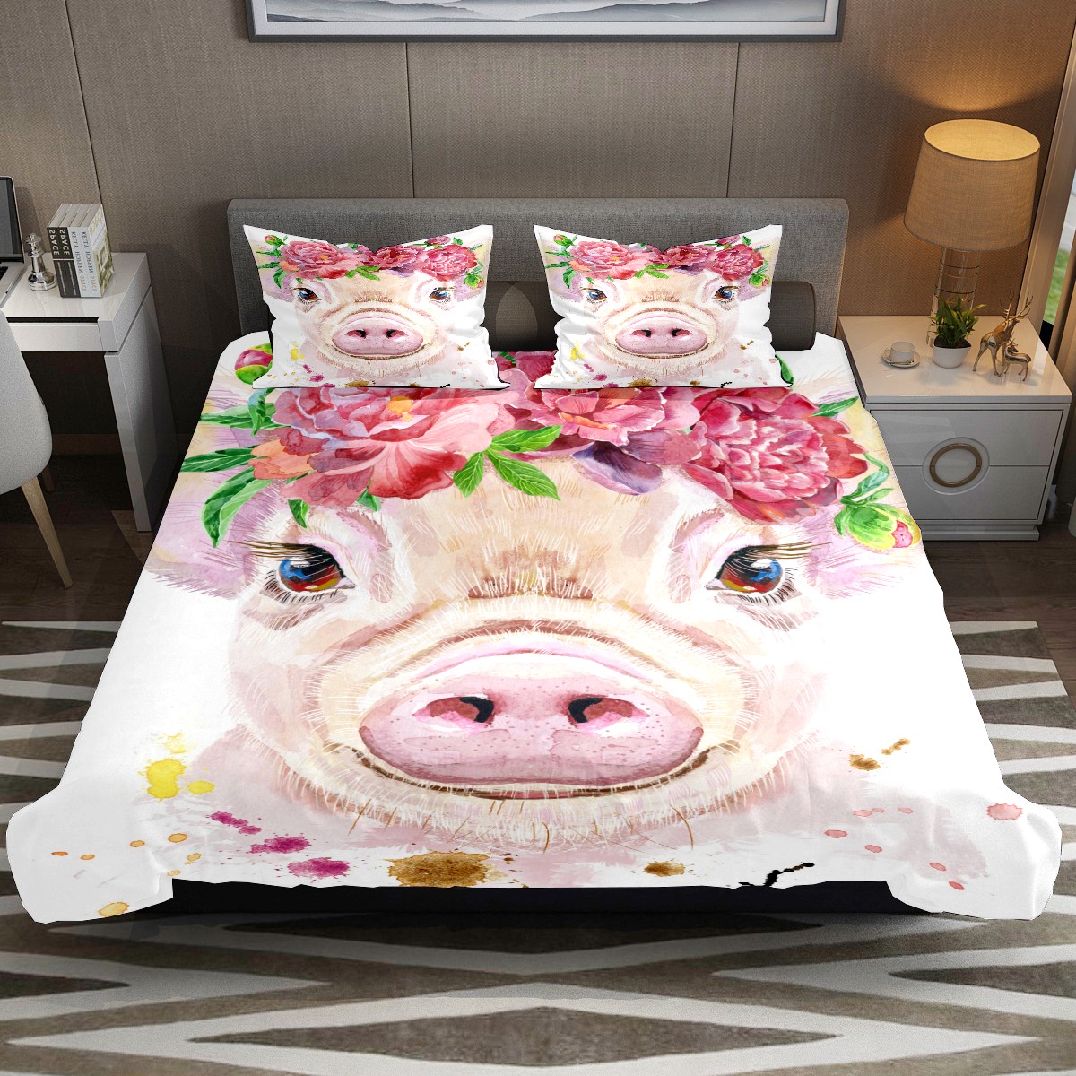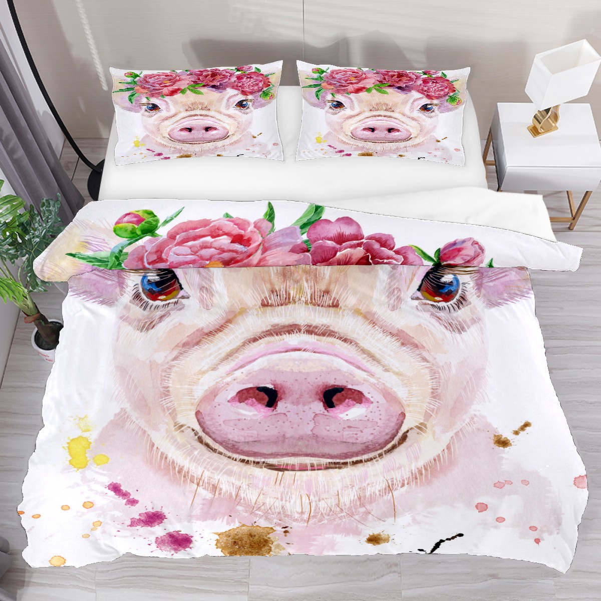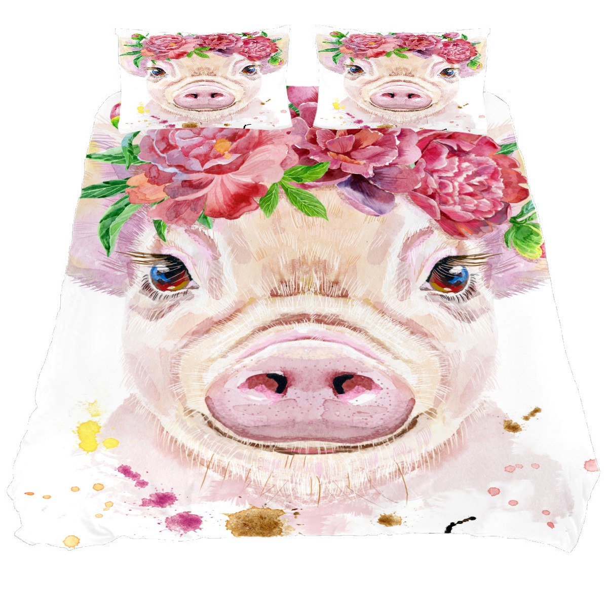 Duvet Cover Twin Cartoon Animal Cute Pig Pink 3pcs Bedding Duvet Cover Set Modern Quilt Cover Microfiber Comforter Cover with Button Closure with 2 Pillow Cases 1 Duvet Cover
