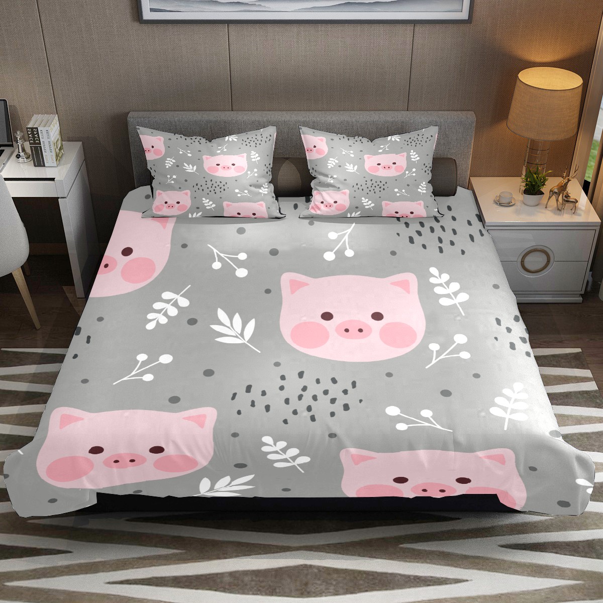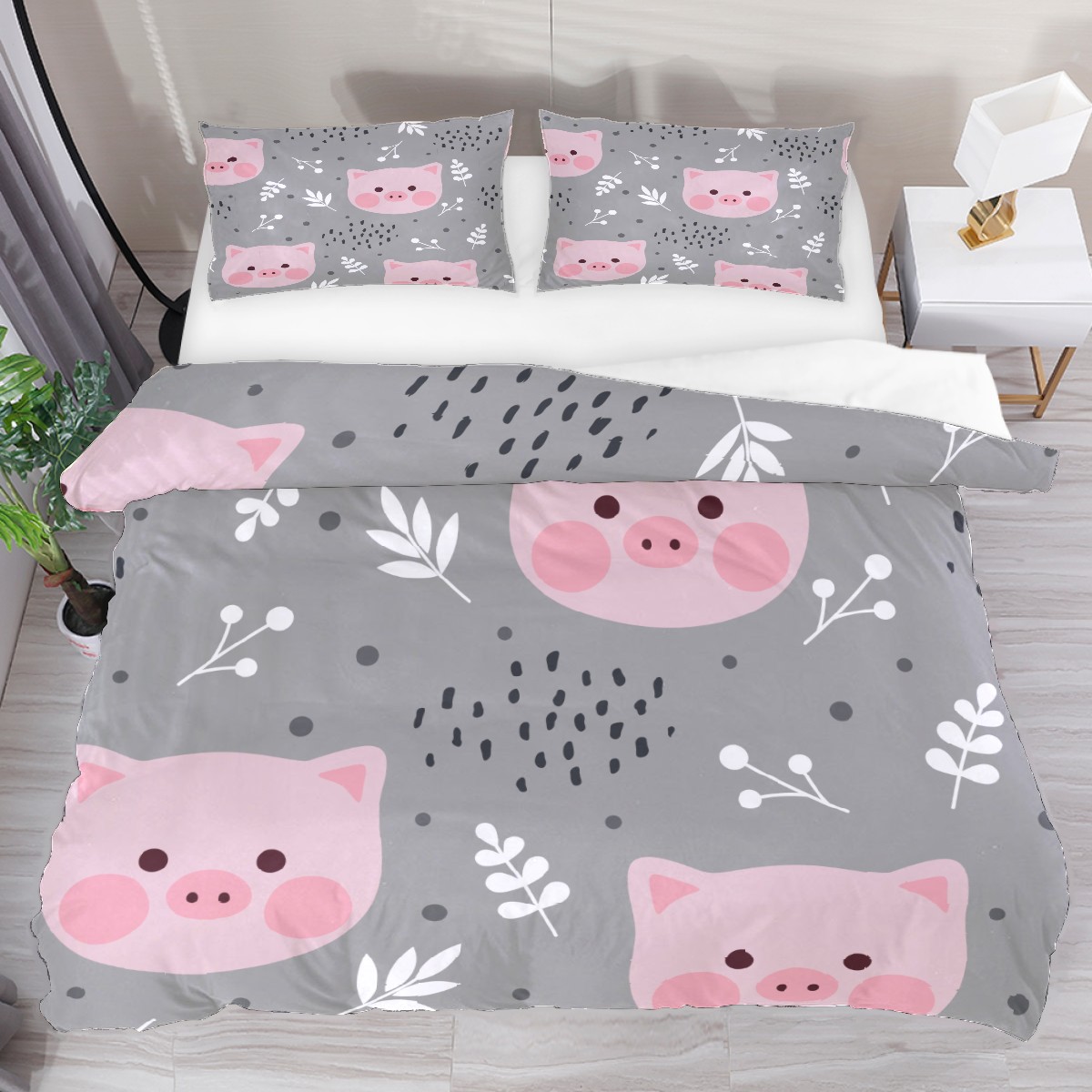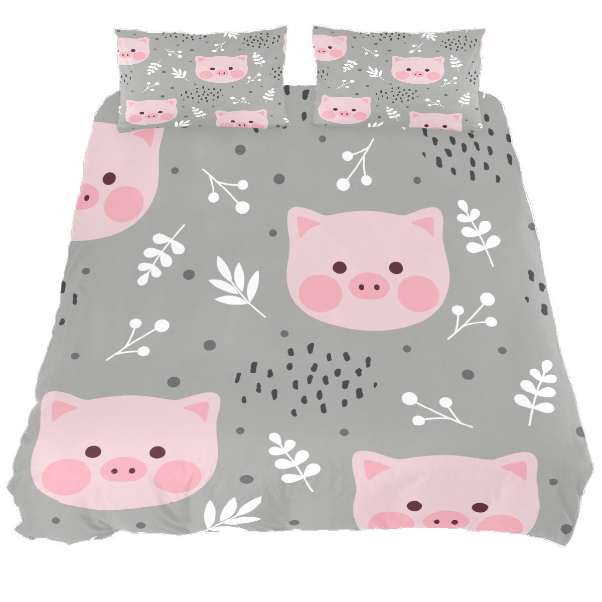 Duvet Cover Twin Cartoon Animal Pink Pig 3pcs Bedding Duvet Cover Set Modern Quilt Cover Microfiber Comforter Cover with Button Closure with 2 Pillow Cases 1 Duvet Cover