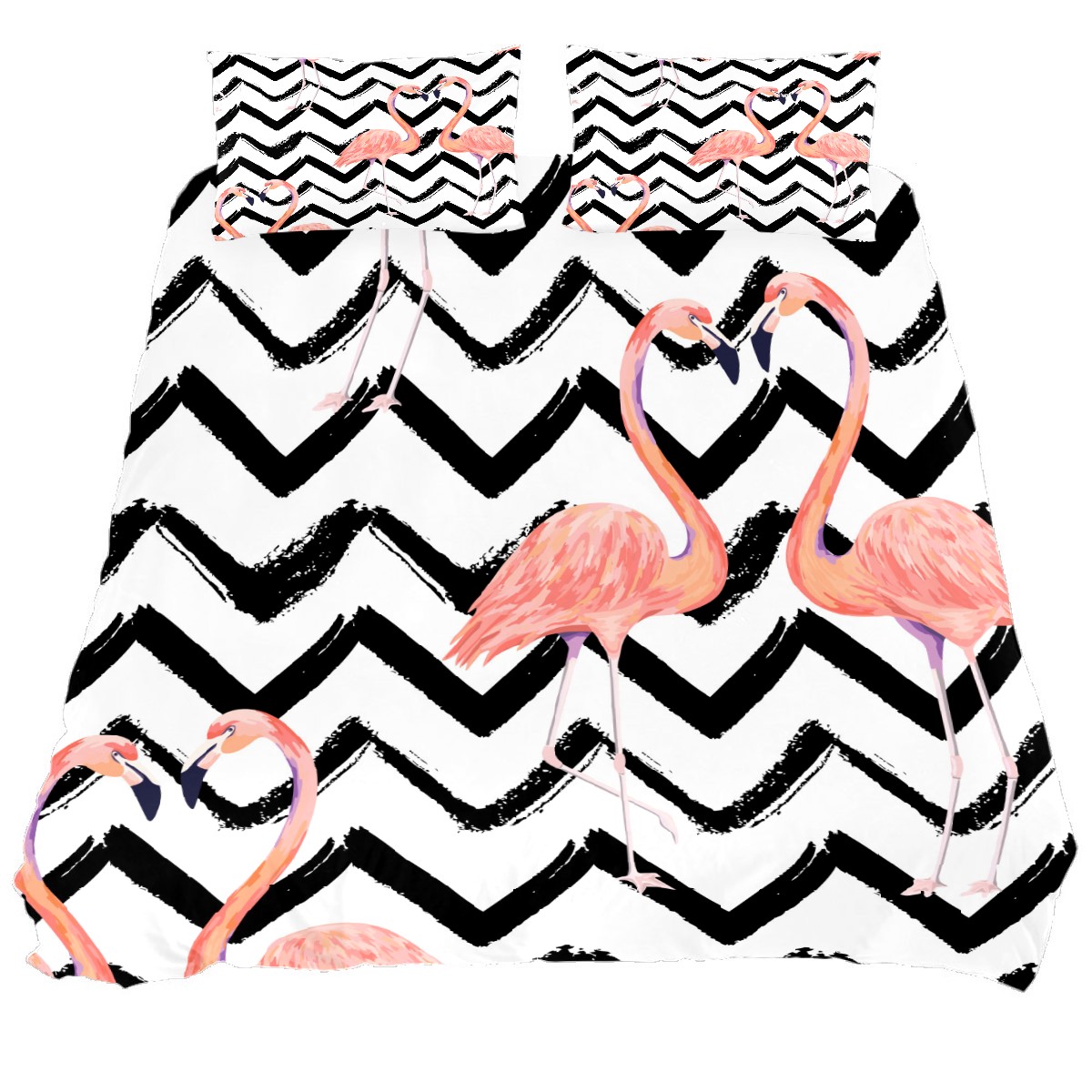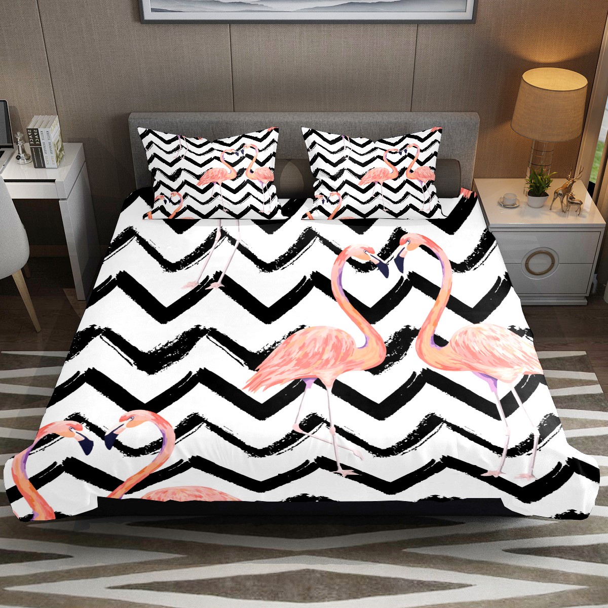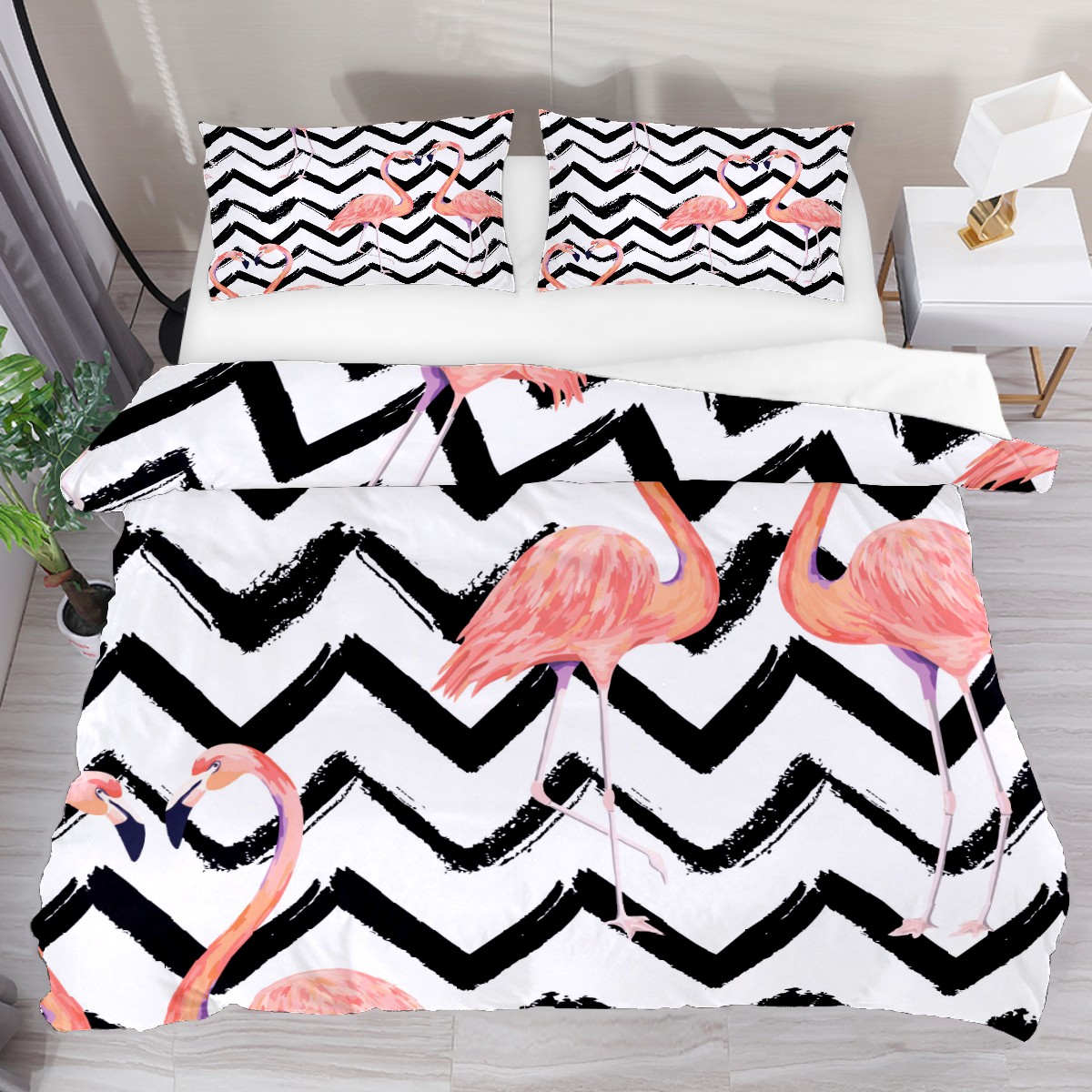 Duvet Cover Twin Black Chevrons With Flamingos Bird 3pcs Bedding Duvet Cover Set Modern Quilt Cover Microfiber Comforter Cover with Button Closure with 2 Pillow Cases 1 Duvet Cover
