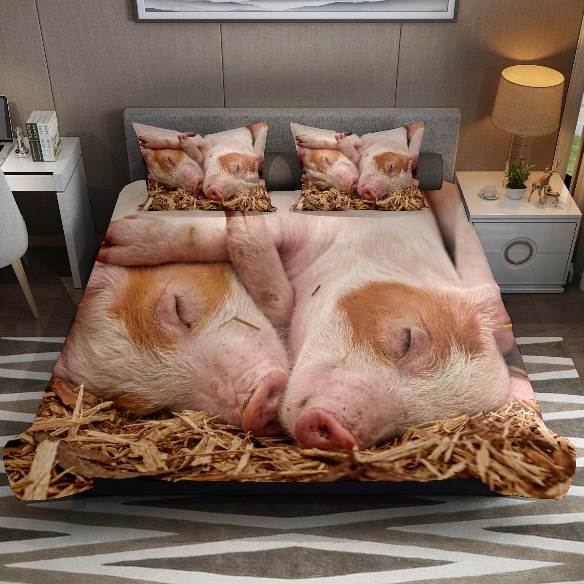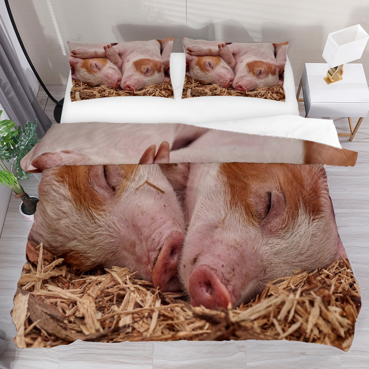 Duvet Cover Twin Animal Piglet Sleep Pig Funny 3pcs Bedding Duvet Cover Set Modern Quilt Cover Microfiber Comforter Cover with Button Closure with 2 Pillow Cases 1 Duvet Cover