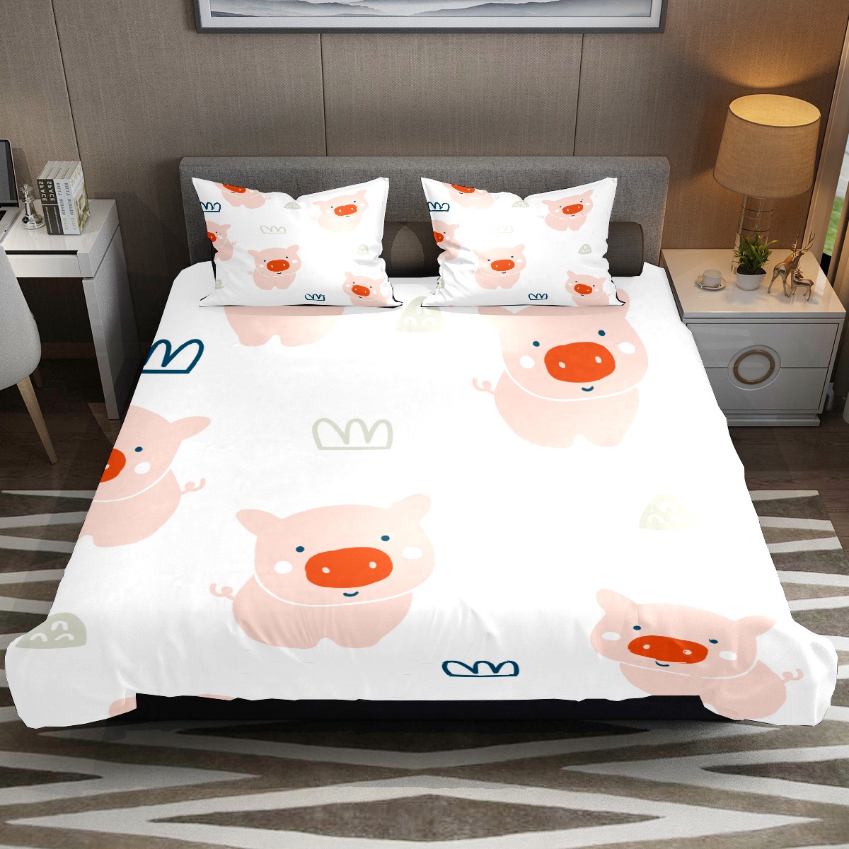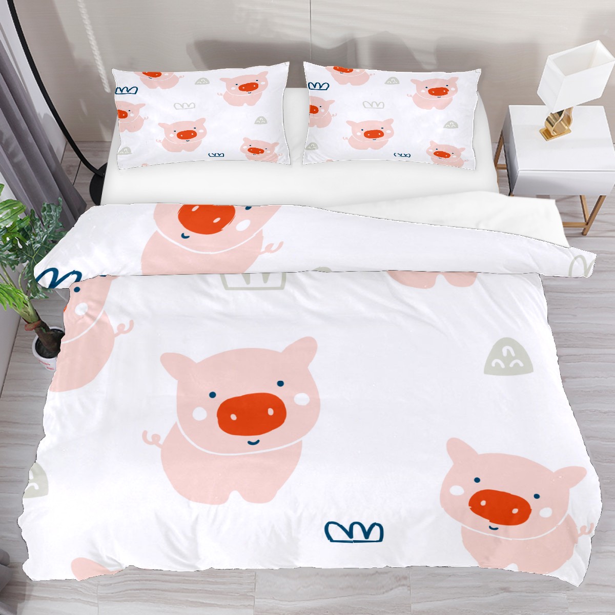 Duvet Cover Twin Animal Cute Pink Pig 3pcs Bedding Duvet Cover Set Modern Quilt Cover Microfiber Comforter Cover with Button Closure with 2 Pillow Cases 1 Duvet Cover