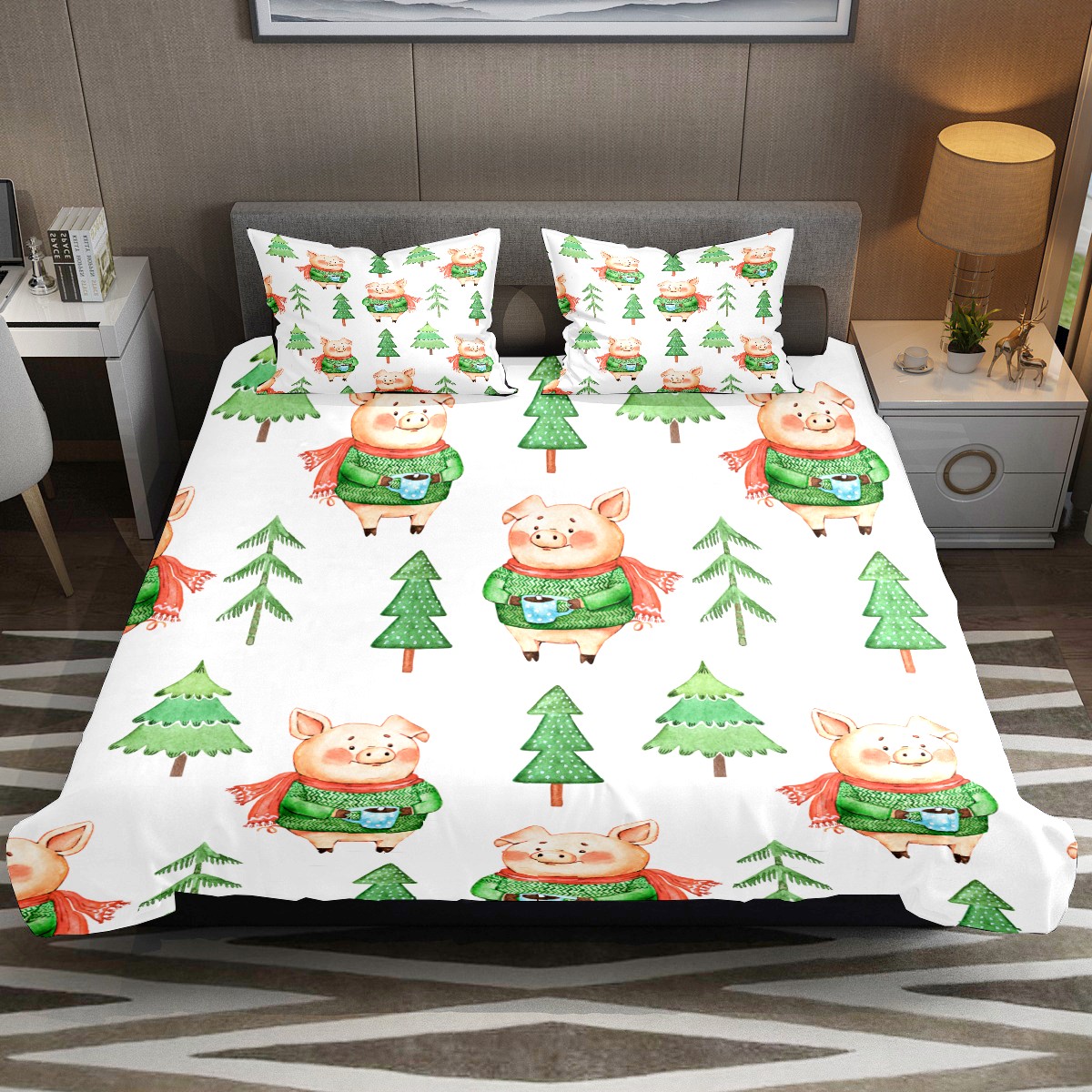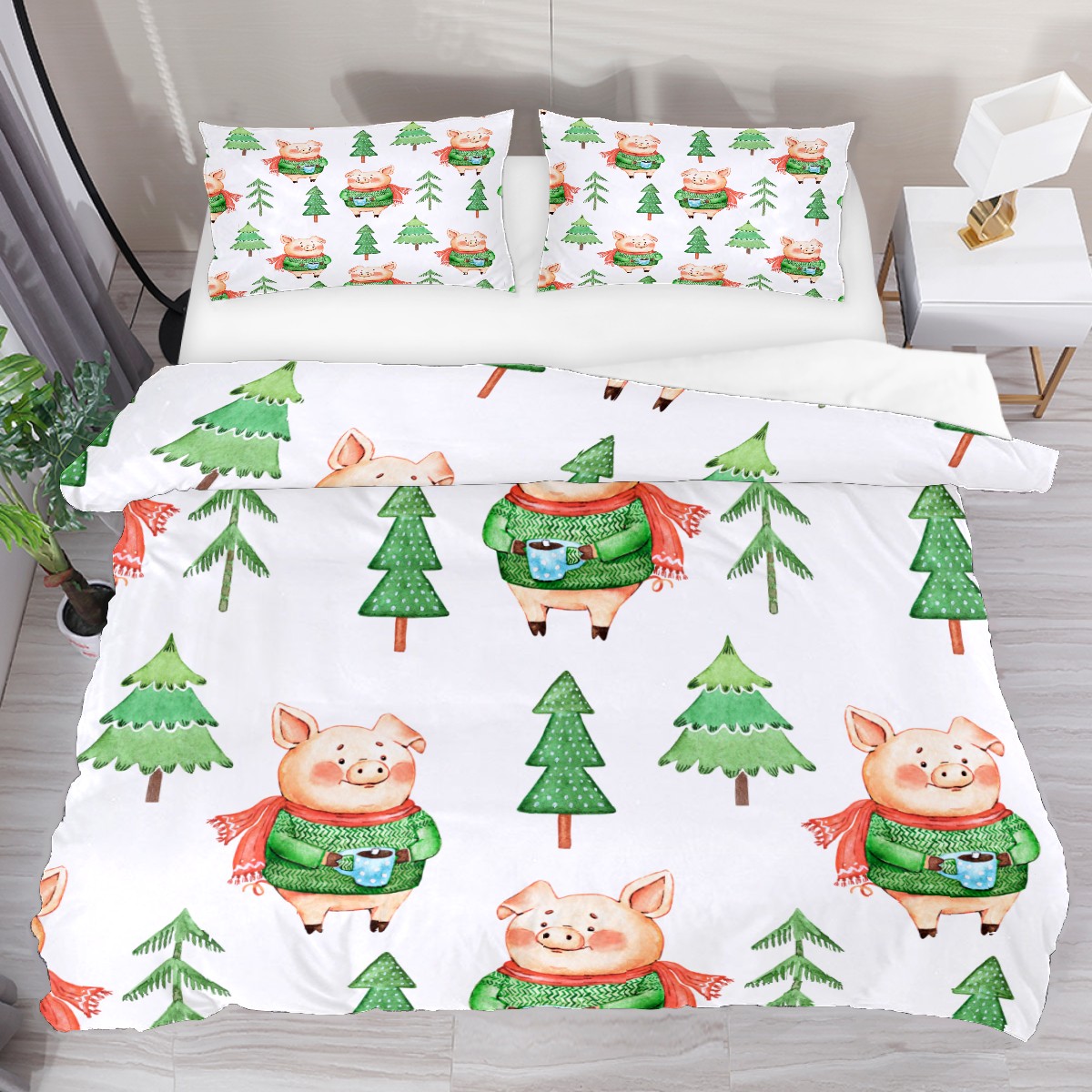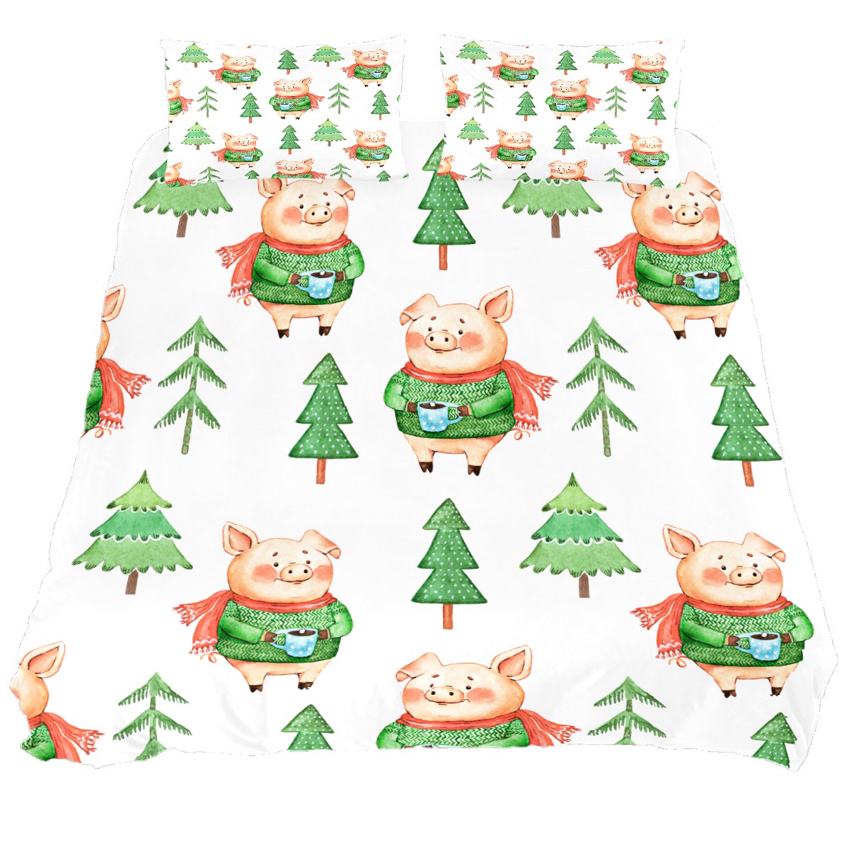 Duvet Cover Twin Animal Cute Pig With Tree 3pcs Bedding Duvet Cover Set Modern Quilt Cover Microfiber Comforter Cover with Button Closure with 2 Pillow Cases 1 Duvet Cover