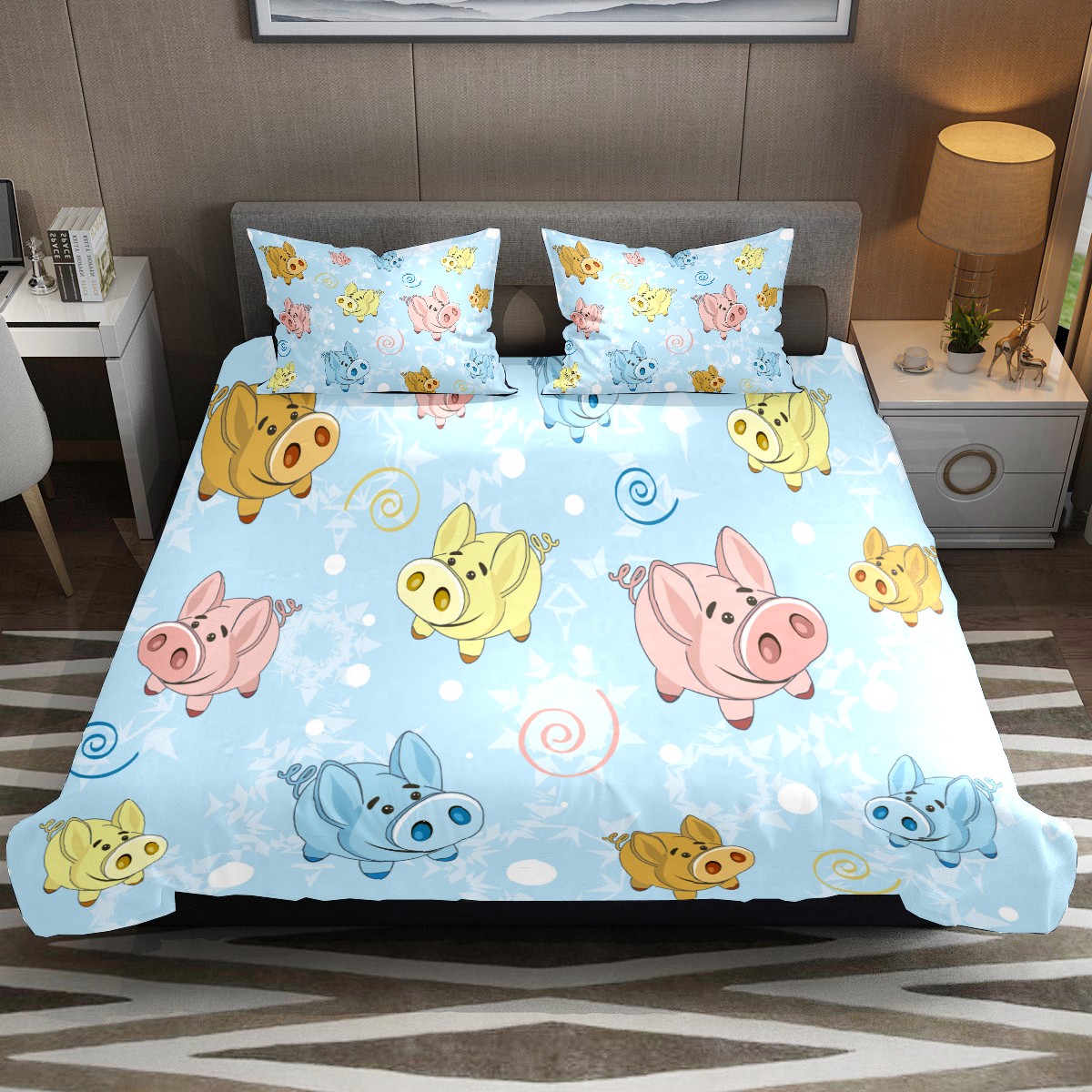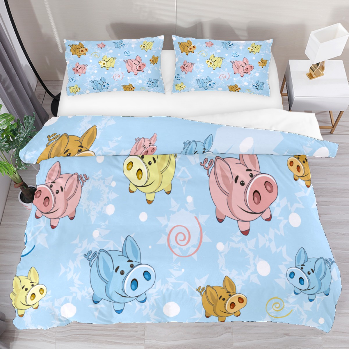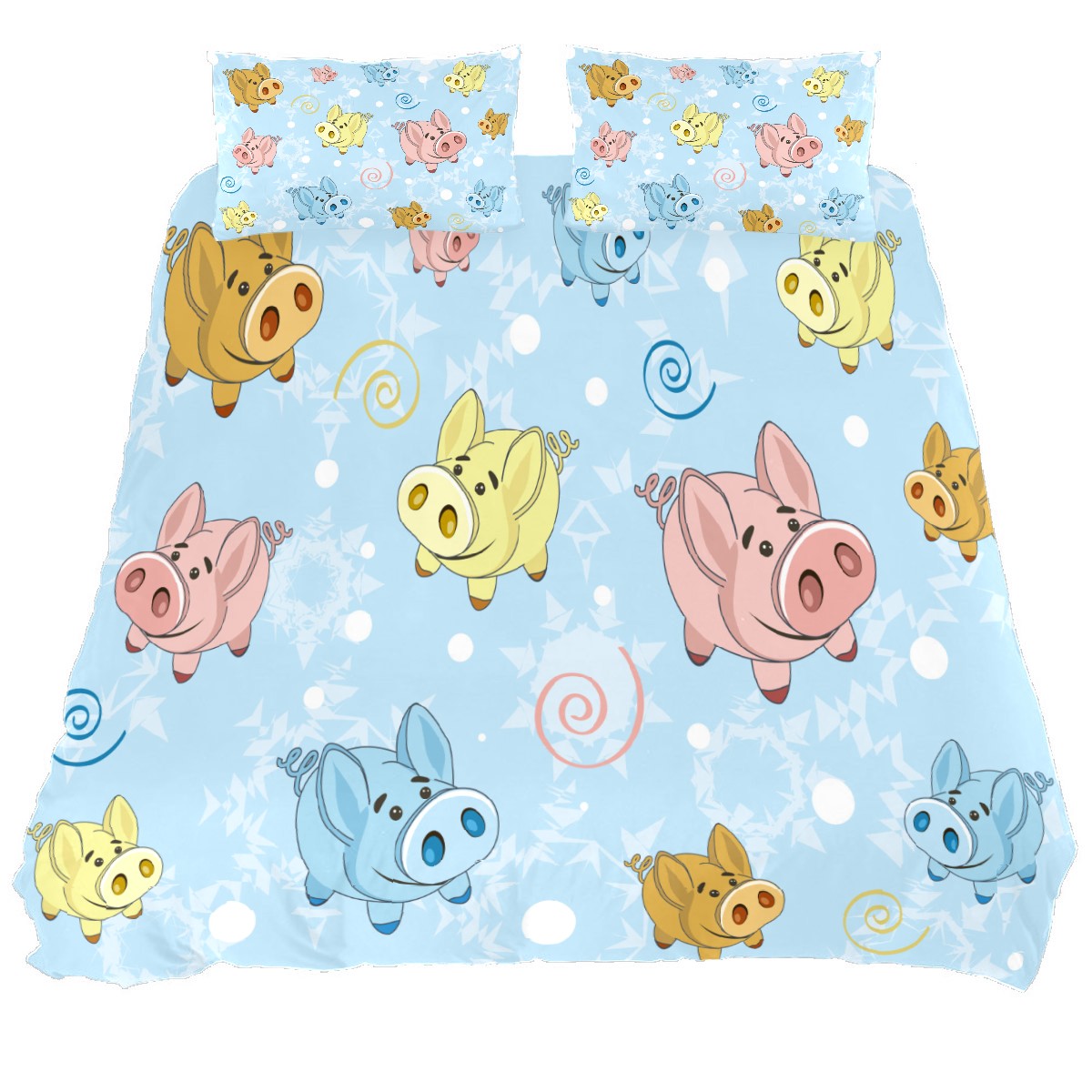 Duvet Cover Twin Animal Cute Pigs 3pcs Bedding Duvet Cover Set Modern Quilt Cover Microfiber Comforter Cover with Button Closure with 2 Pillow Cases 1 Duvet Cover