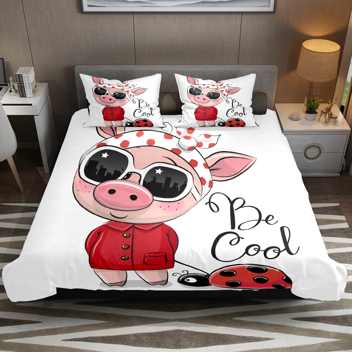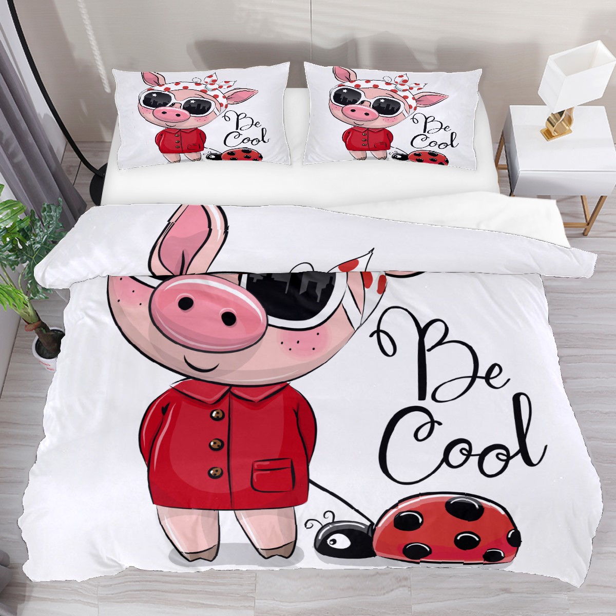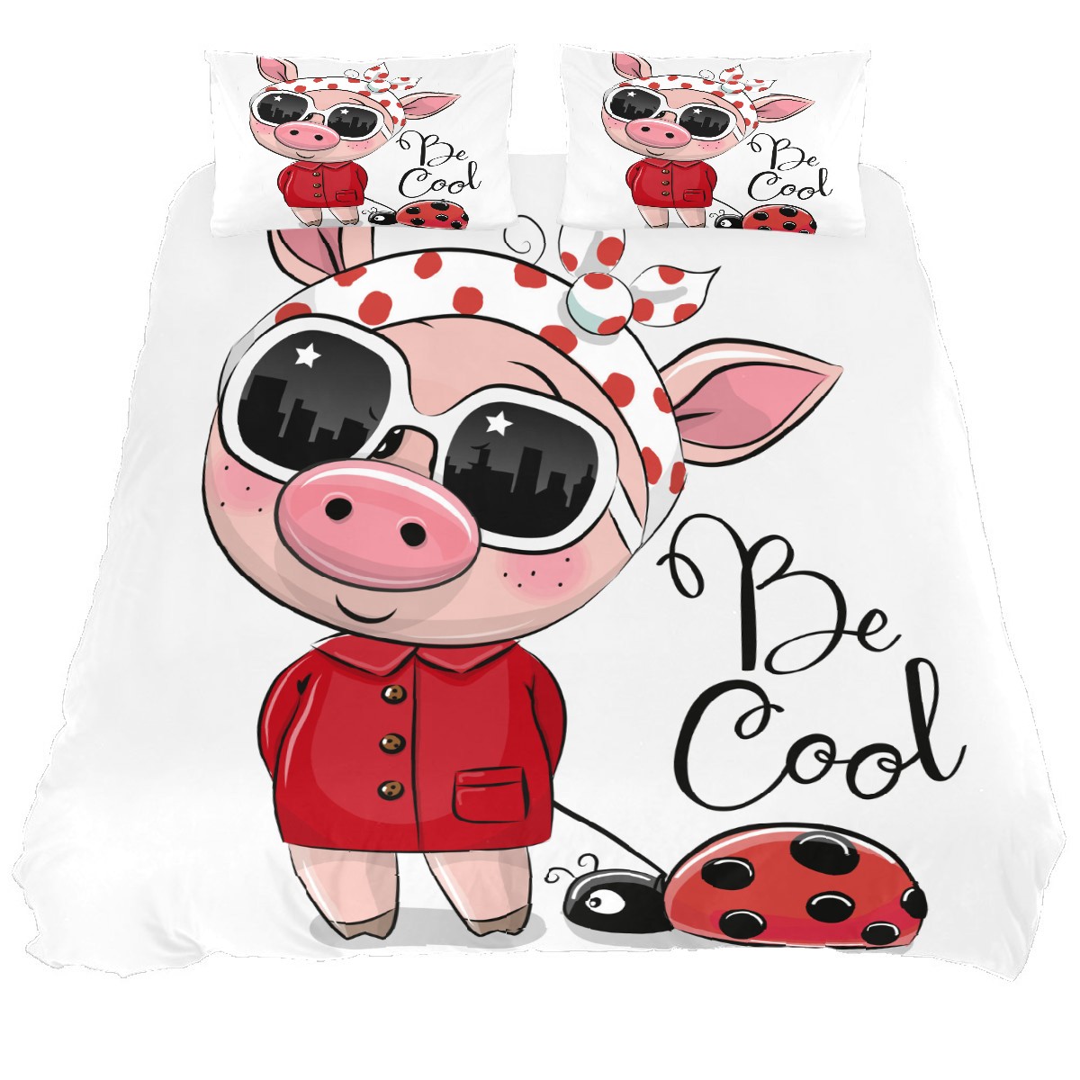 Duvet Cover Twin Animal Cute Pig 3pcs Bedding Duvet Cover Set Modern Quilt Cover Microfiber Comforter Cover with Button Closure with 2 Pillow Cases 1 Duvet Cover